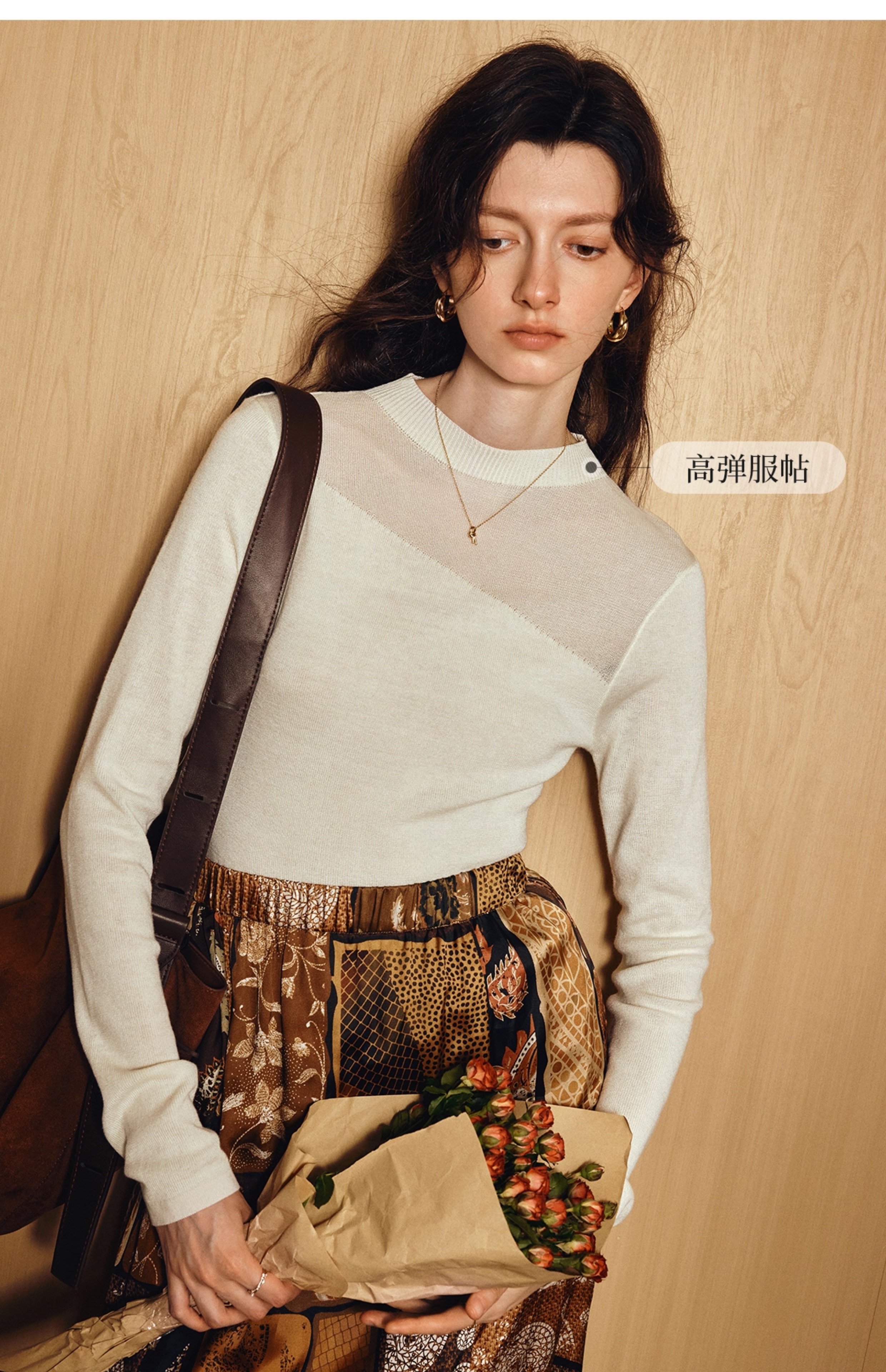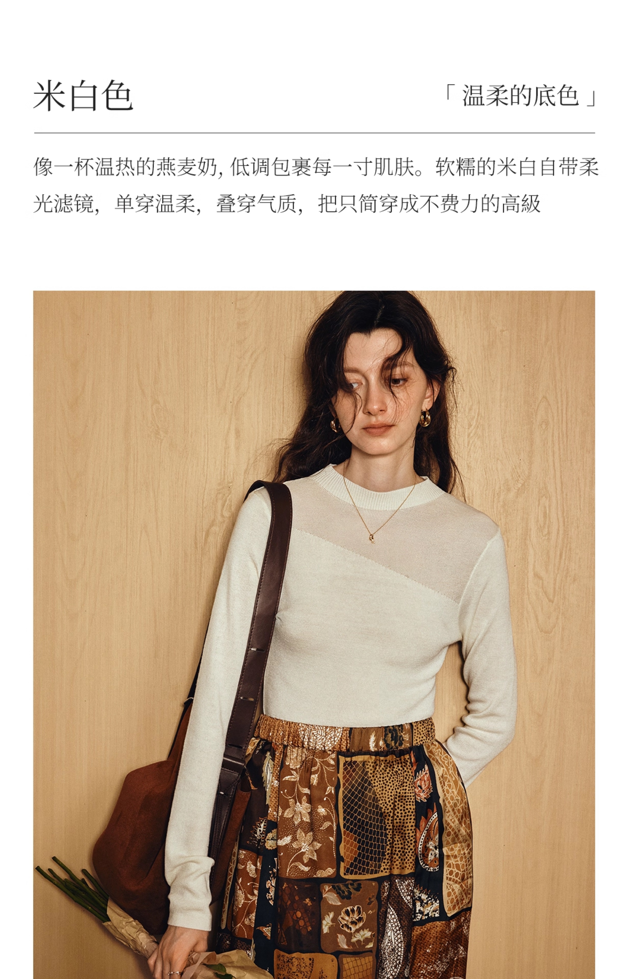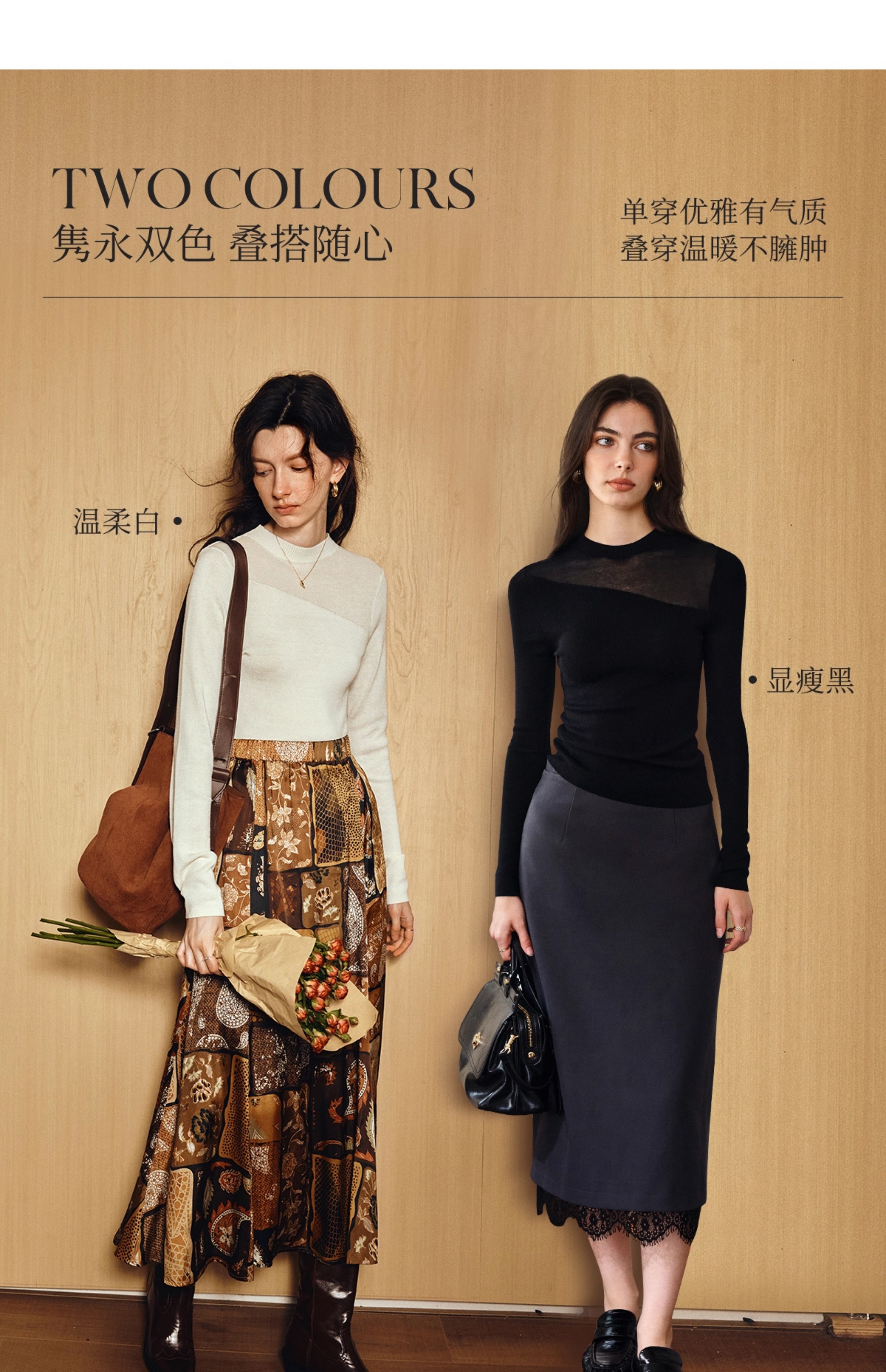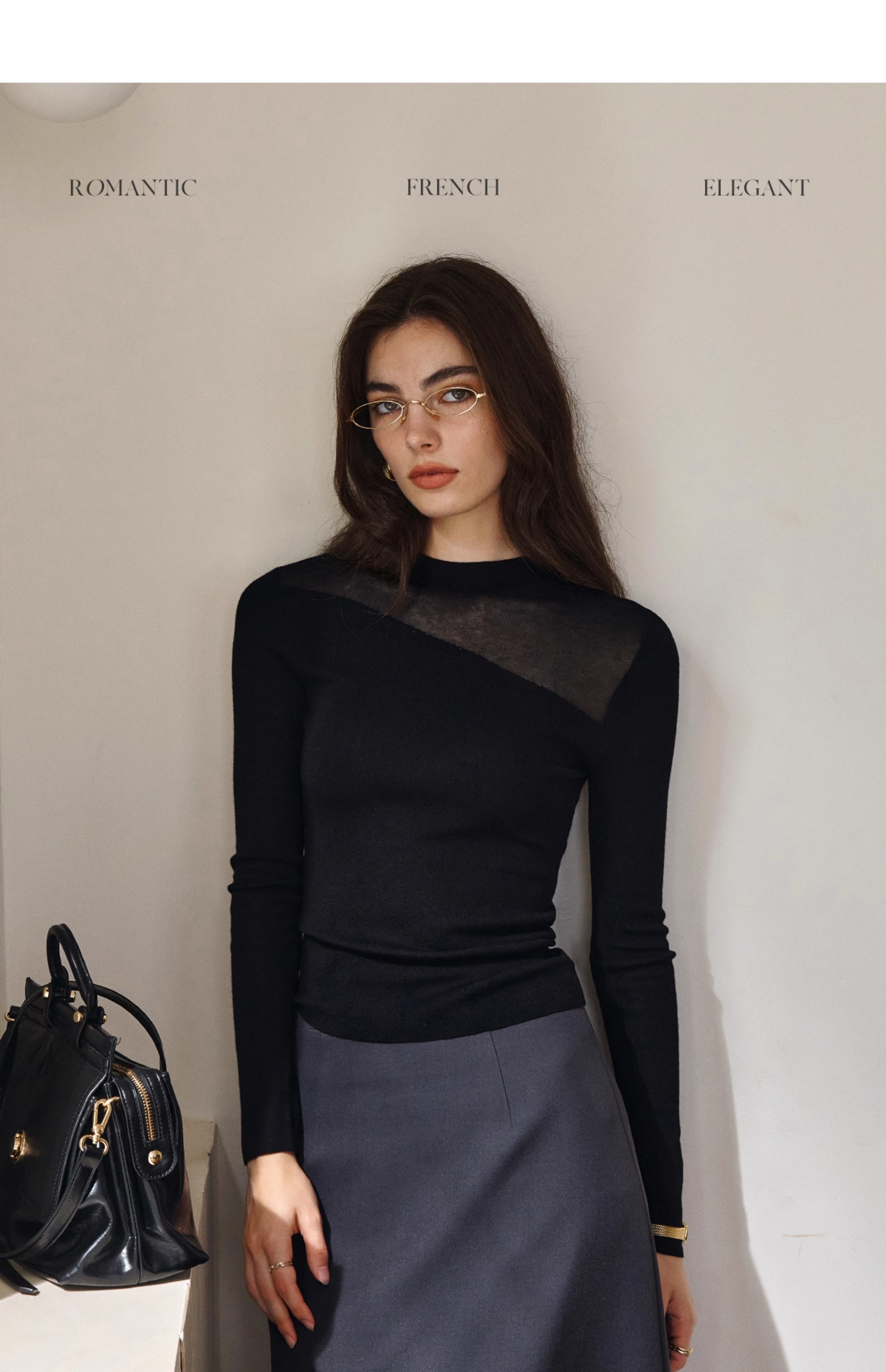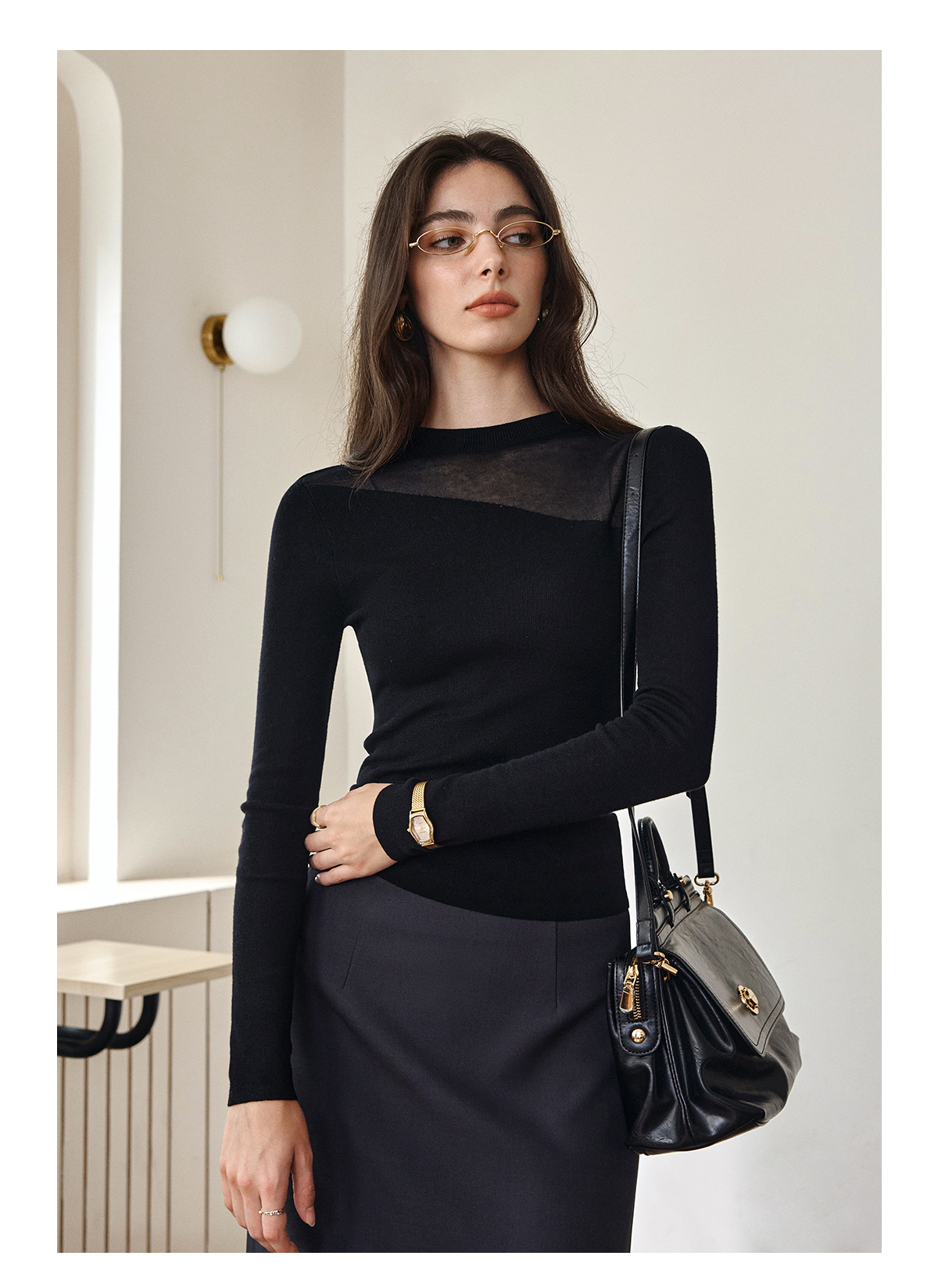 OLrain欧芮儿秋季2025新款简约通勤半透视设计感针织衫修身上衣女
