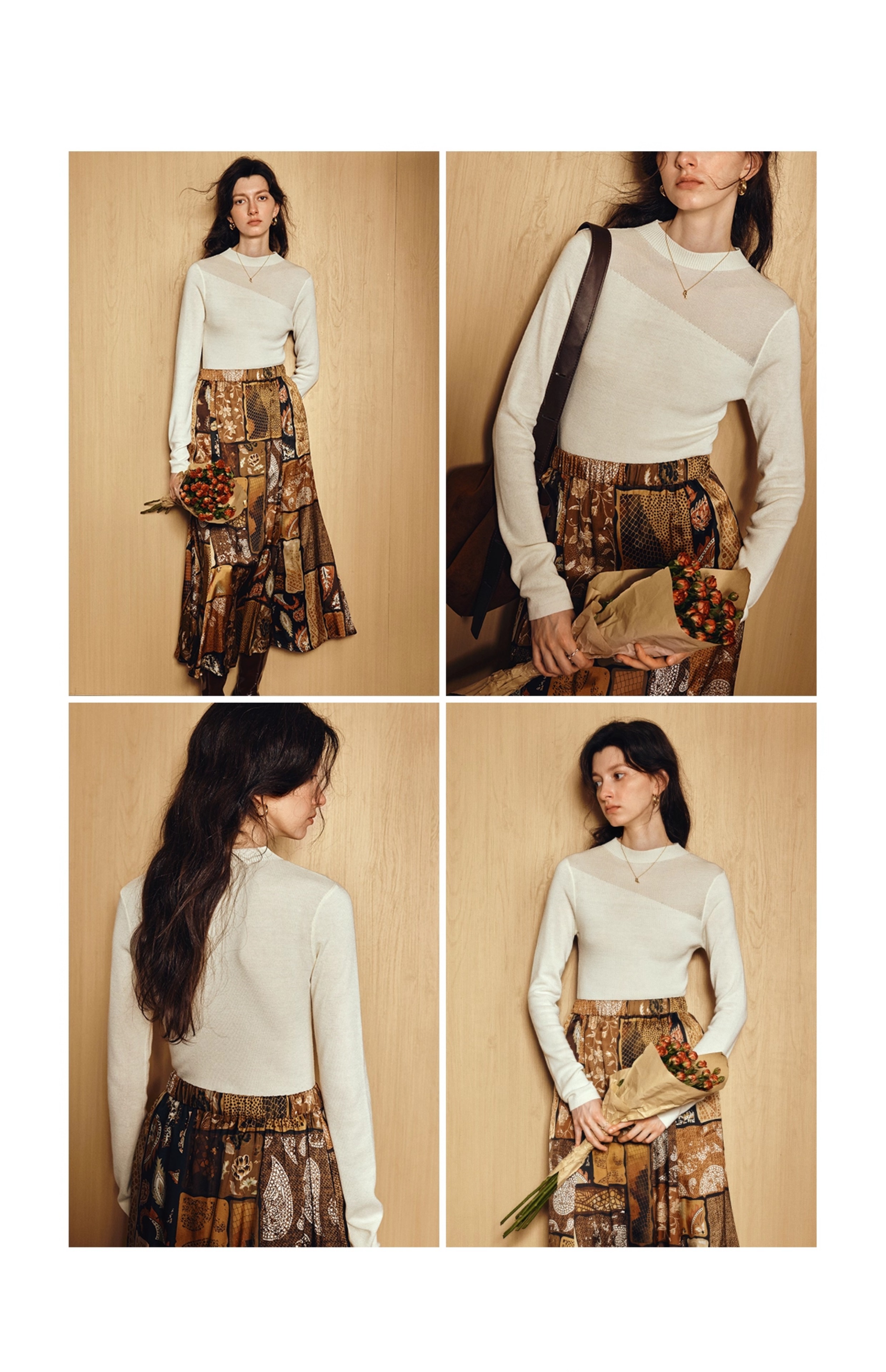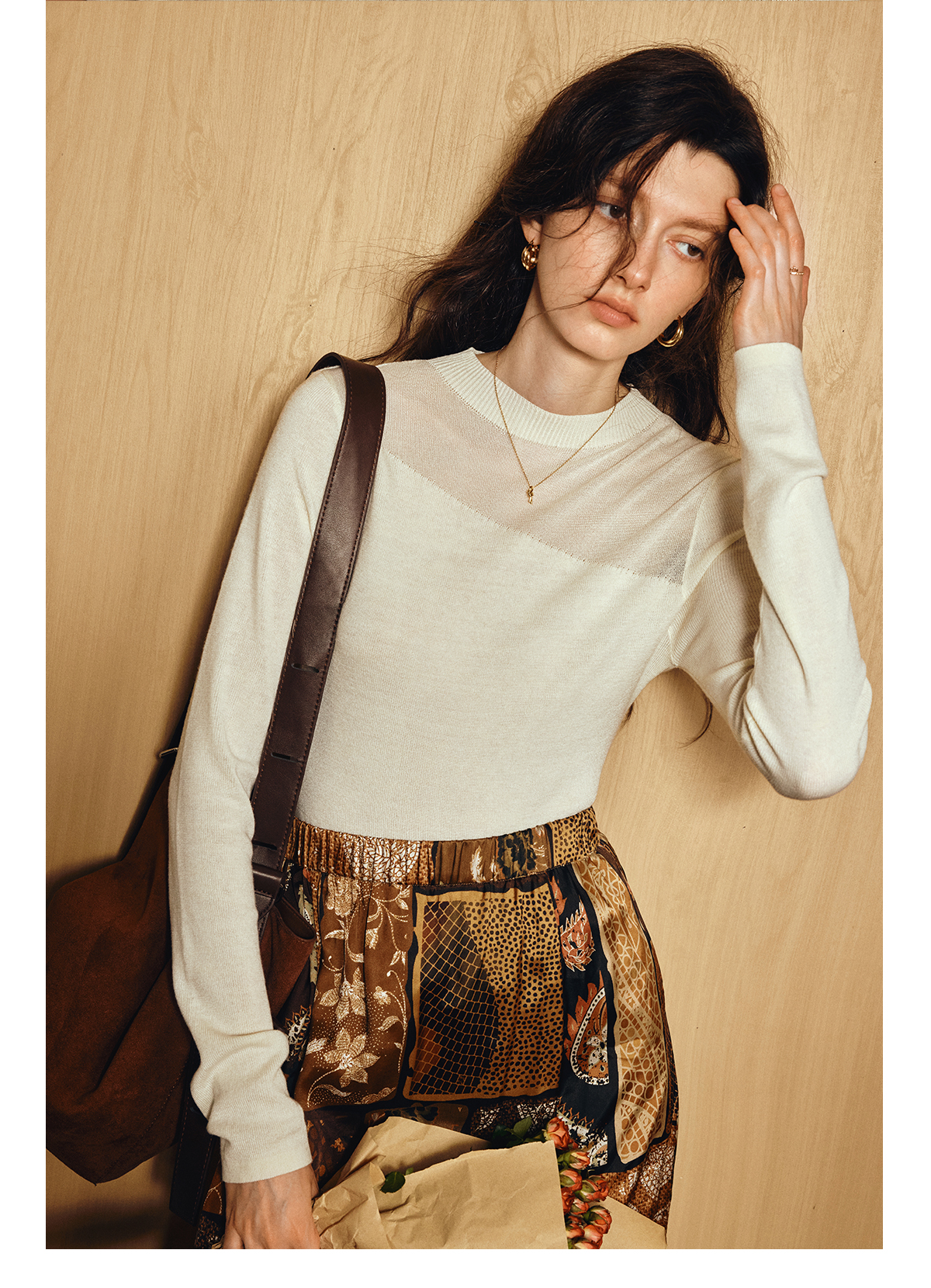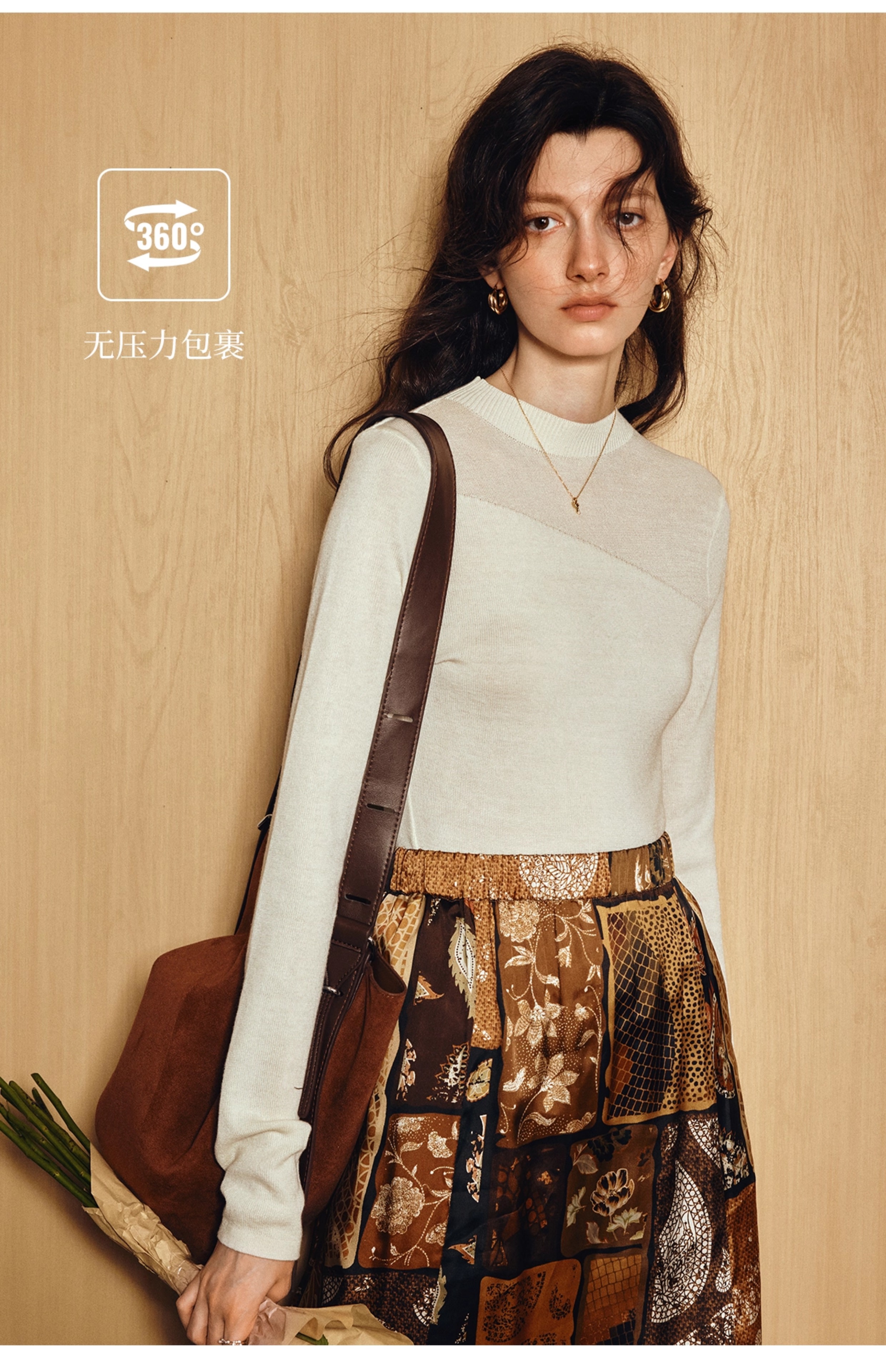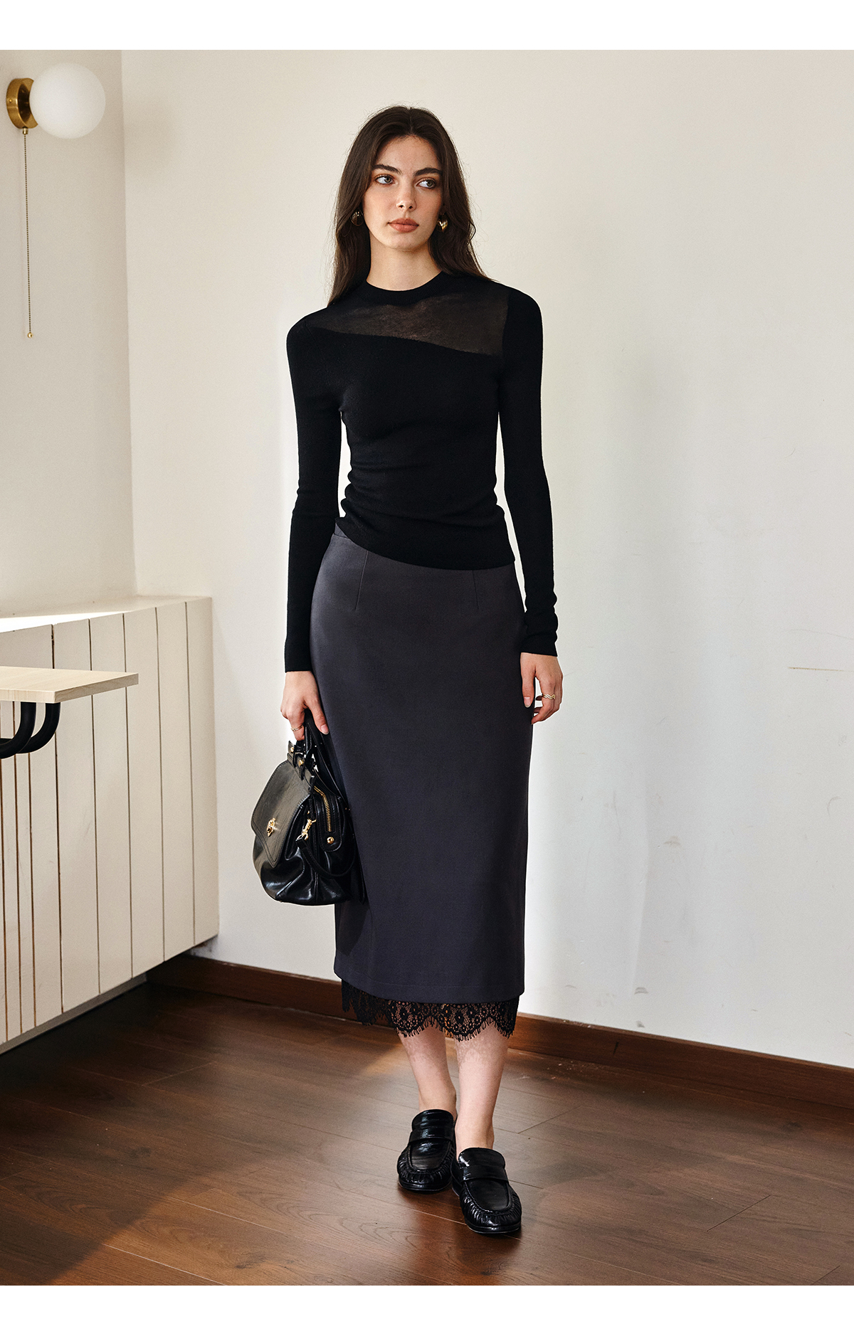 OLrain欧芮儿秋季2025新款简约通勤半透视设计感针织衫修身上衣女