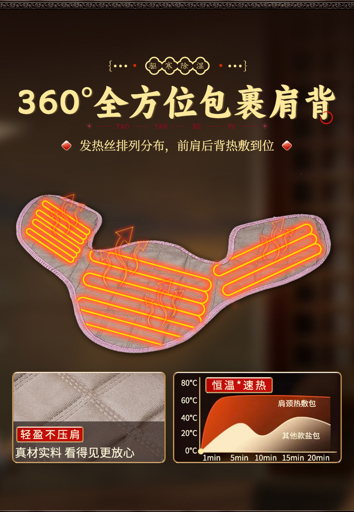 ✅360° 包裹全方位热敷🔥恒温速热,覆盖整个肩背
