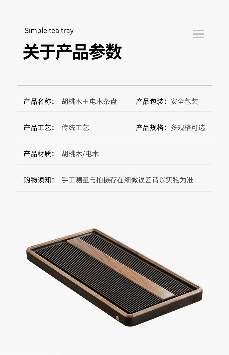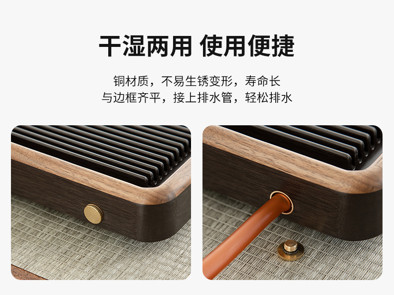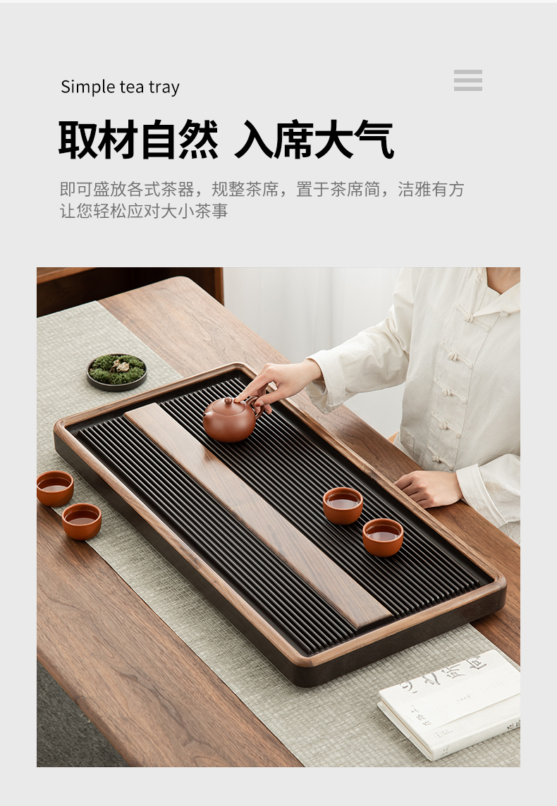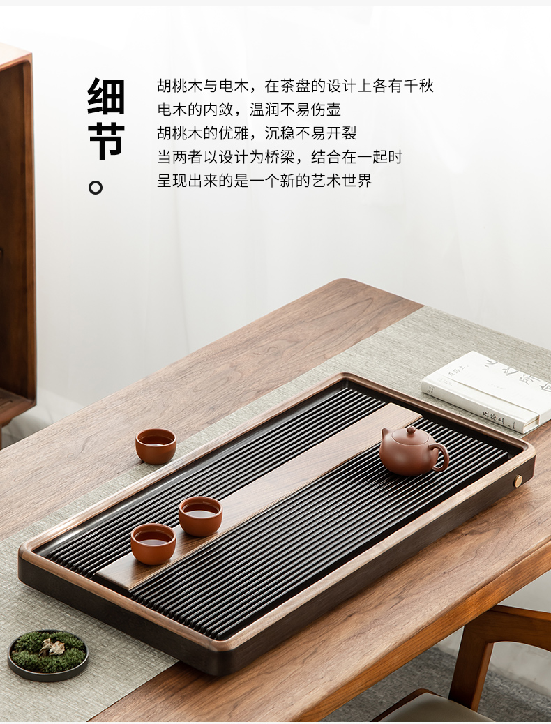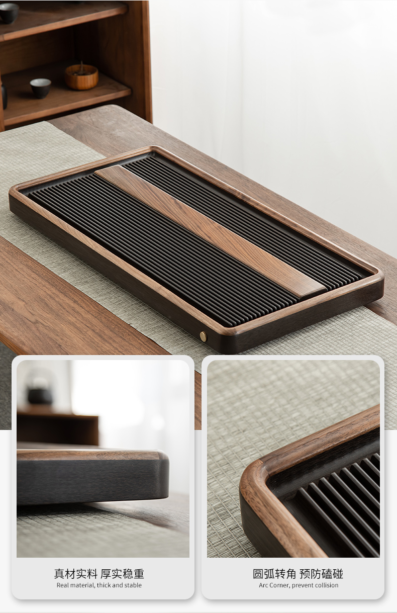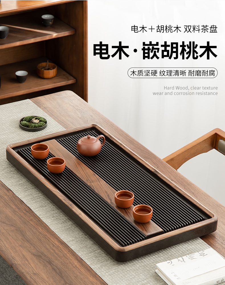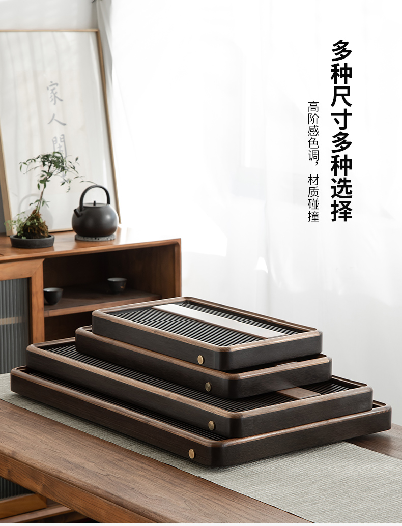 初心茶盘电胶木家用茶盘 胡桃木电木整块电胶木高档茶盘简约办公干泡茶盘