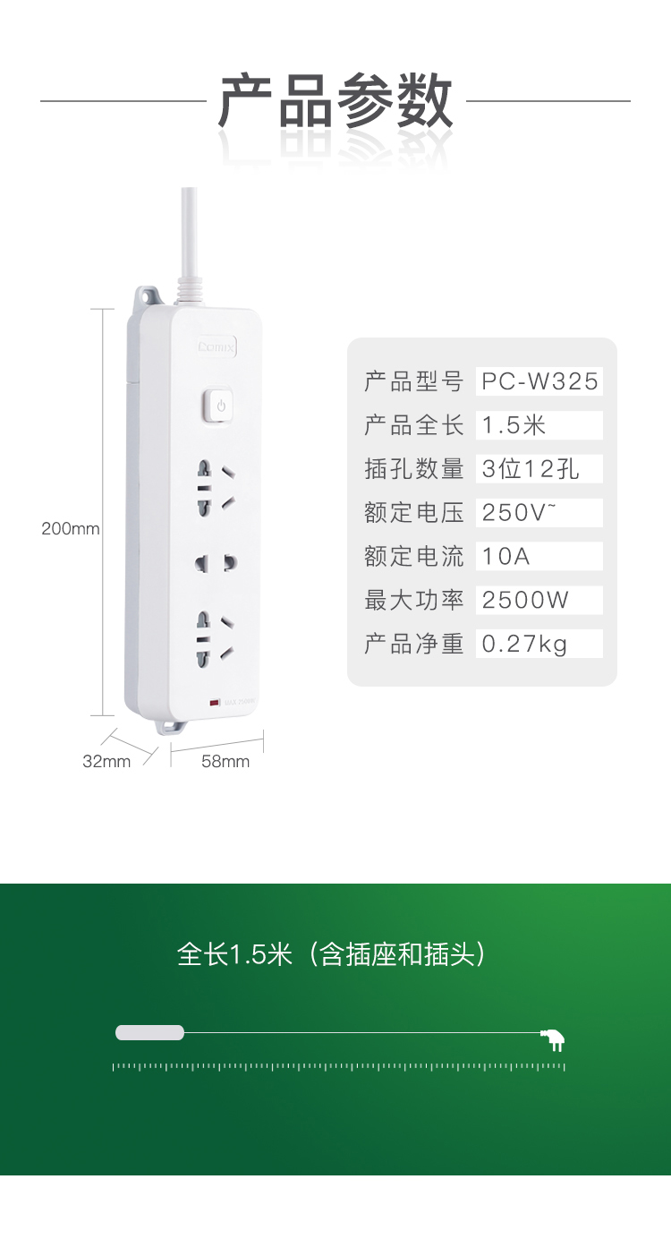 齐心延长线插座PC-W325