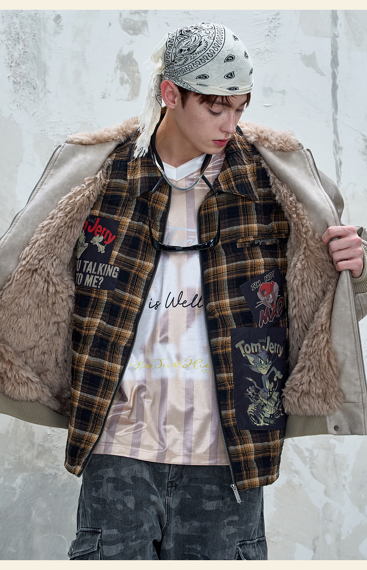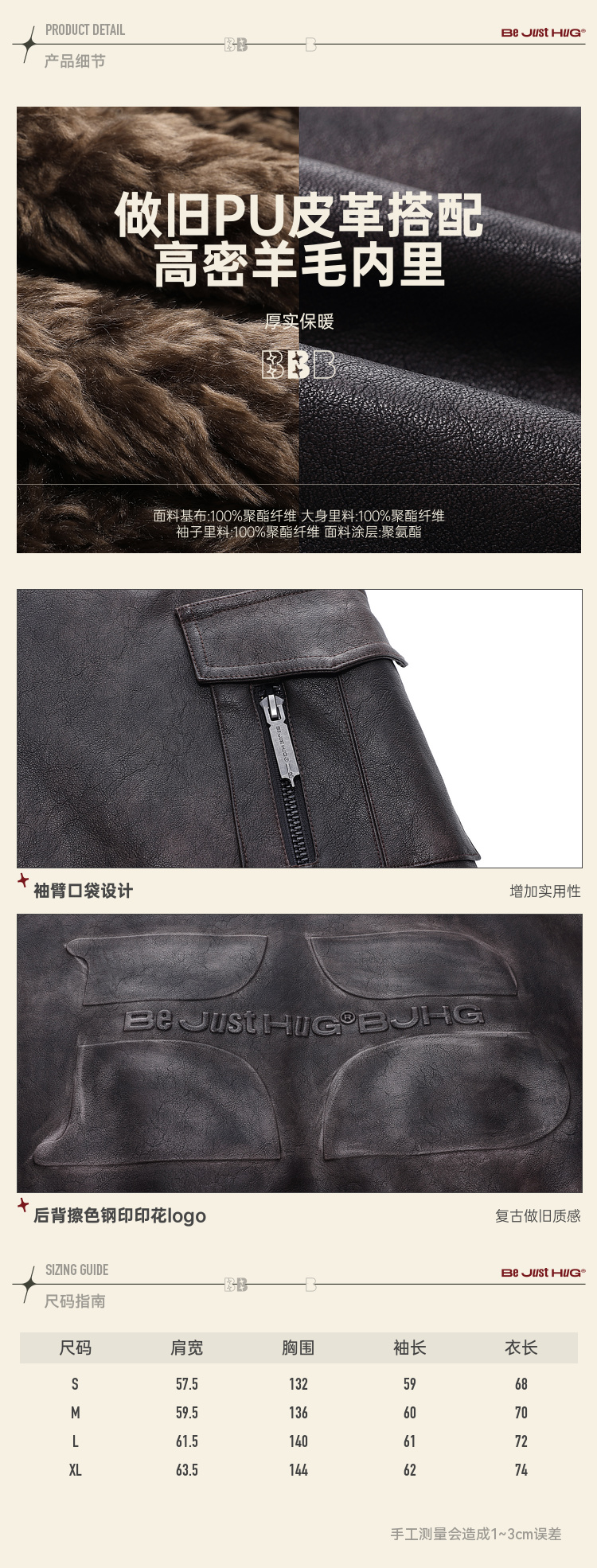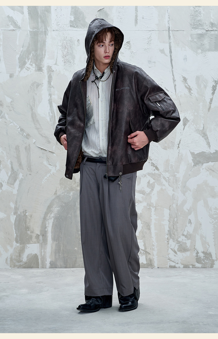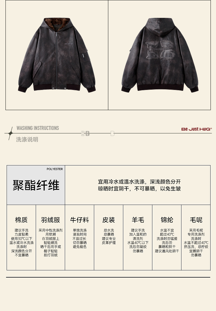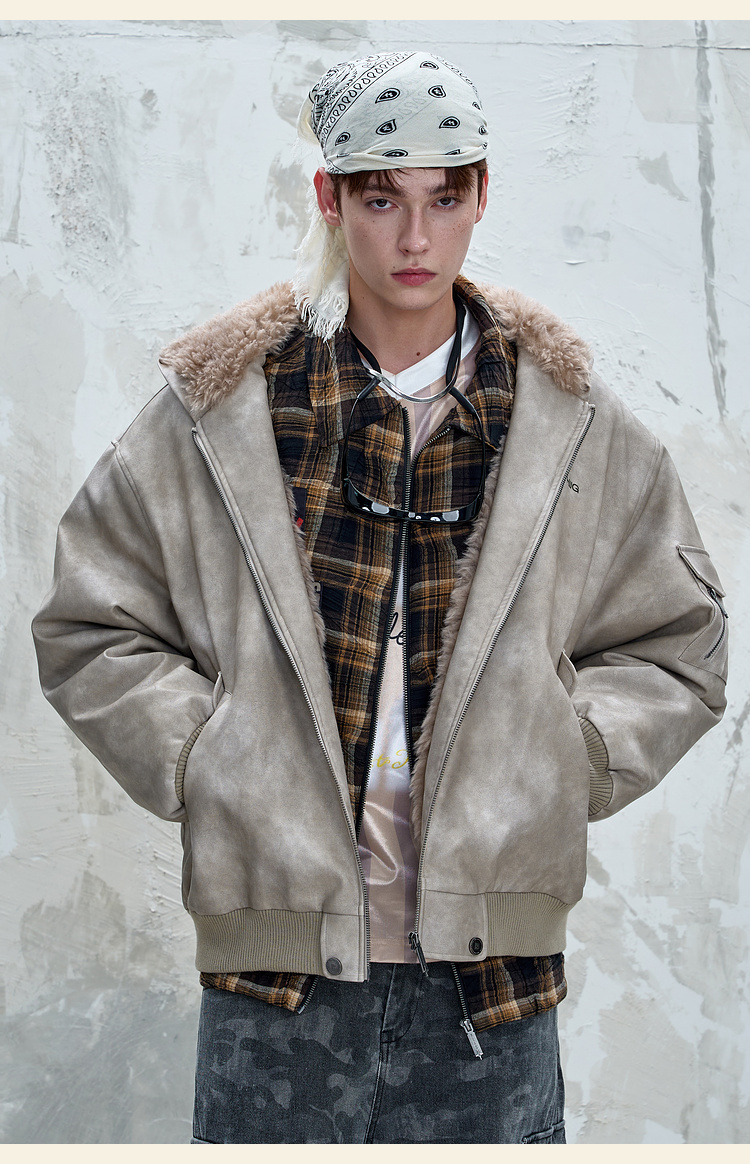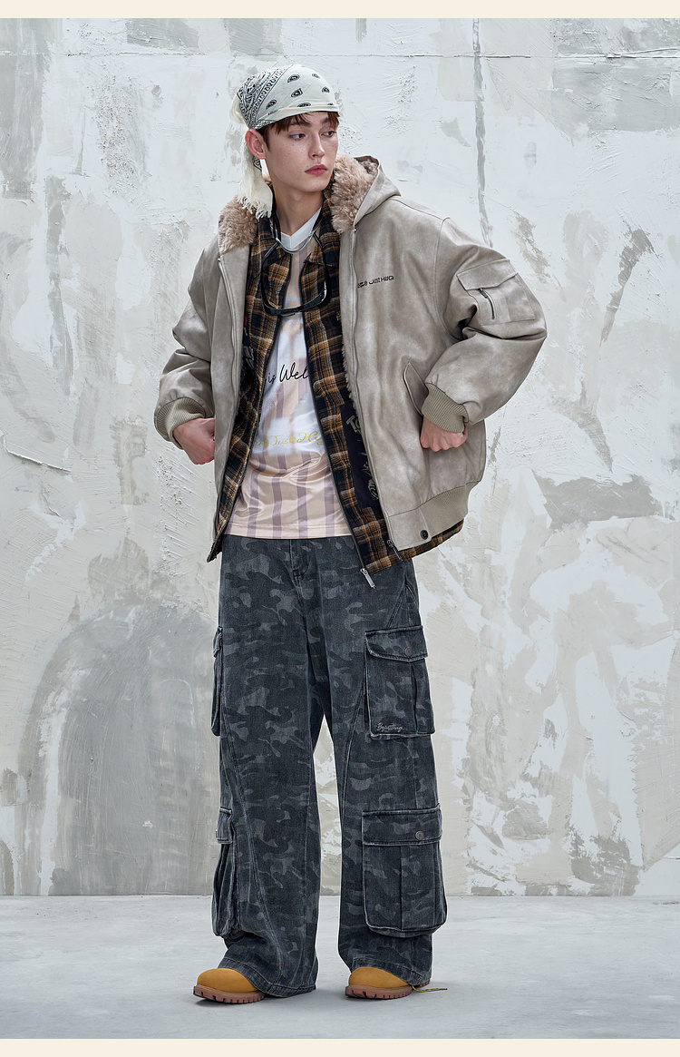 BJHG不计后果做旧PU皮飞行夹克棉服男款秋冬季复古连帽机能风外套