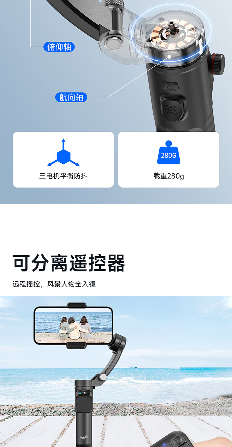 【分仓直发包邮】KOOKZZ酷客者智能三轴AI稳定器ZJ07