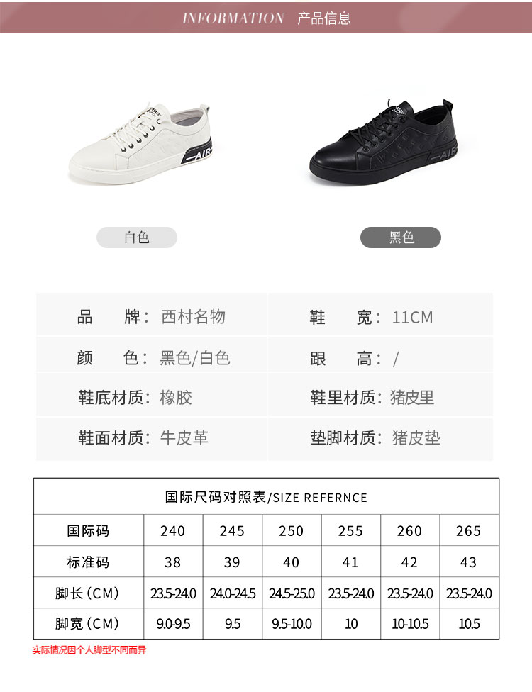 西村名物2021年秋冬新款男鞋韩版休闲鞋轻便防滑运动鞋板鞋小白鞋男X11AW13771