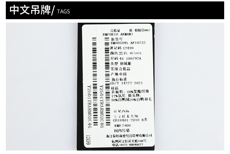 【超惠秒】Emporio Armani 男士商务休闲 飞鹰刺绣羽绒间隔款 白鸭绒羽绒服外套12499
