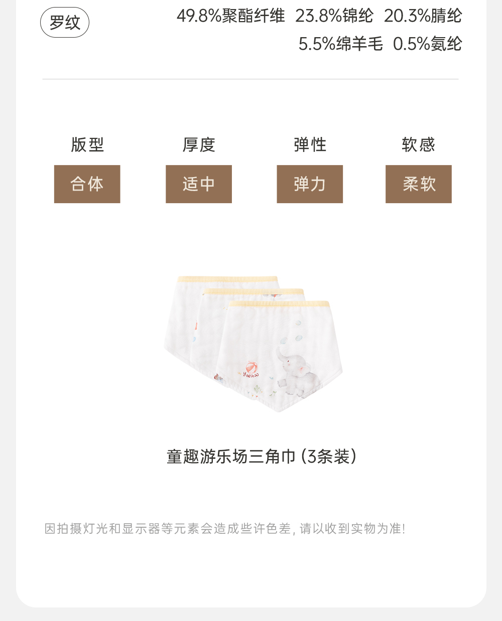 英氏婴儿三角巾纯棉抗菌宝宝口水巾3条装2024新款YLSBJ0Q667A