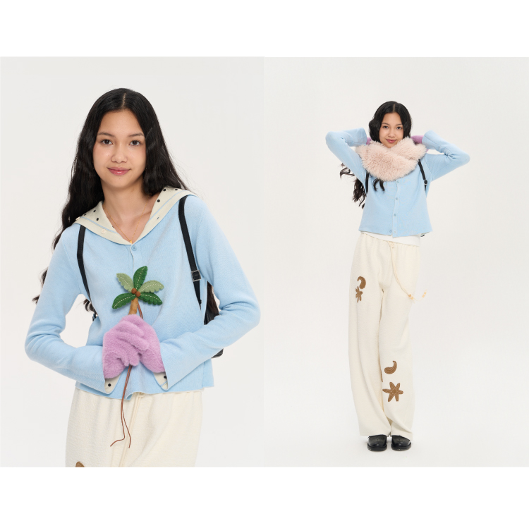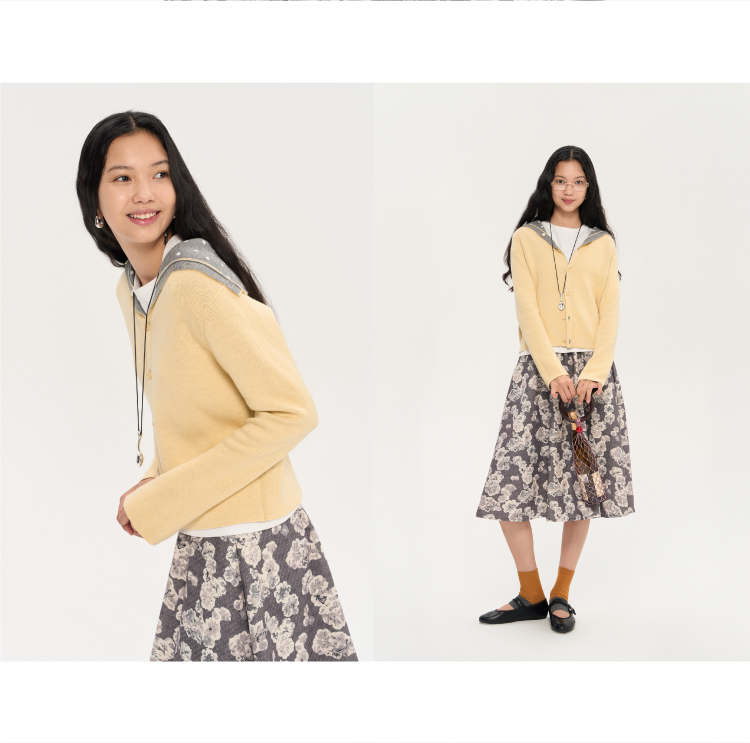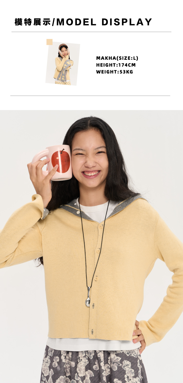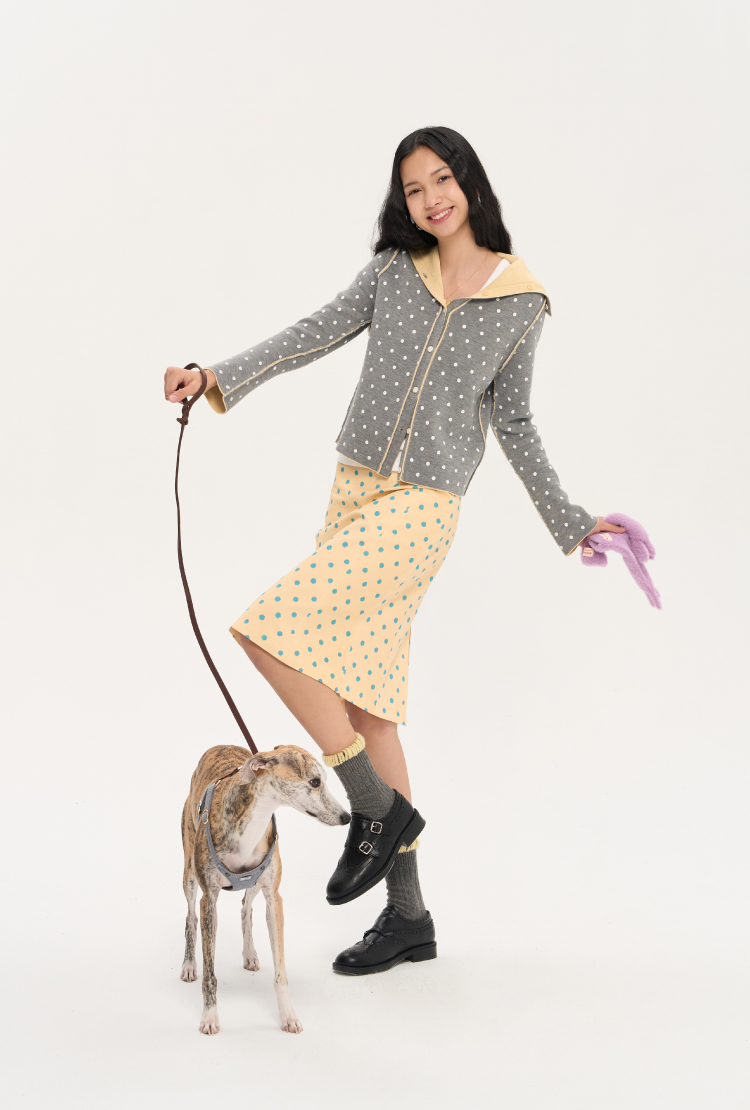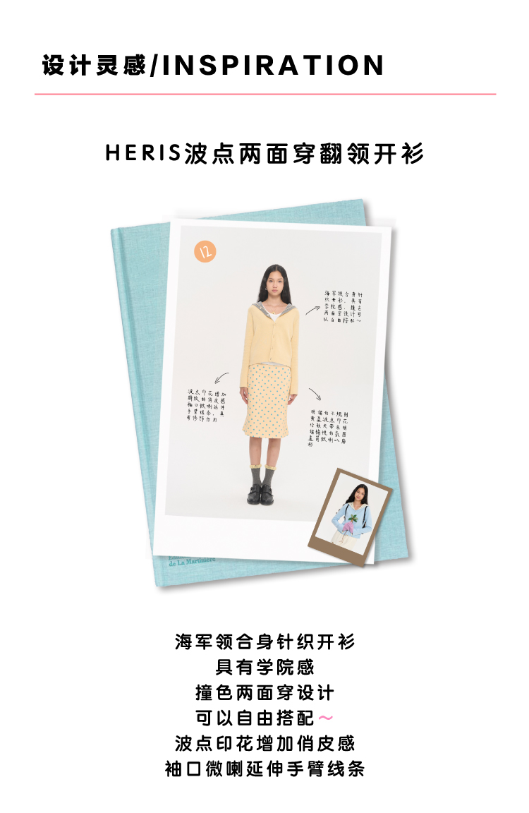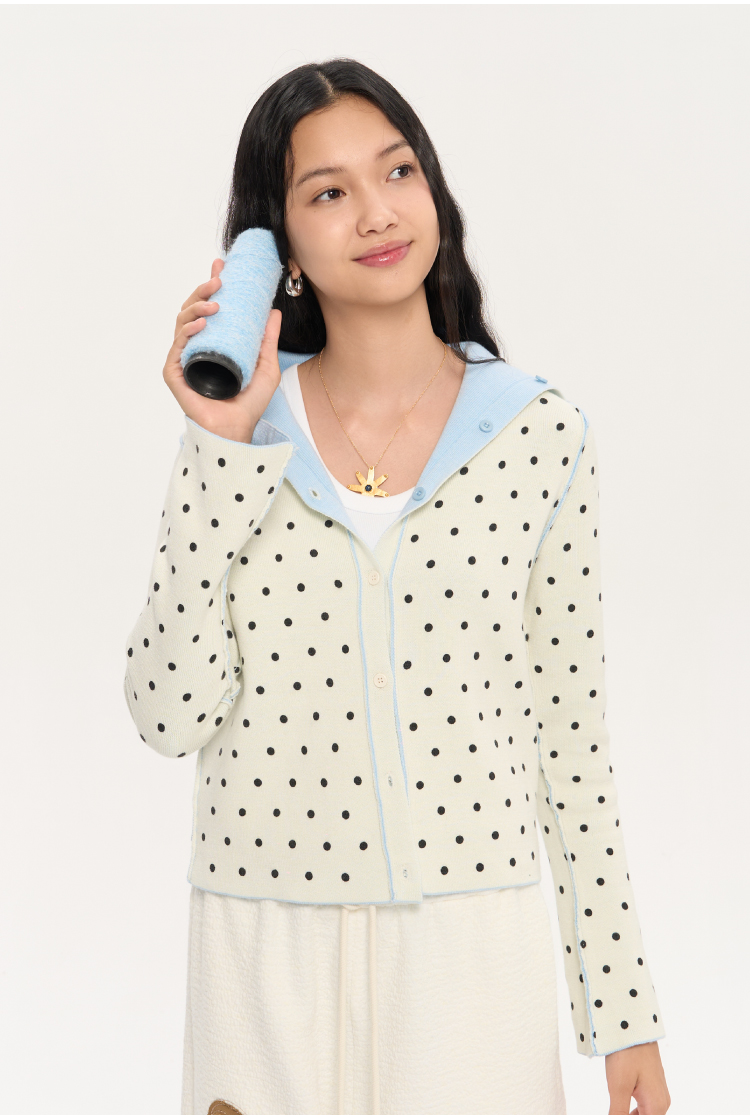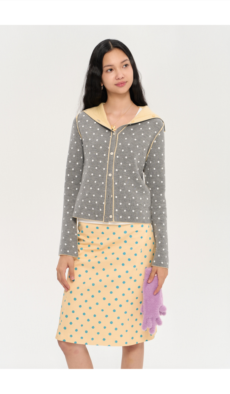 heris/H53101/奶油撞色波点 正反两穿设计 海军翻领开衫毛衣短外套