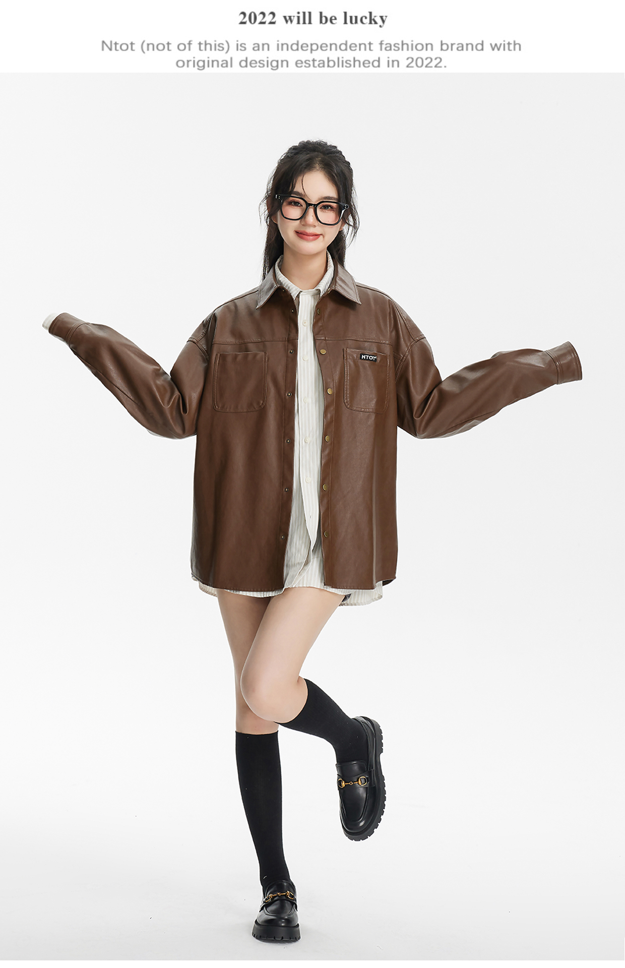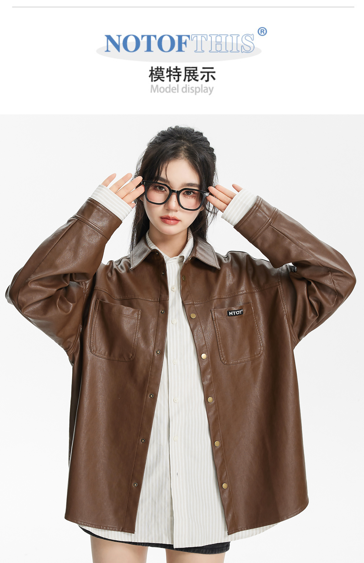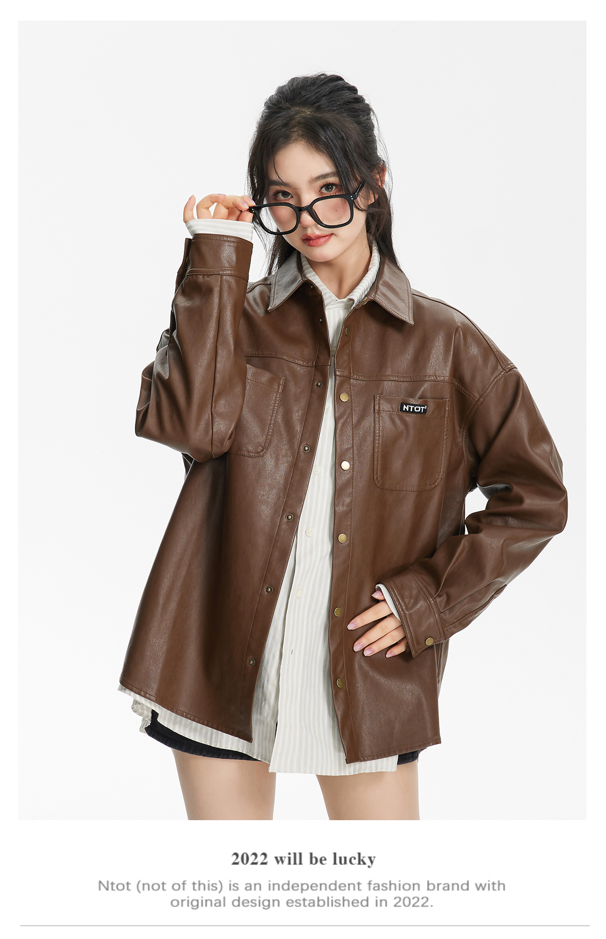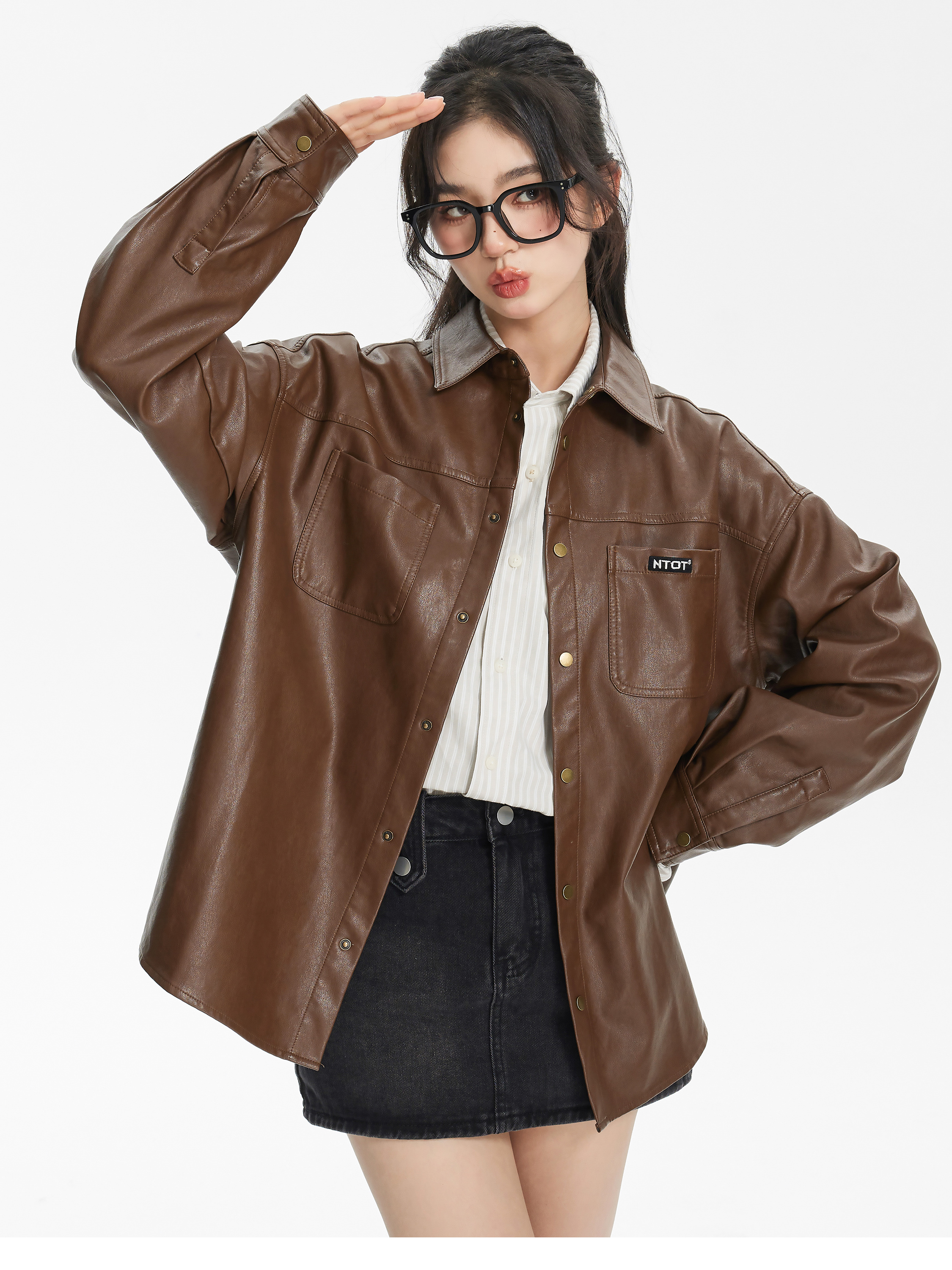 NTOT/NOTCS22159/中性咖色复古做旧水洗皮衬衫外套