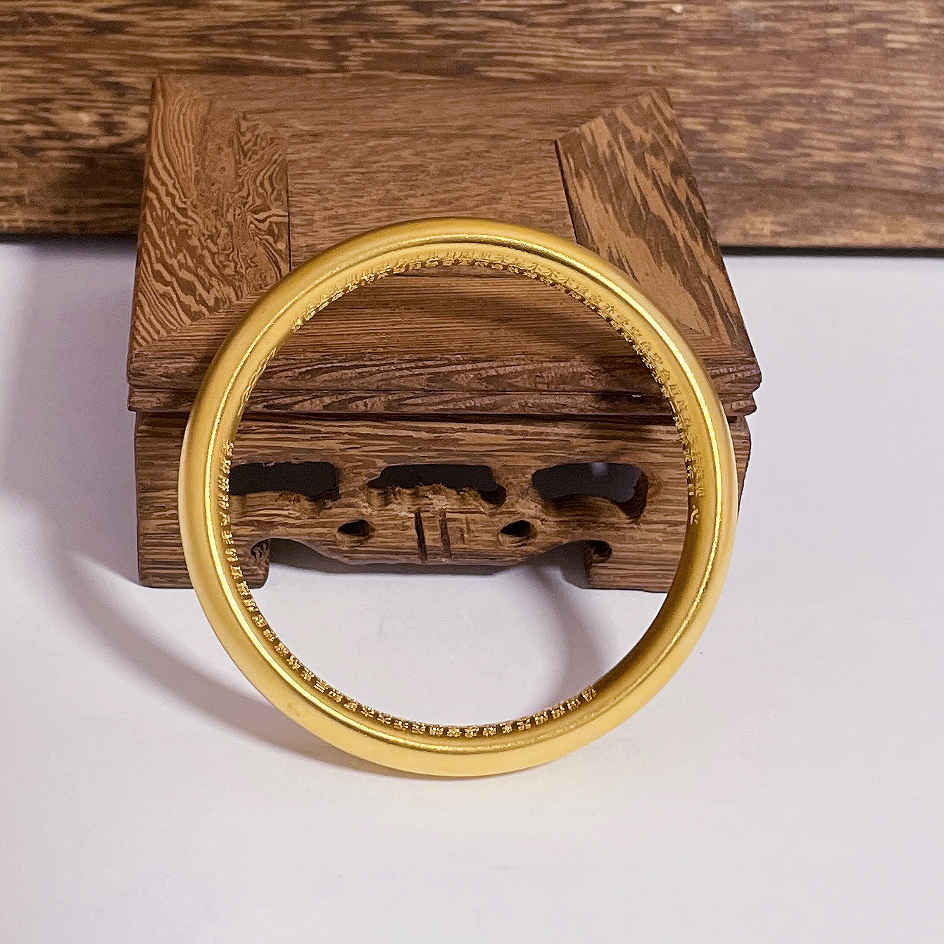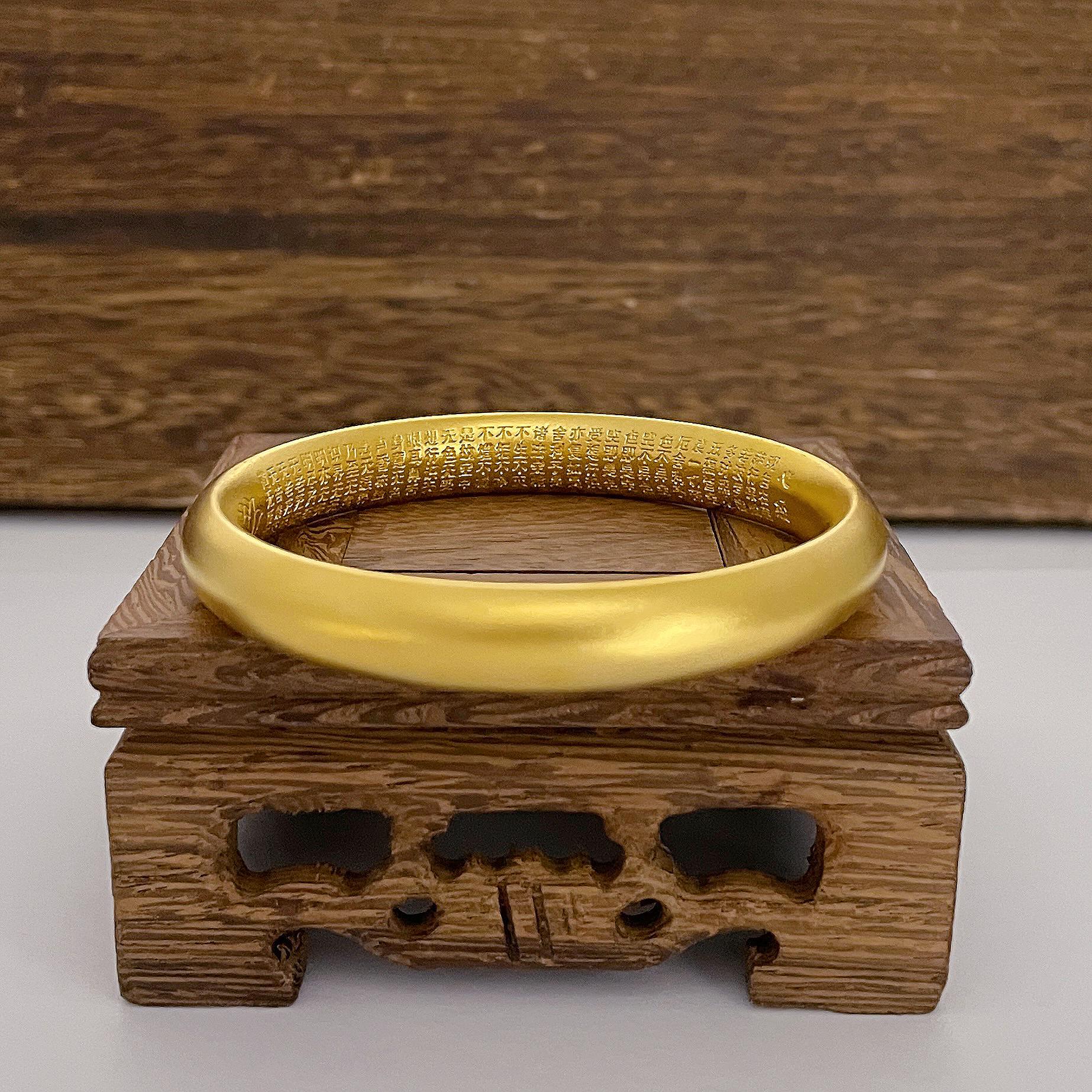 【限时克减150元】足金999.9 【油亮版本】古法空心固口(面宽约9.2-9.6mm)宽面内莲花心经手镯(AIGFSZ00015)预售产品下单后不退款不退货不换货不补差价)