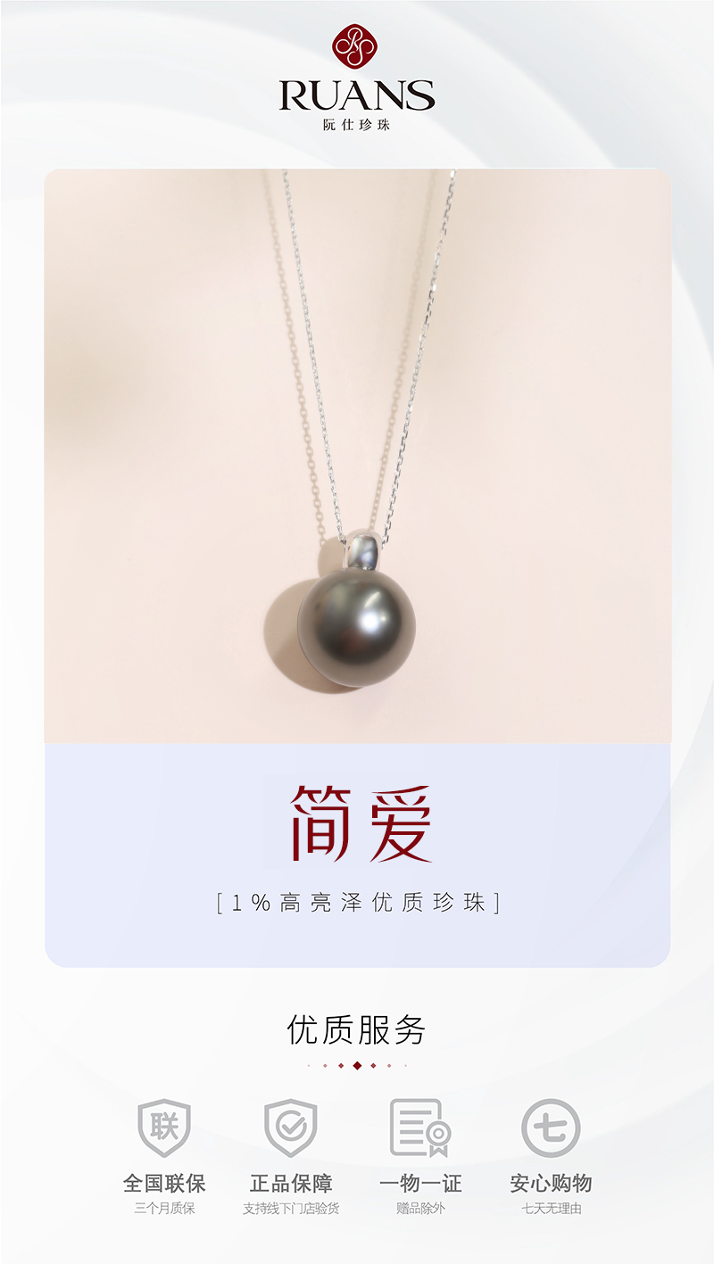阮仕简爱系列 G18K金大溪地黑珍珠链牌