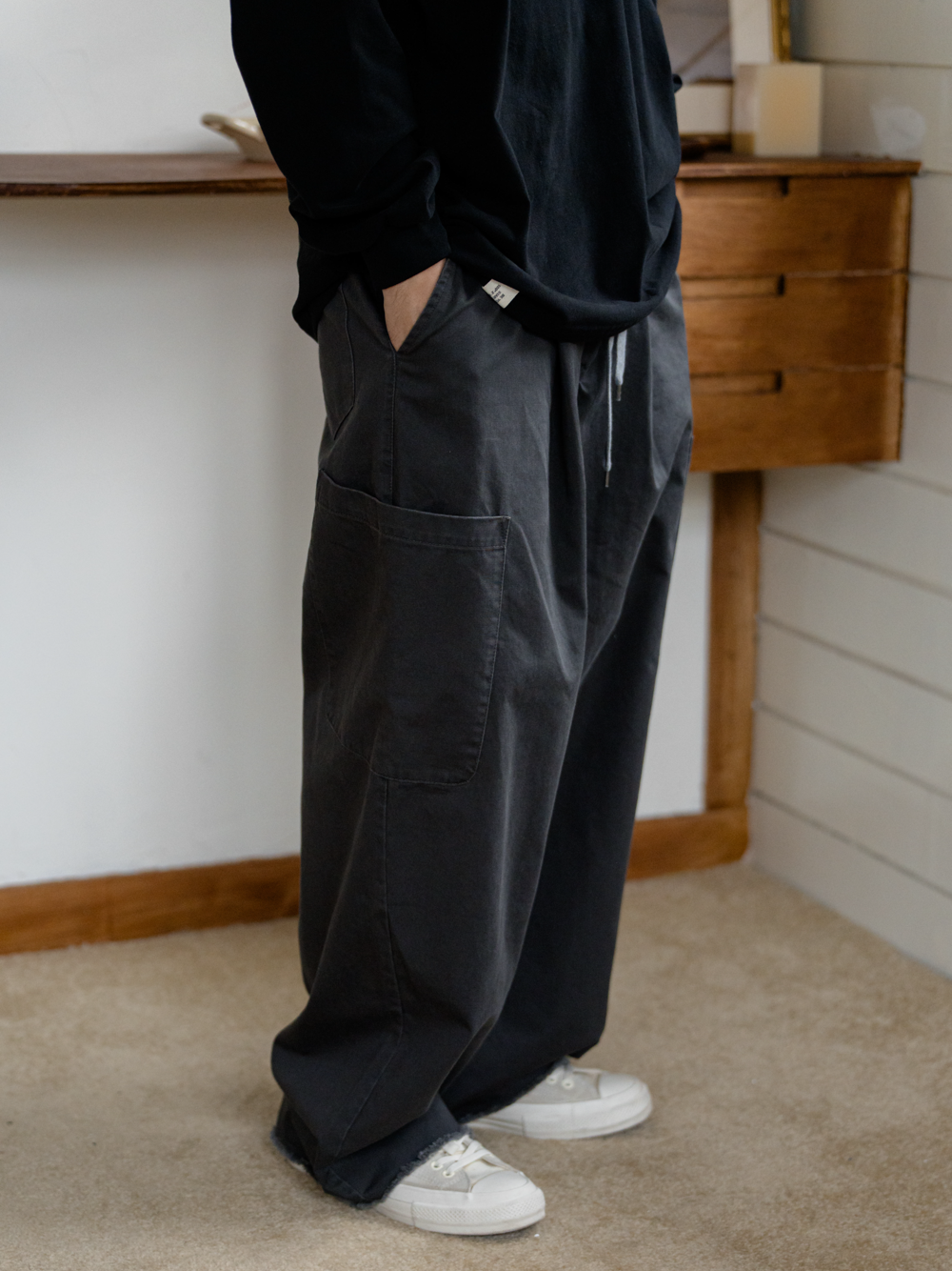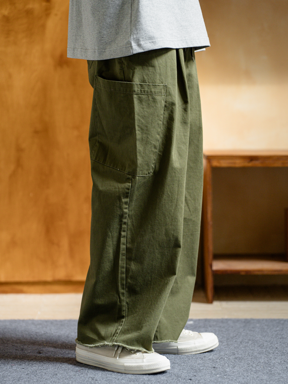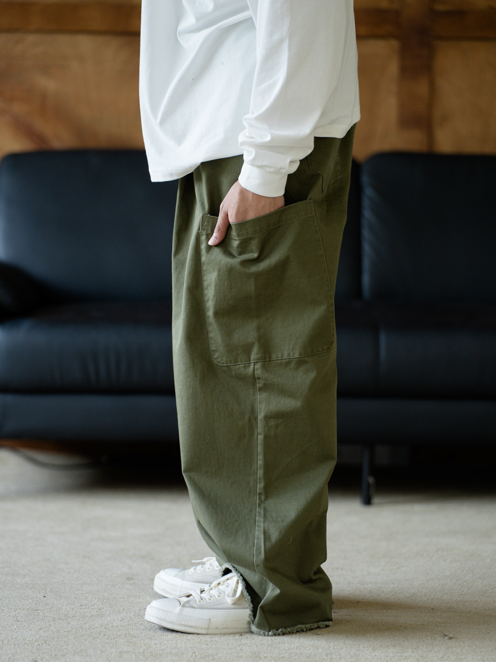 GYOZA PASTA/GP25AW-C050/水洗做旧破坏流苏工装口袋弯刀裤