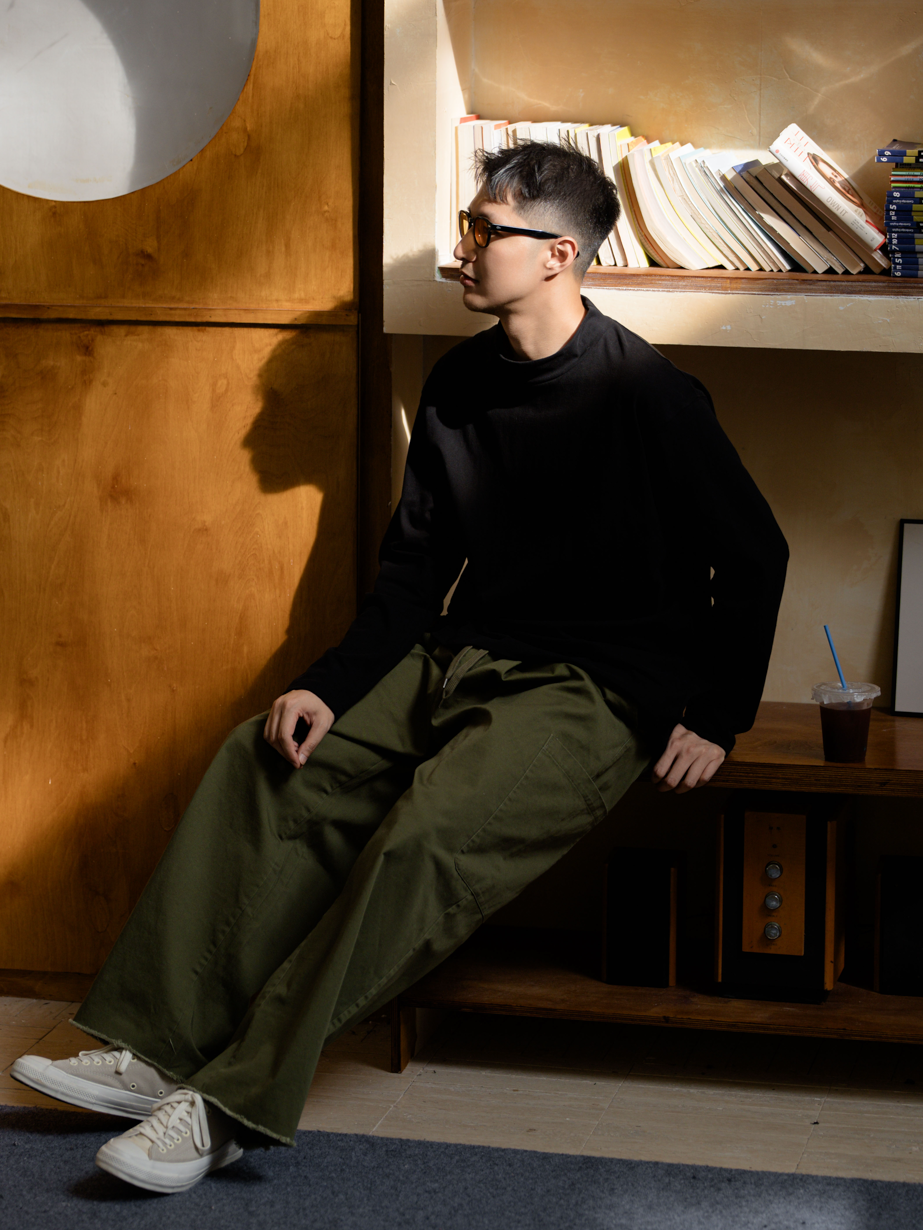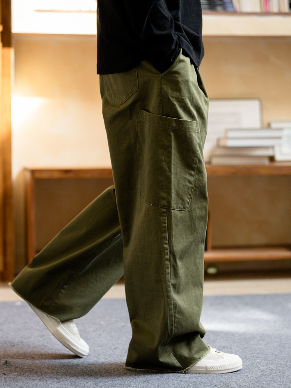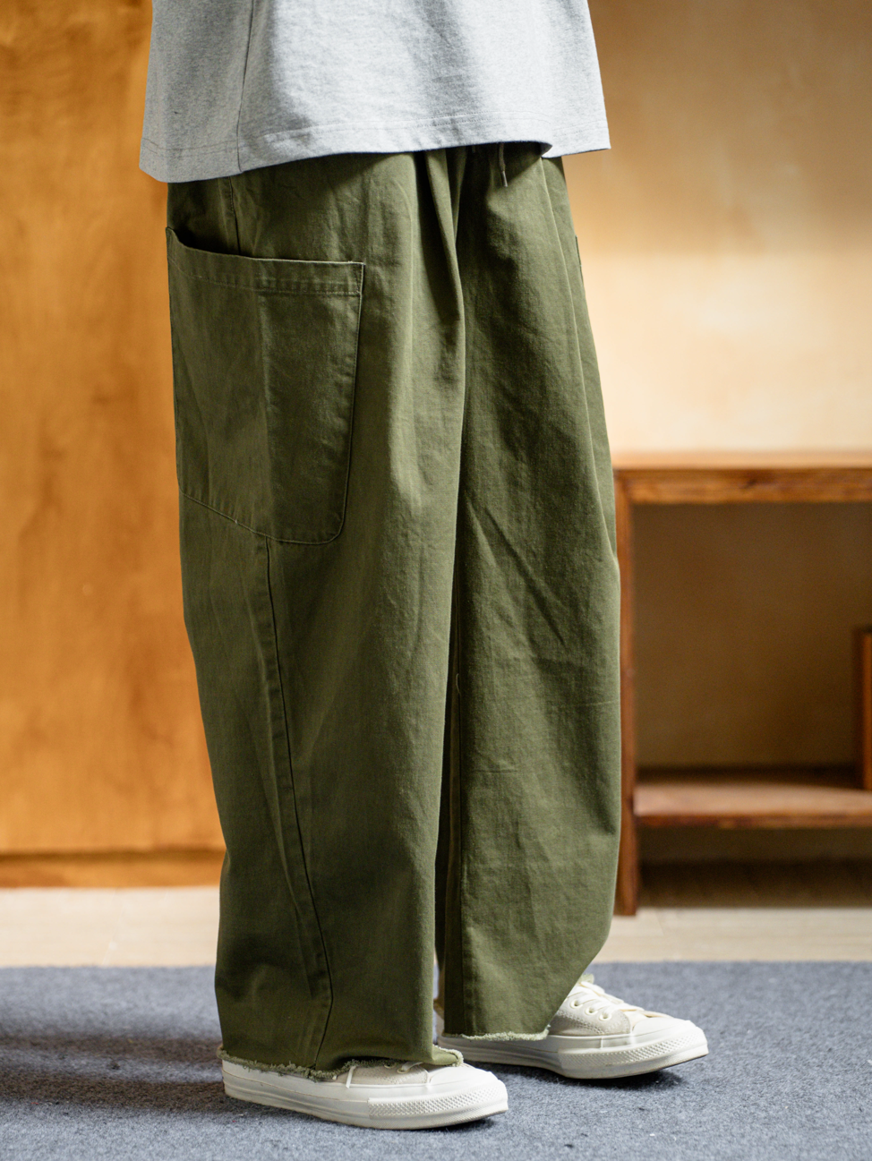 GYOZA PASTA/GP25AW-C050/水洗做旧破坏流苏工装口袋弯刀裤