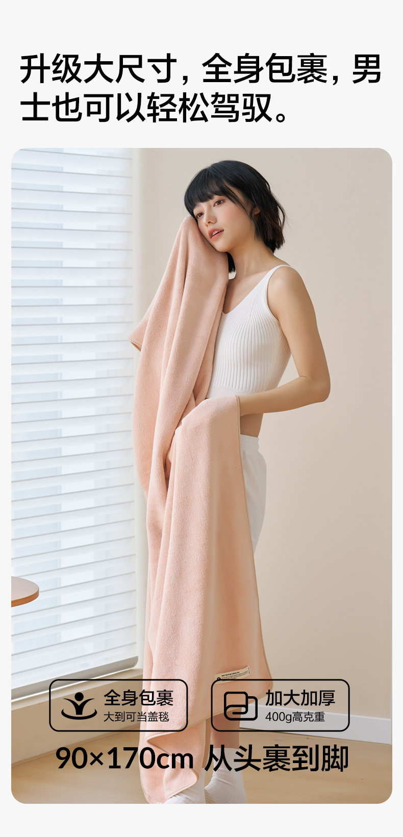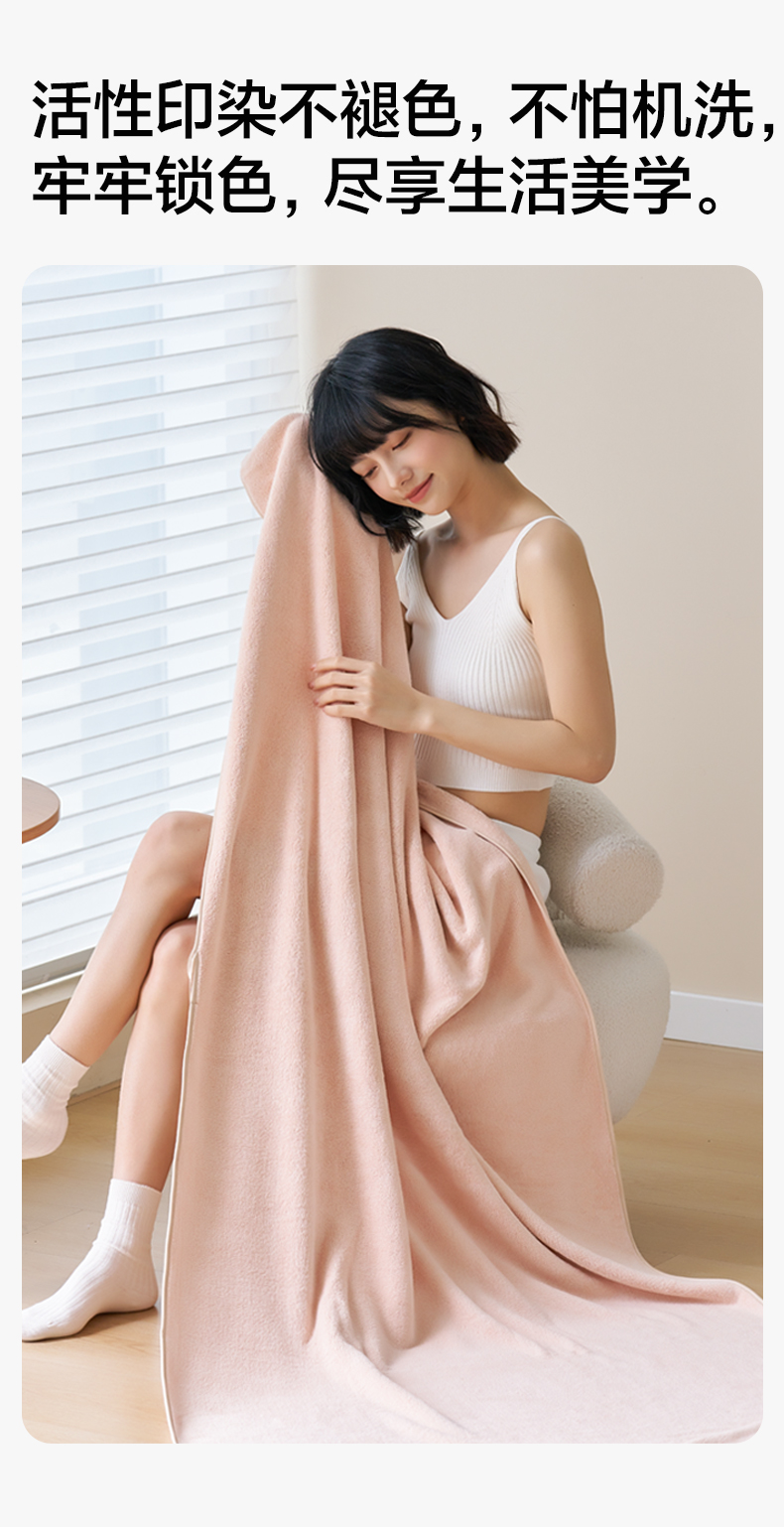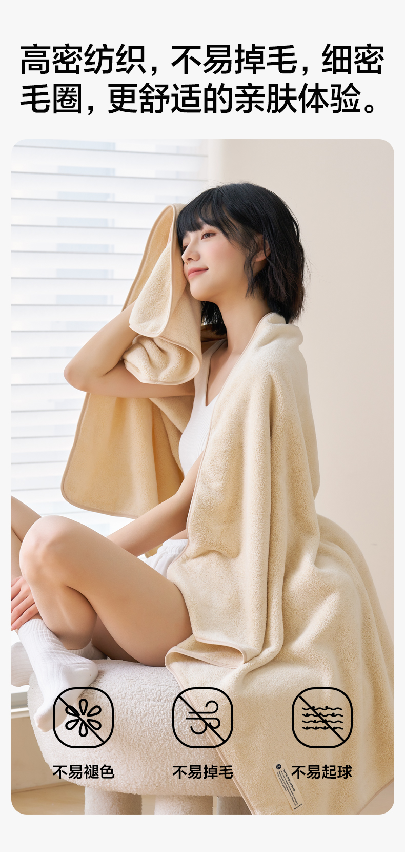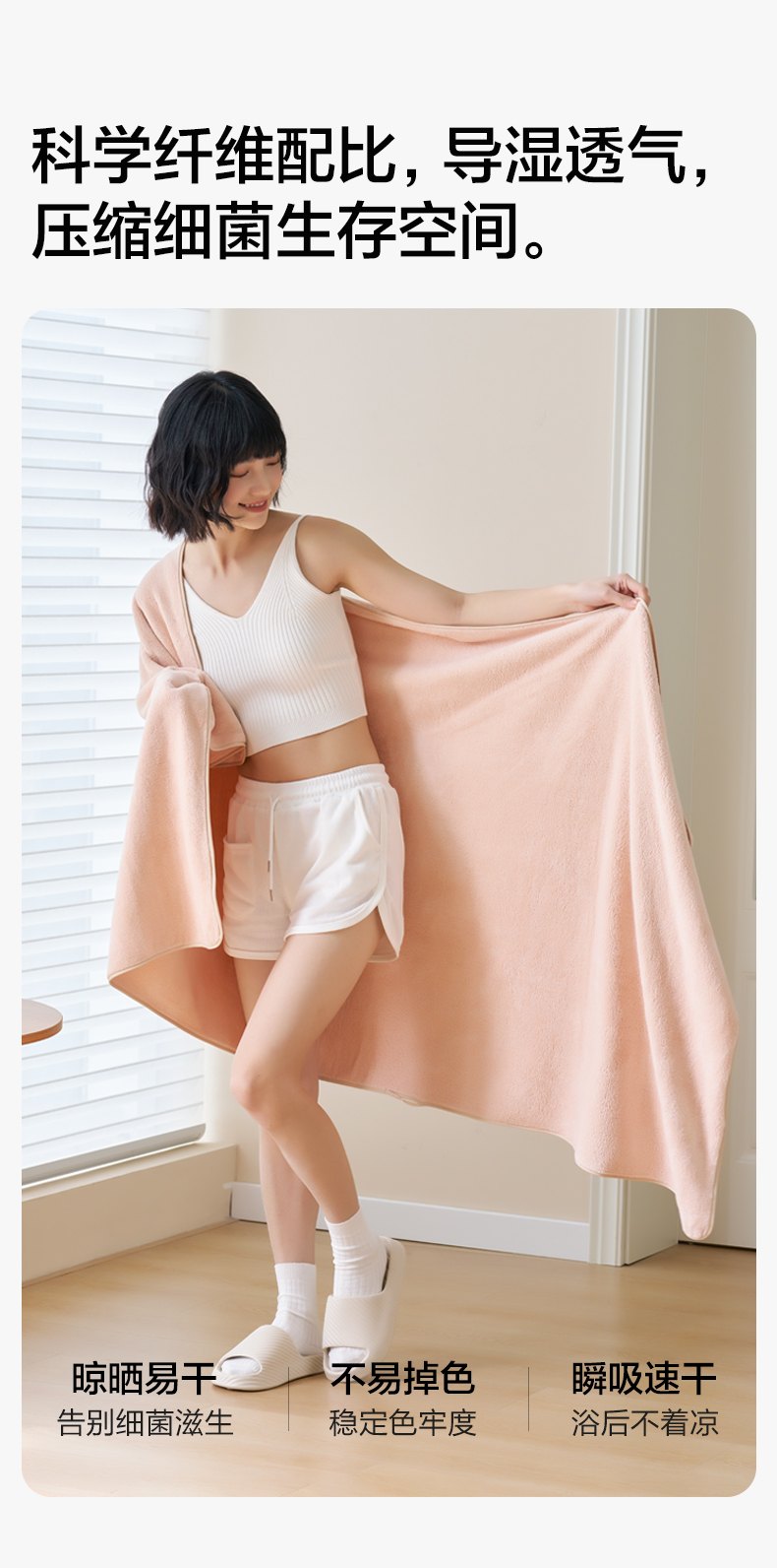 三利7A抗菌浴巾女家用洗澡比纯棉吸水珊瑚绒速干加大毛巾洗澡大毛巾裹巾柔软吸水浴巾