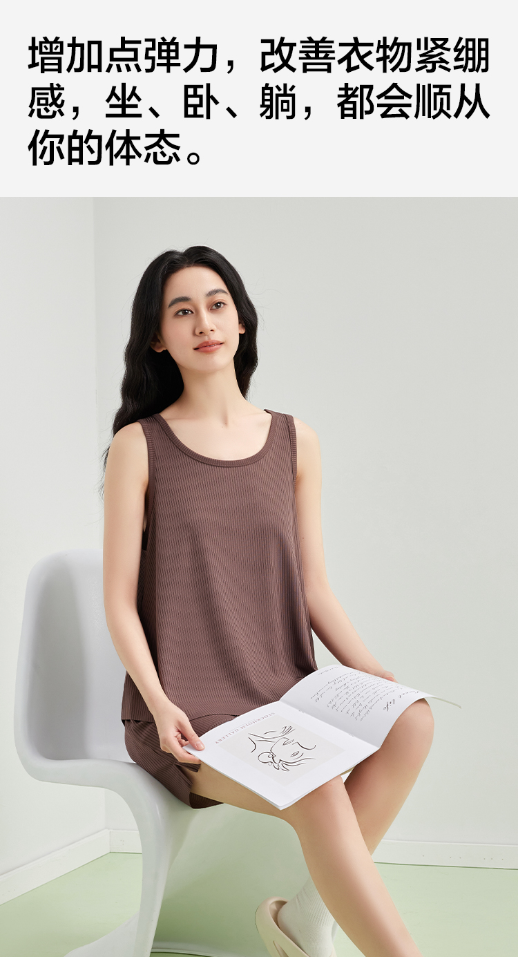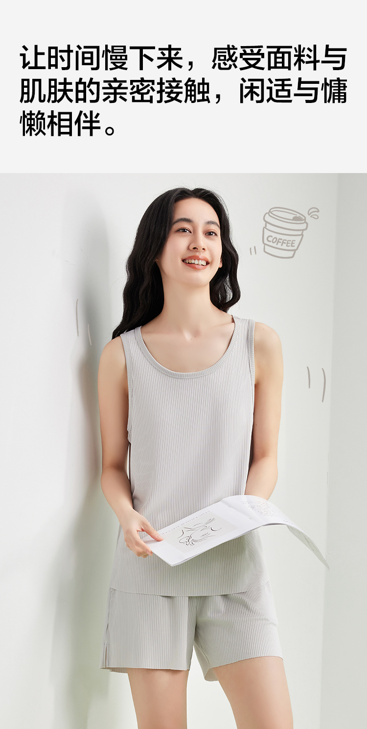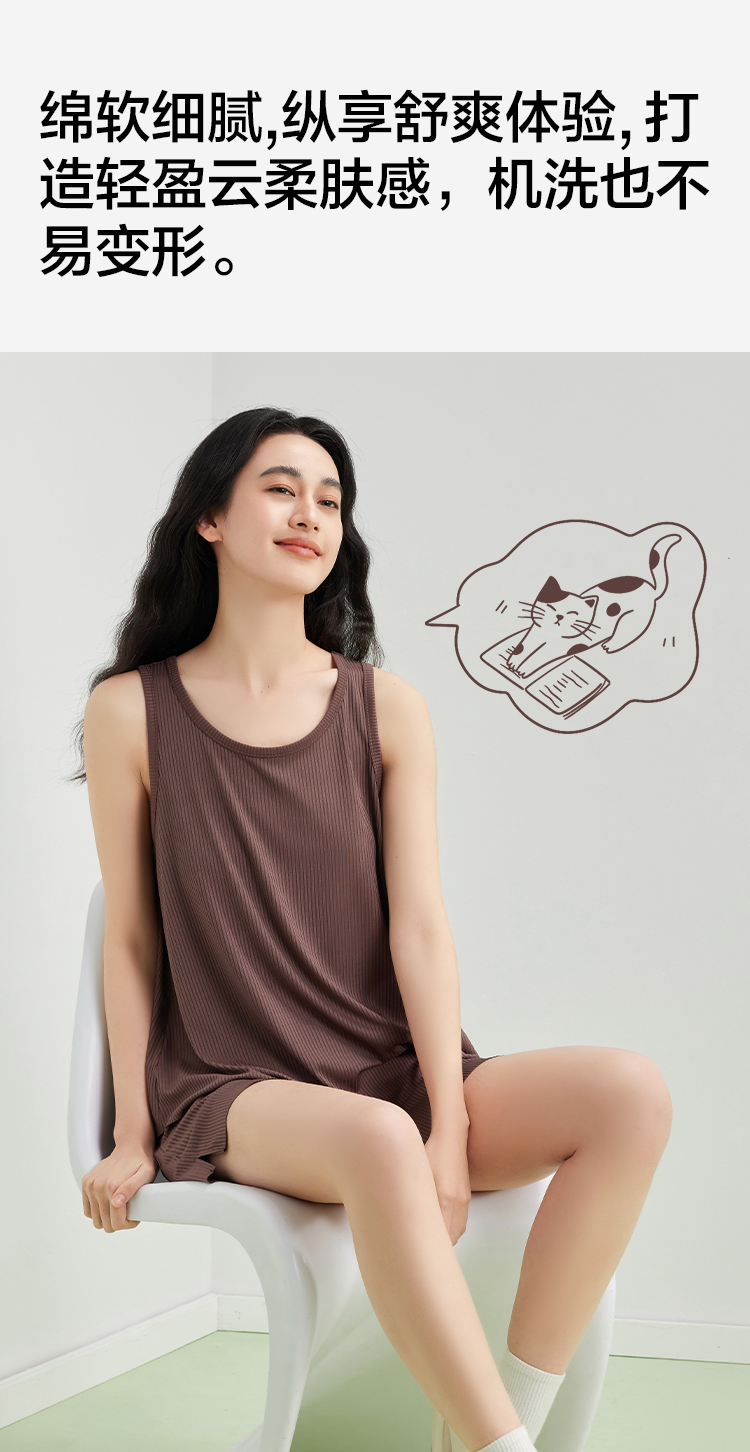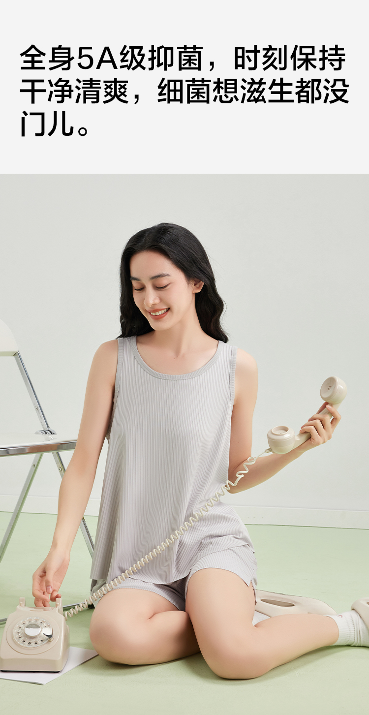 【5A抑菌 凉感两件套】【有棵树】女士无袖背心短裤轻薄家居服睡衣套装
