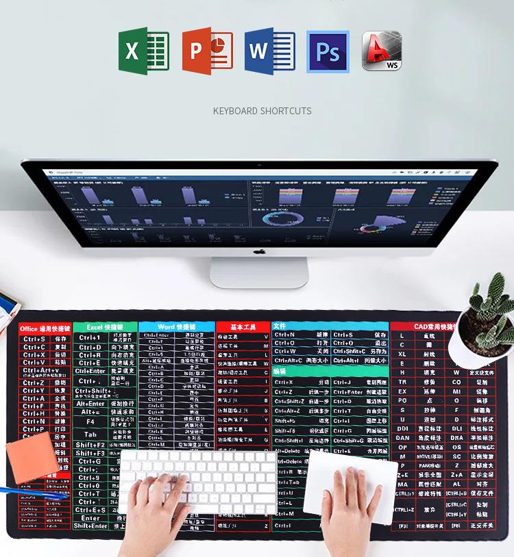 办公快捷键办公室大全鼠标垫超大号电脑可爱桌面锁边桌垫垫子