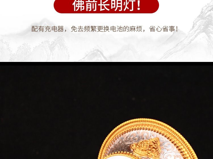 新款天珠电子灯座佛前LED灯八吉祥灯B款充电酥油灯包邮