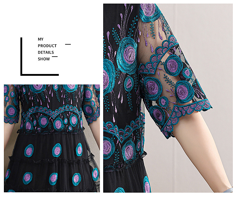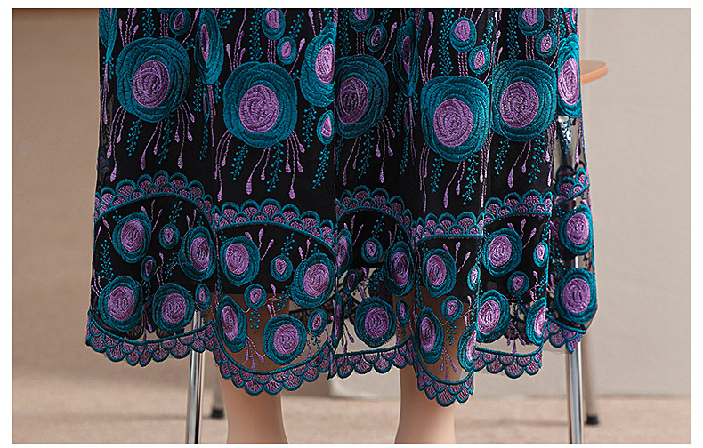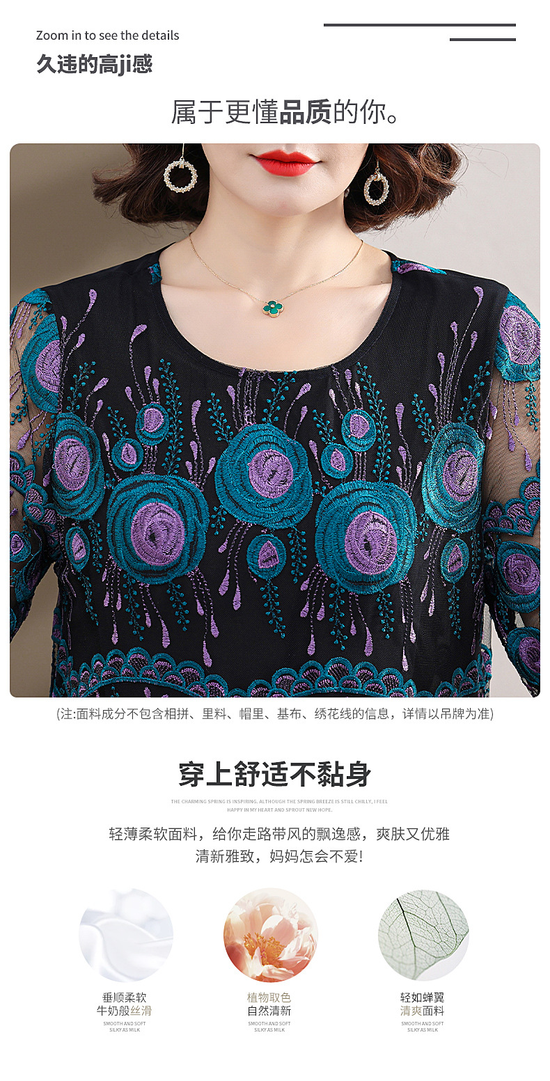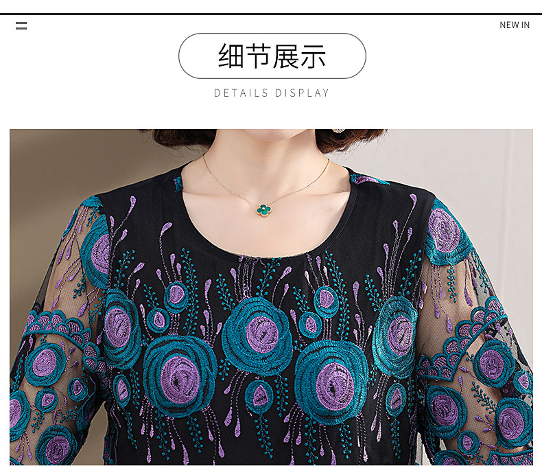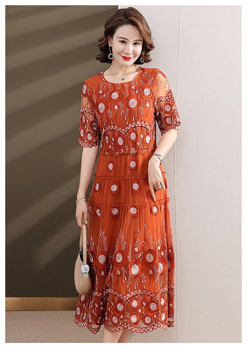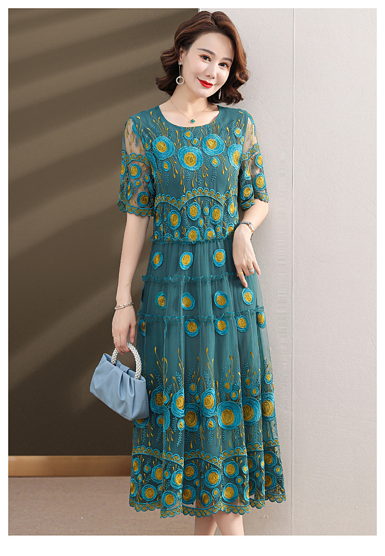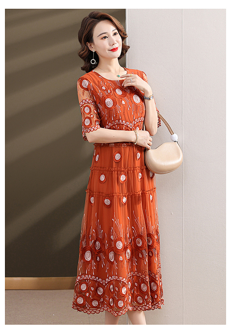 中年妈妈绣花蕾丝连衣裙女2023新款夏季中老年洋气过膝裙子50大码QX-W24