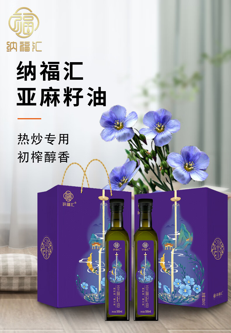 【1件包邮】纳福汇冷榨亚麻籽油礼盒装两种规格 少油渍轻油烟 甘肃/青海/内蒙古/新疆/西藏/宁夏/海南/港澳台不发货