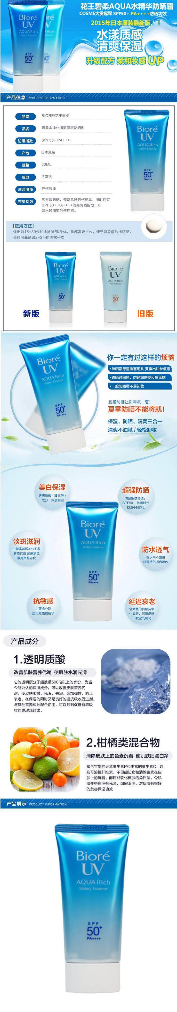 【香港直邮】日本Biore/碧柔 清爽水感户外防晒乳霜SPF50+可批发