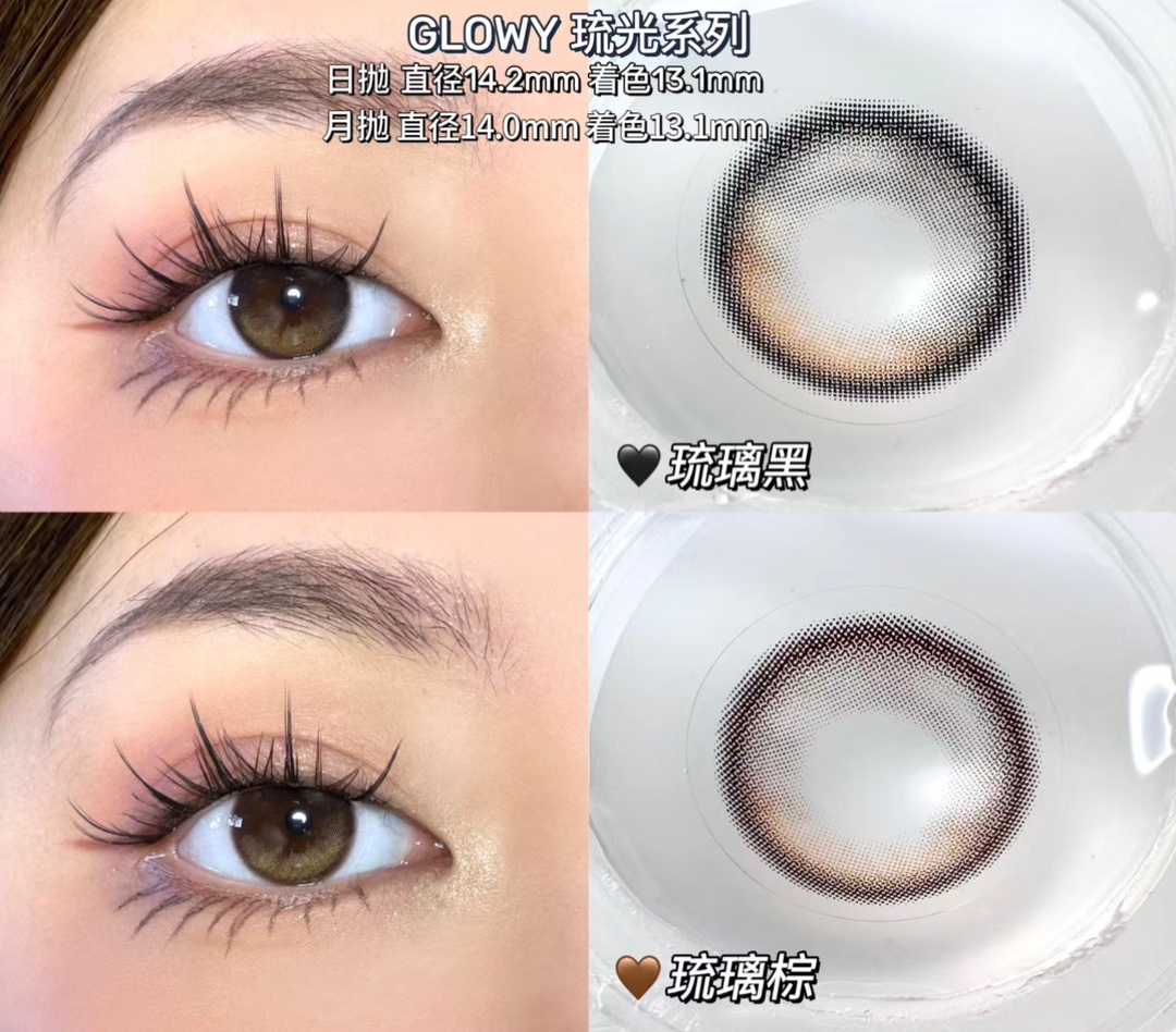 olens月抛 琉璃棕/黑 glowy 14.2mm 一盒2p