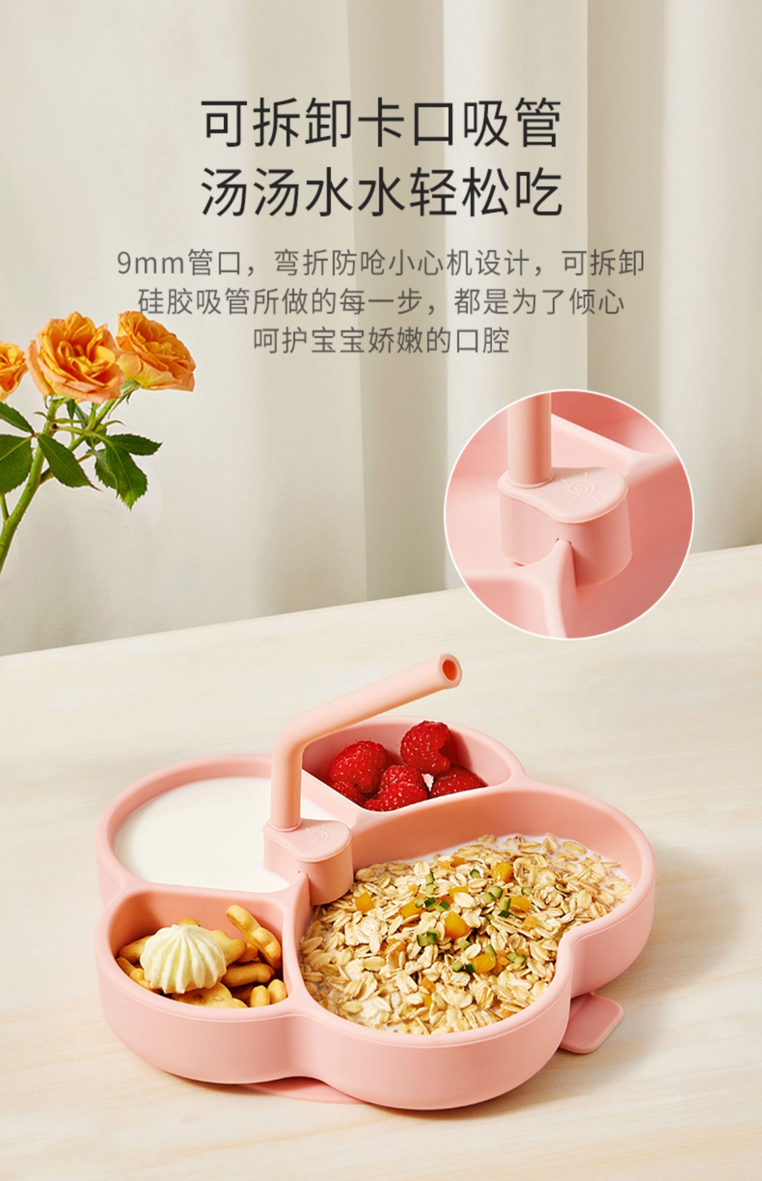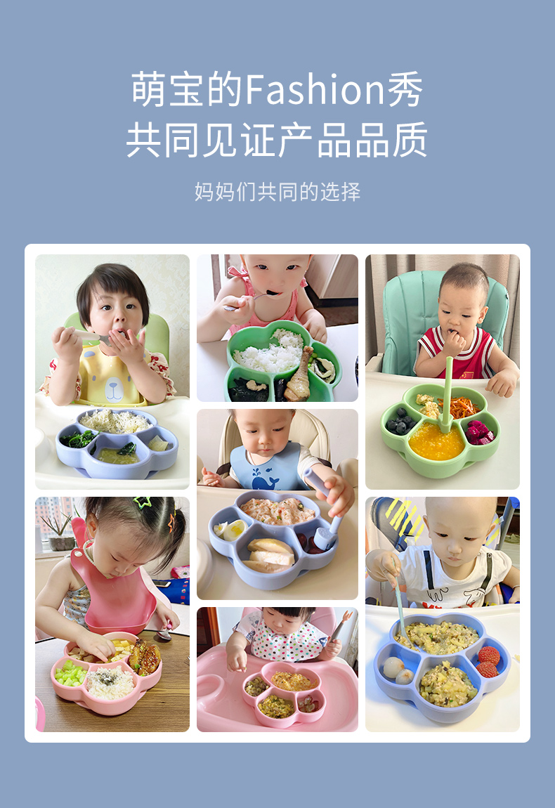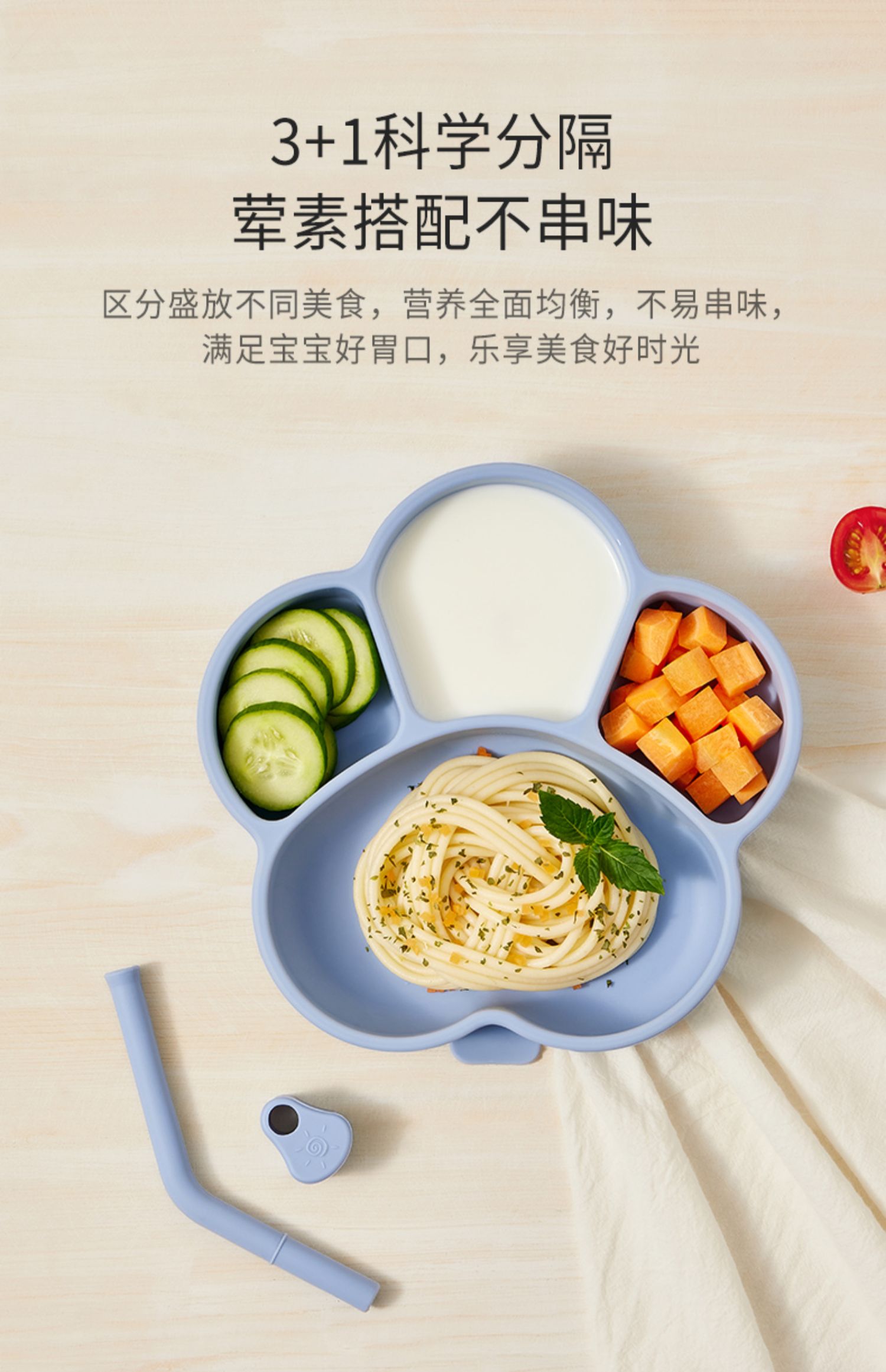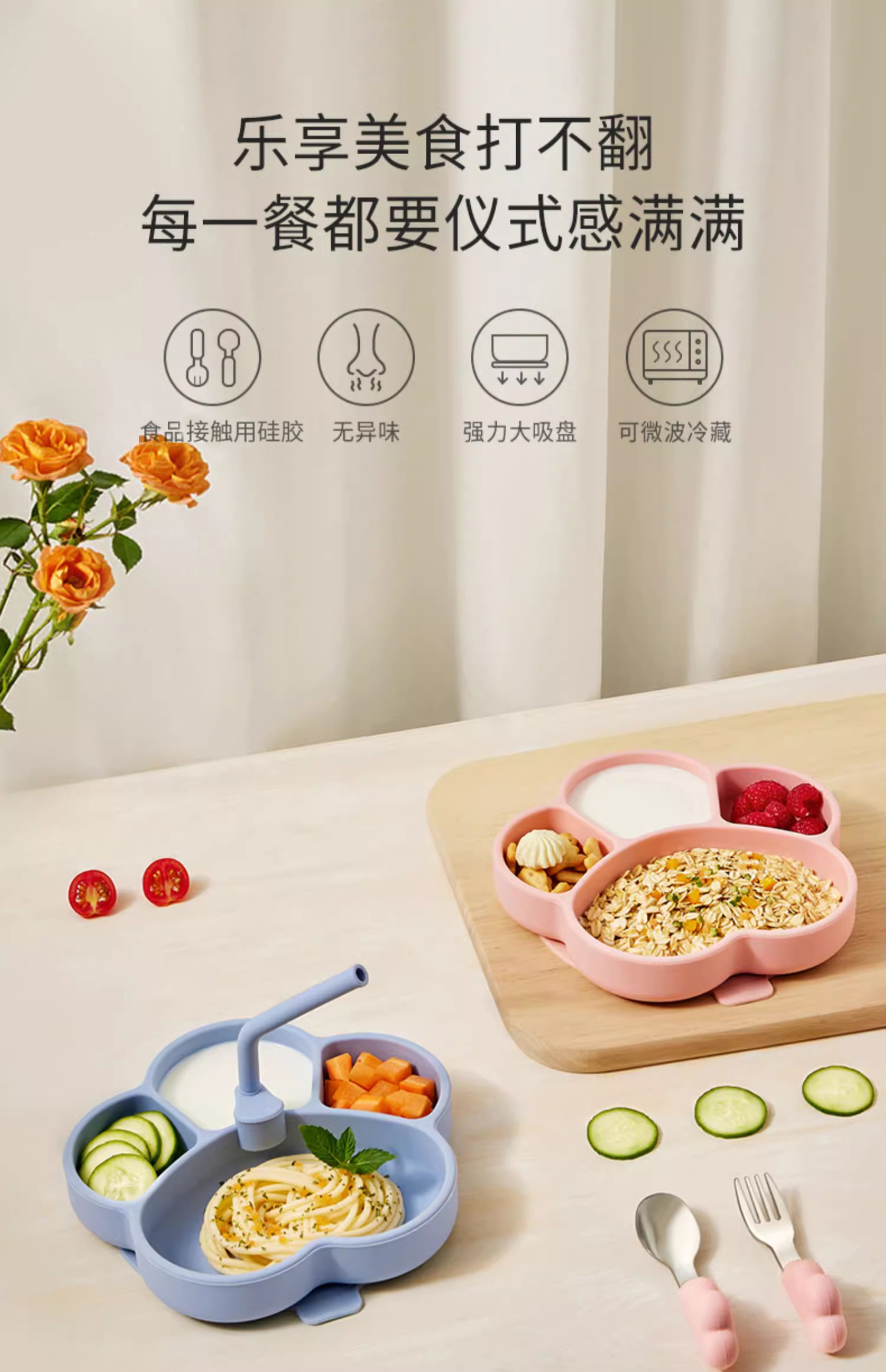 【爆】宝宝餐盘吸盘分格盘婴儿硅胶吸管辅食碗吃饭训练勺子儿童餐具套装