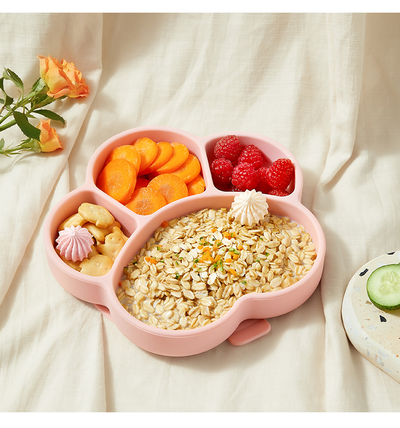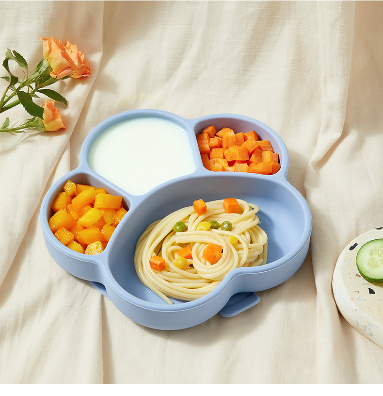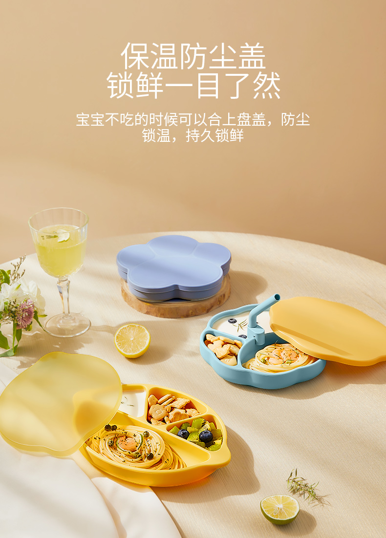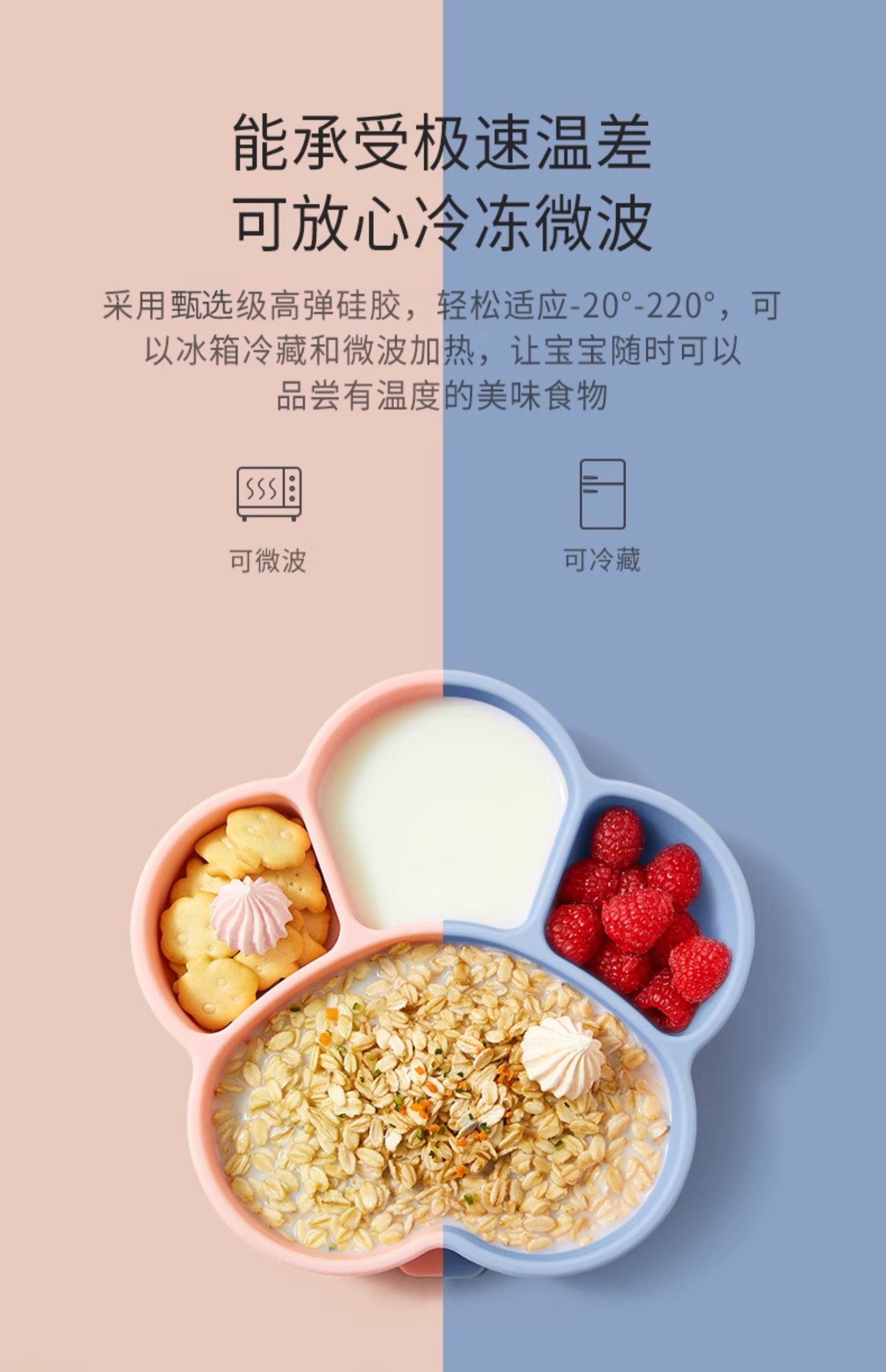 【爆】宝宝餐盘吸盘分格盘婴儿硅胶吸管辅食碗吃饭训练勺子儿童餐具套装