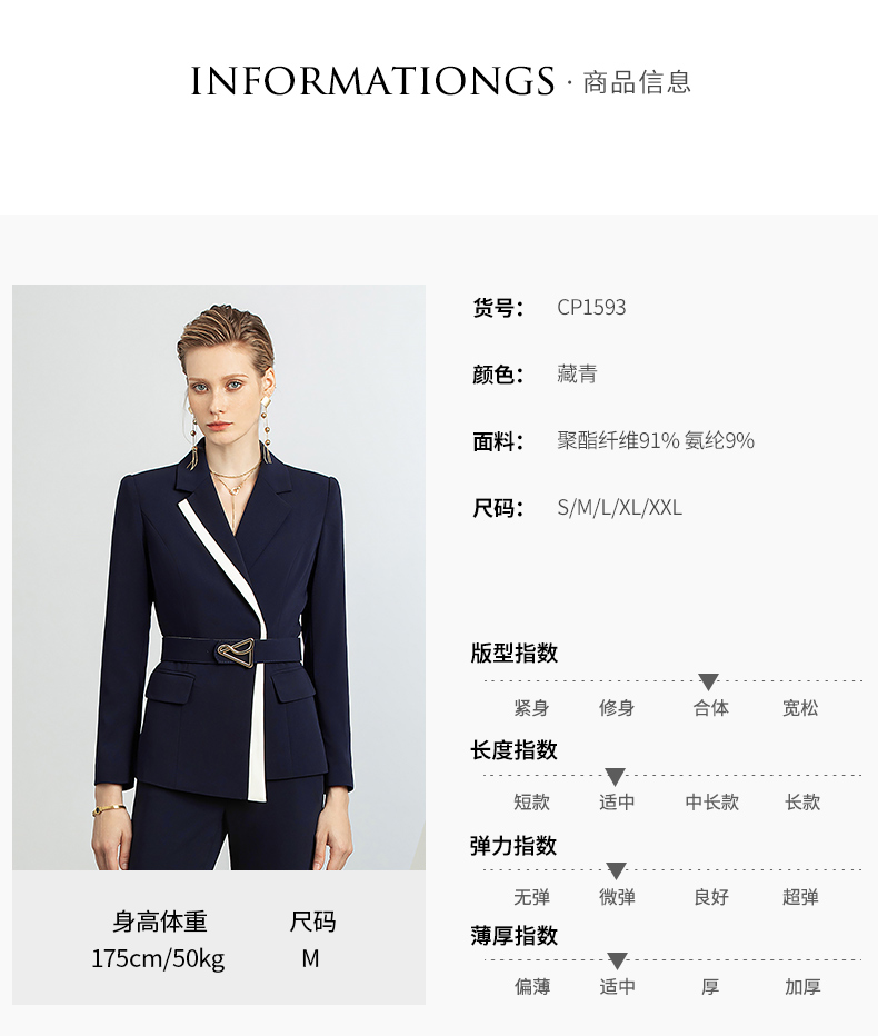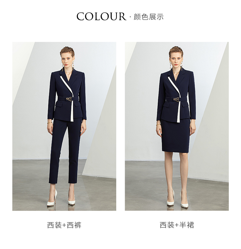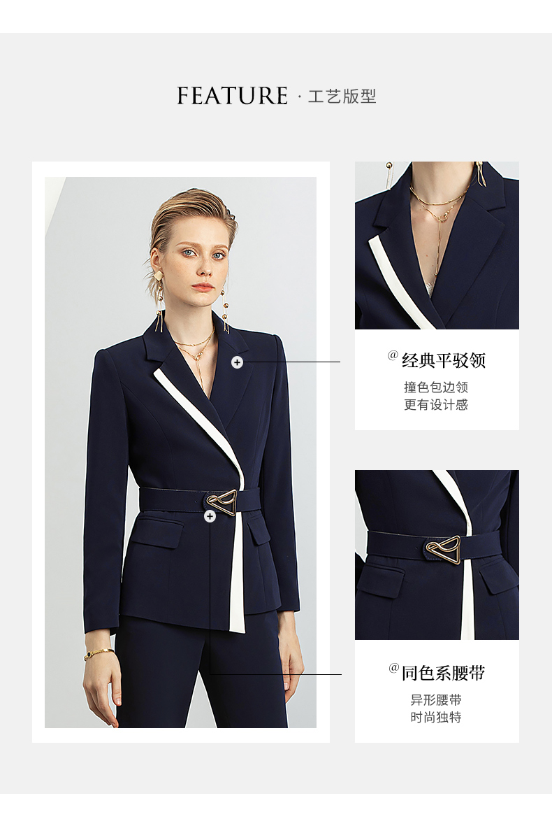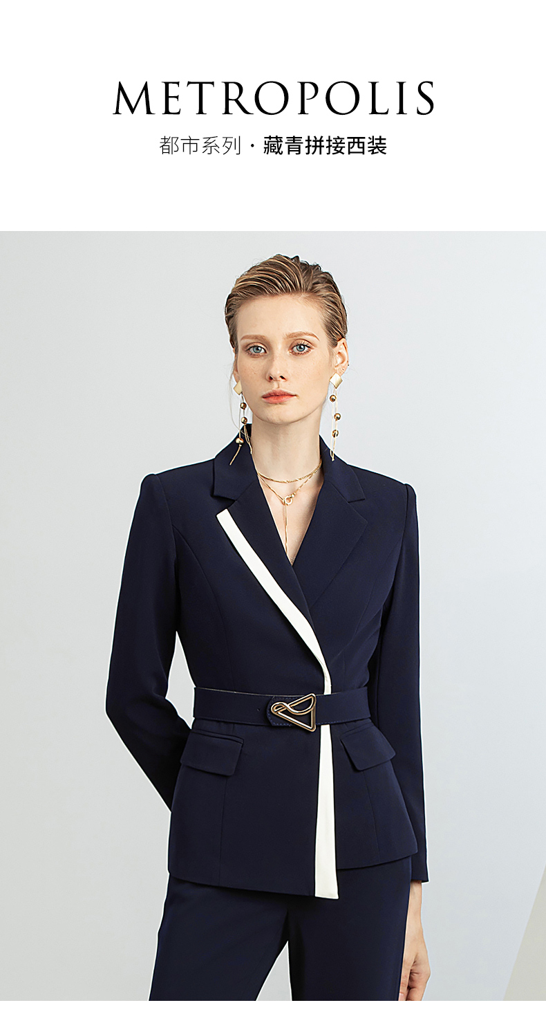 IWY藏青色休闲西装套装女夏高级感通勤长袖西服职业装气质女神范CP1593