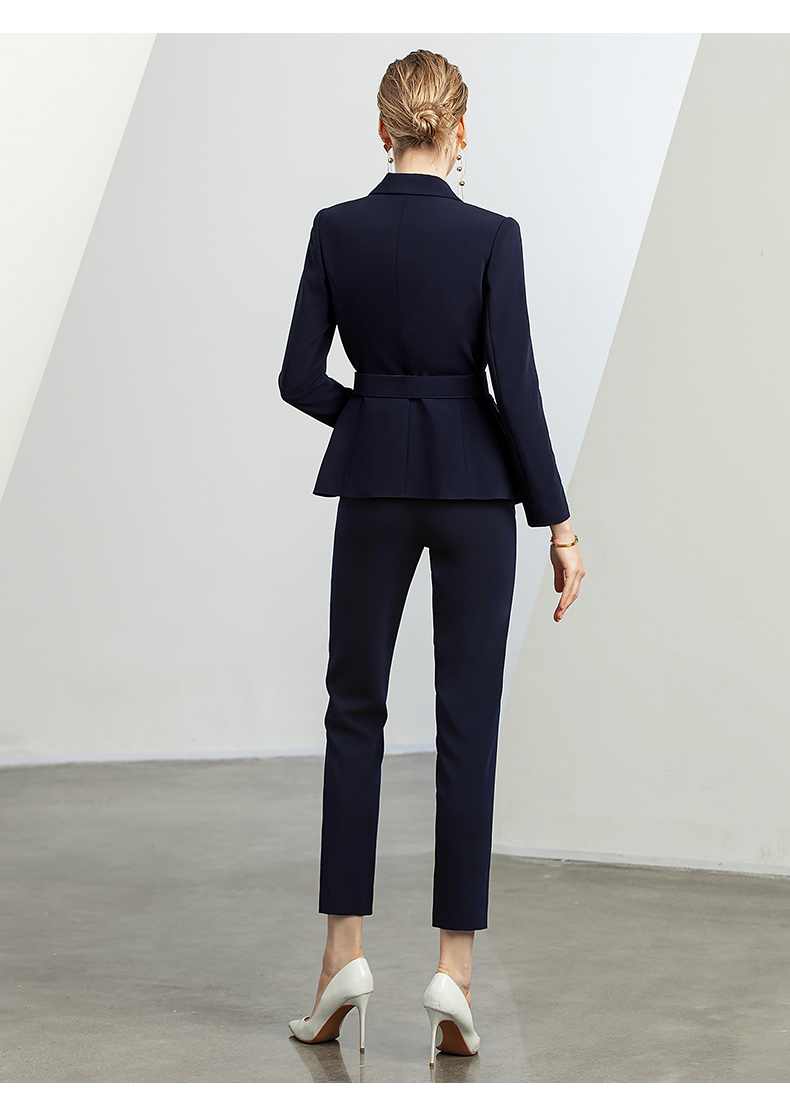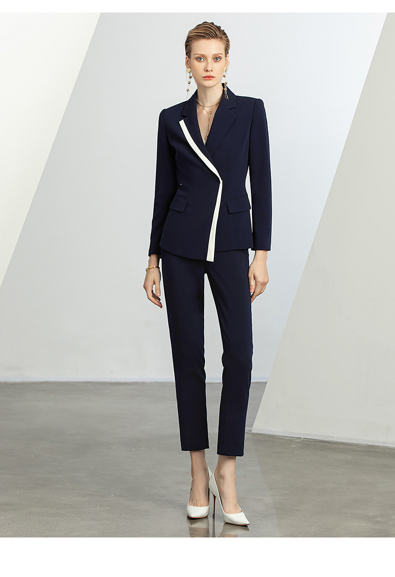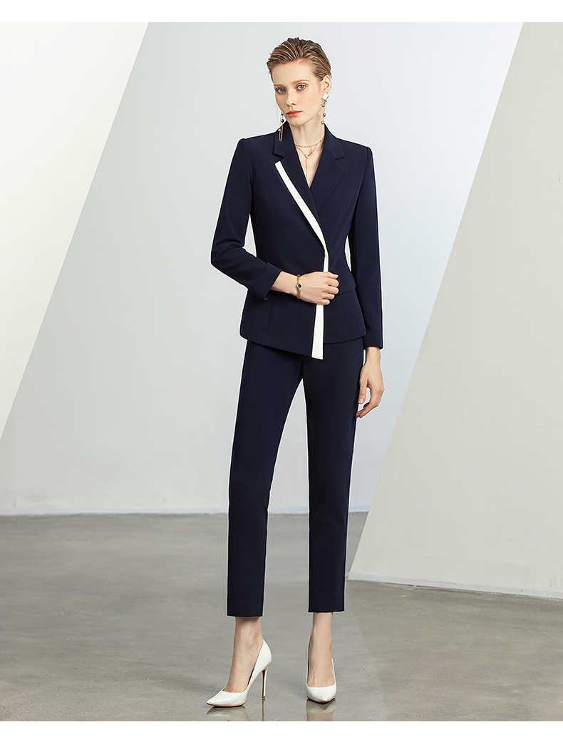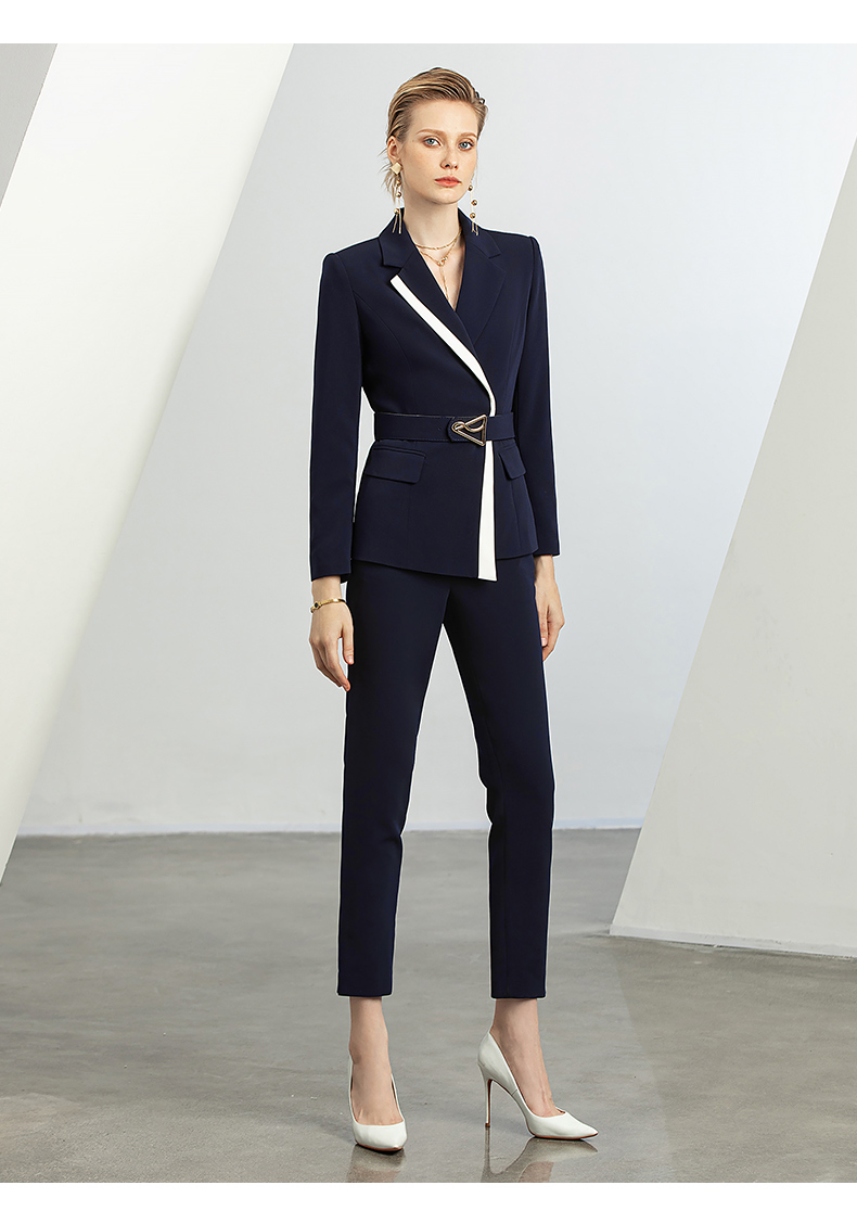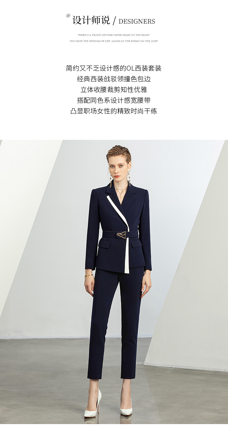 IWY藏青色休闲西装套装女夏高级感通勤长袖西服职业装气质女神范CP1593