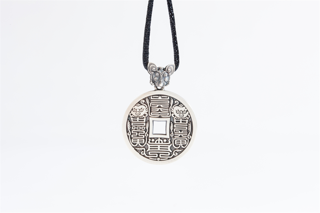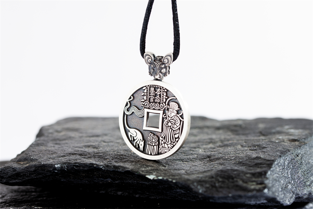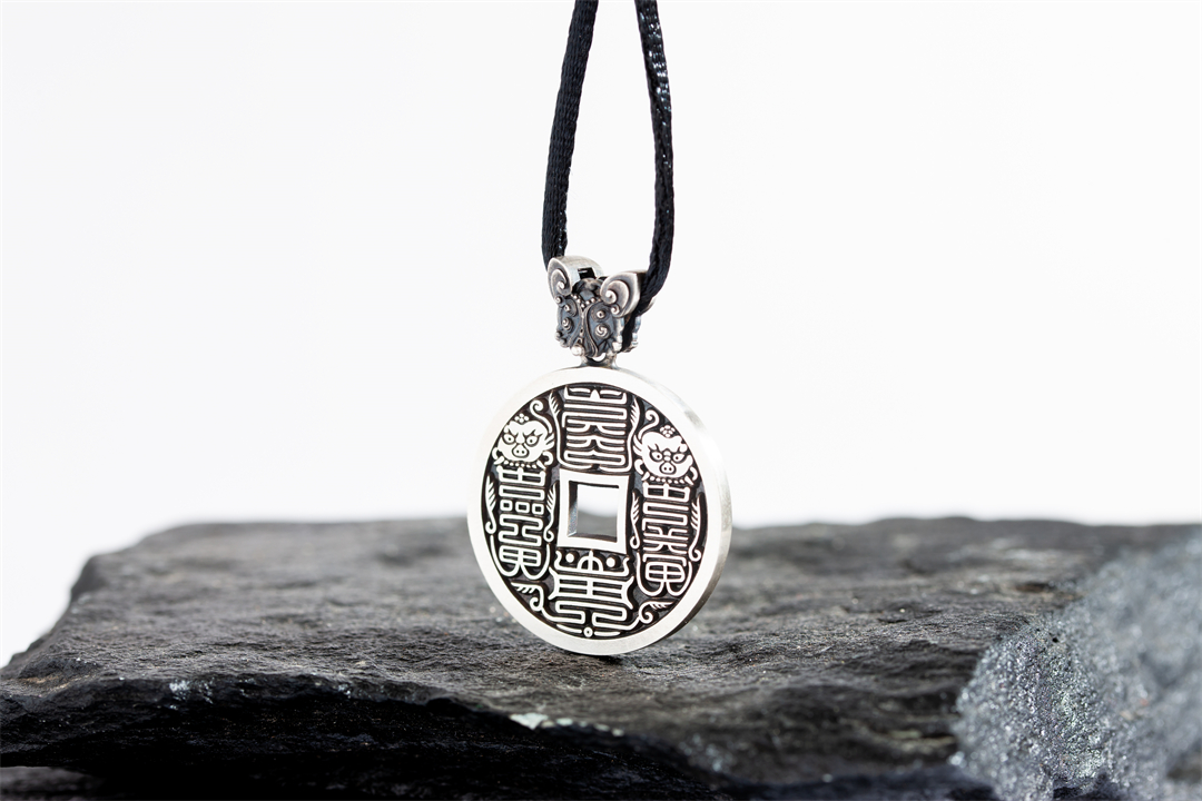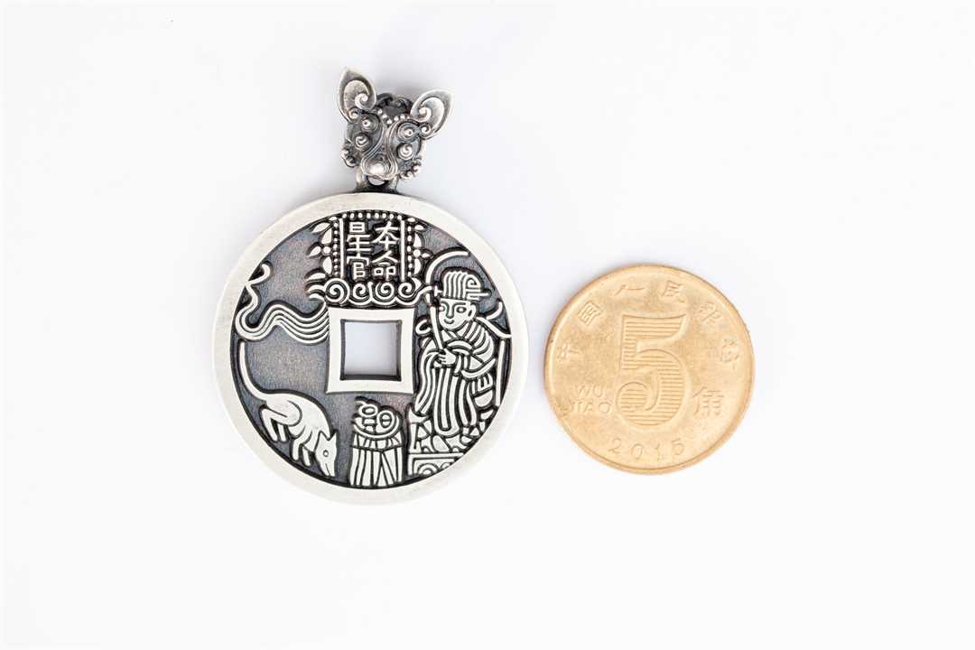 尺寸:钱币直径约30.5毫米(不含挂扣尺寸),厚约2.4毫米,钱币孔径约4.9毫米,穿绳孔约为2.5毫米,可穿过2.5毫米直径以内的软质线绳,或2.5毫米直径以内的硬质金属链条,重约16克(手工作品有少许误差)。