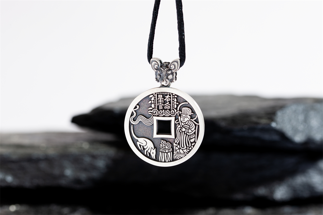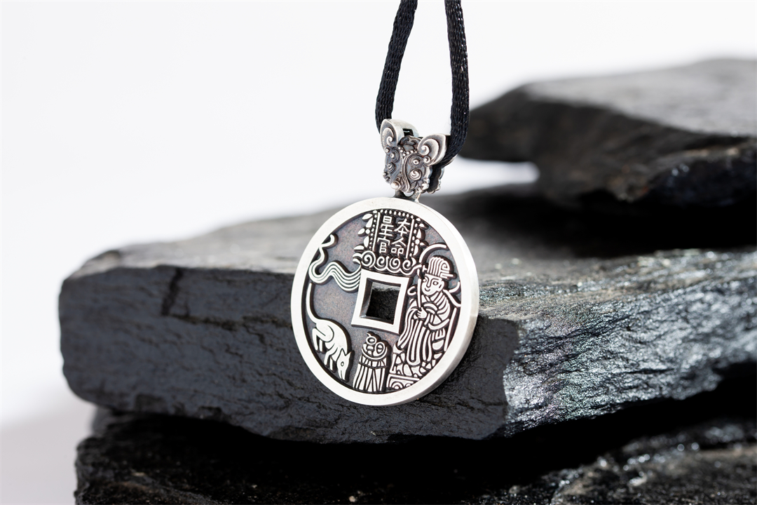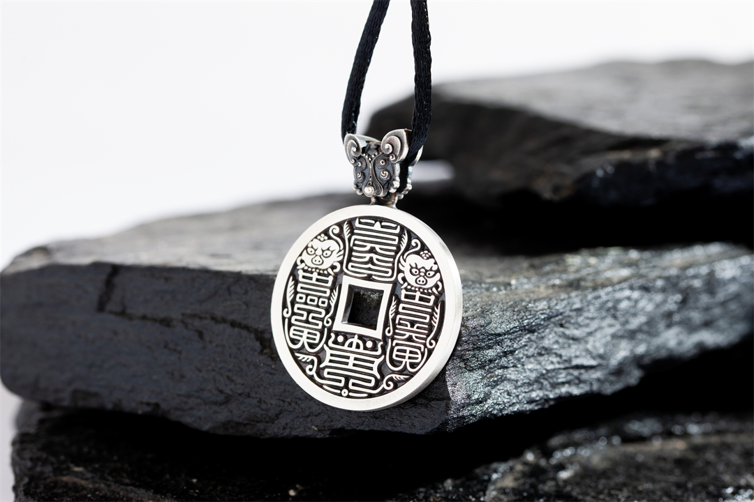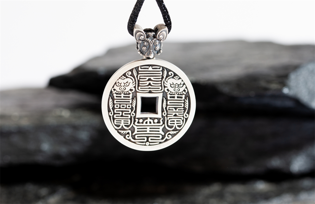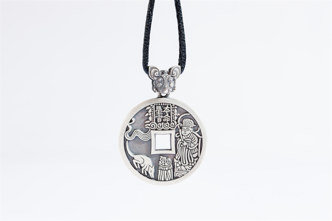 尺寸:钱币直径约30.5毫米(不含挂扣尺寸),厚约2.4毫米,钱币孔径约4.9毫米,穿绳孔约为2.5毫米,可穿过2.5毫米直径以内的软质线绳,或2.5毫米直径以内的硬质金属链条,重约16克(手工作品有少许误差)。