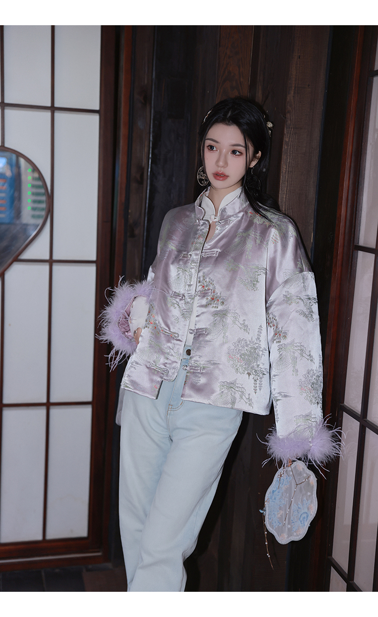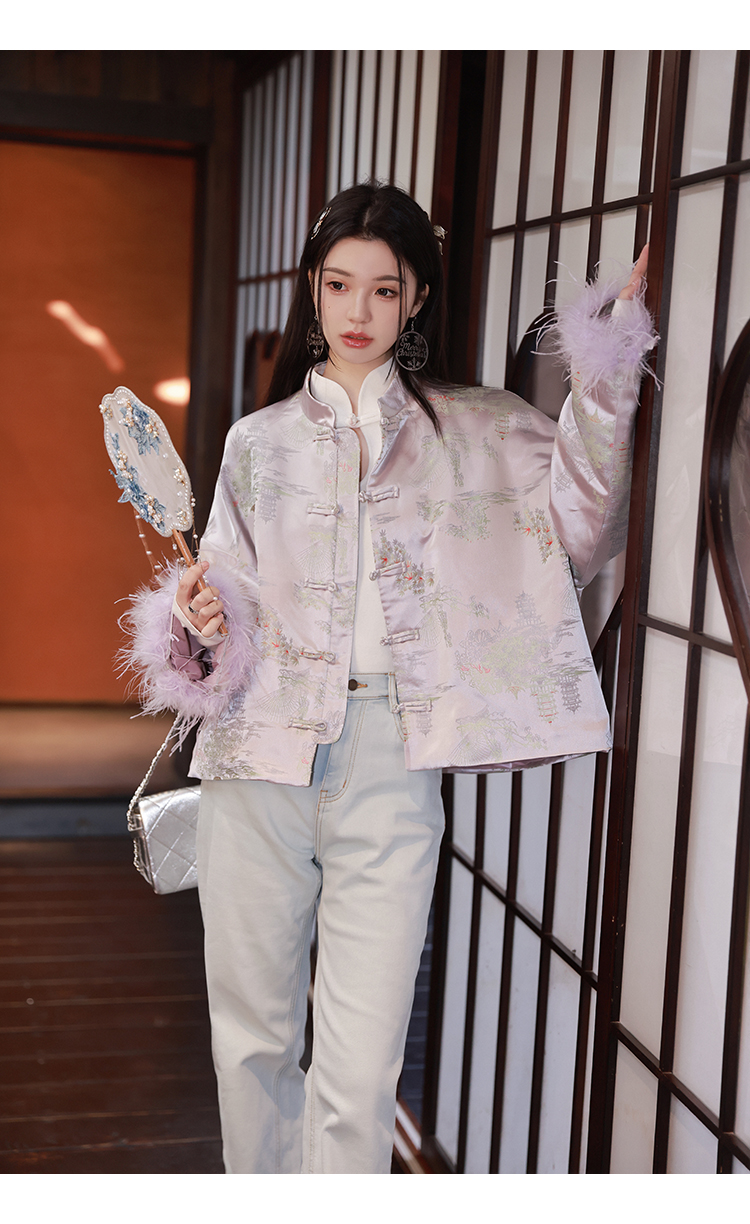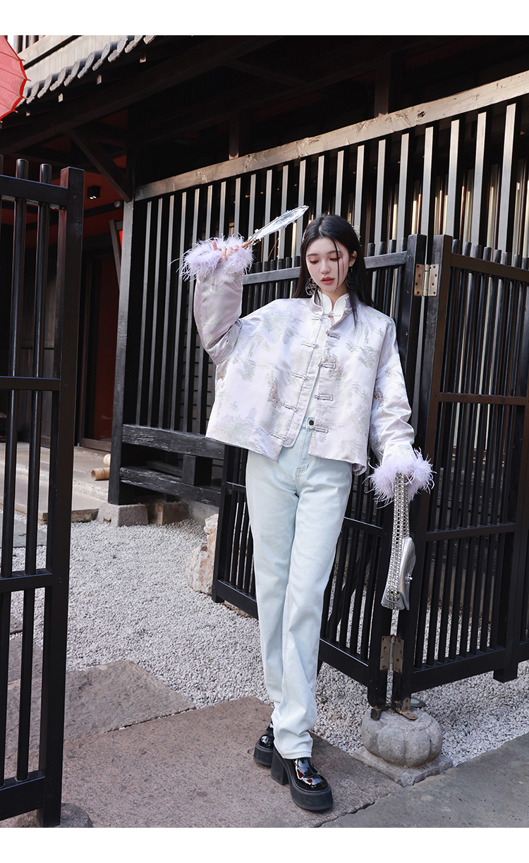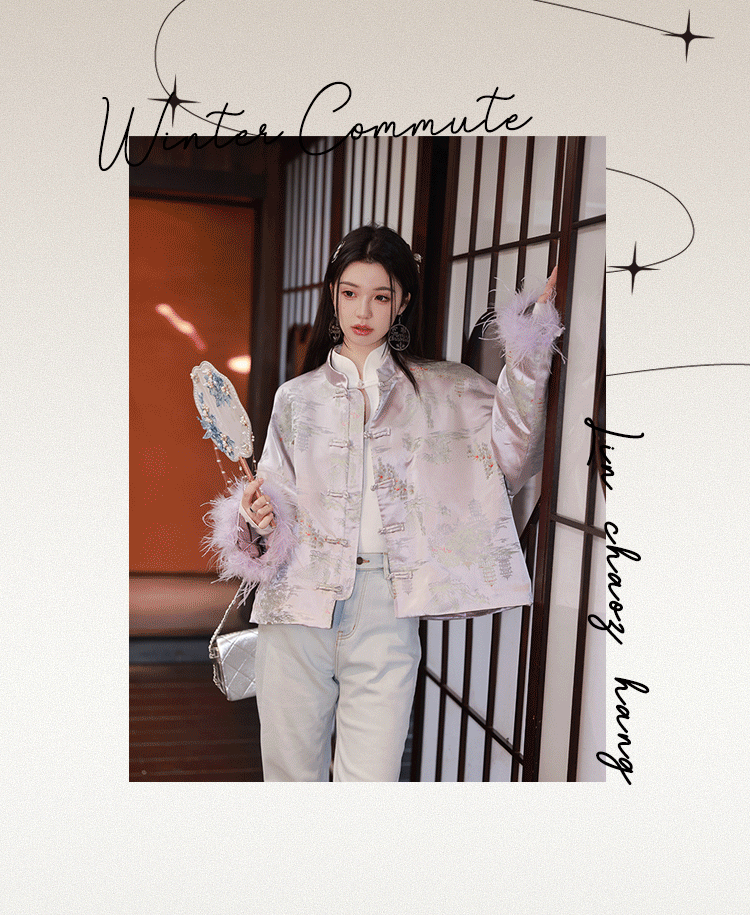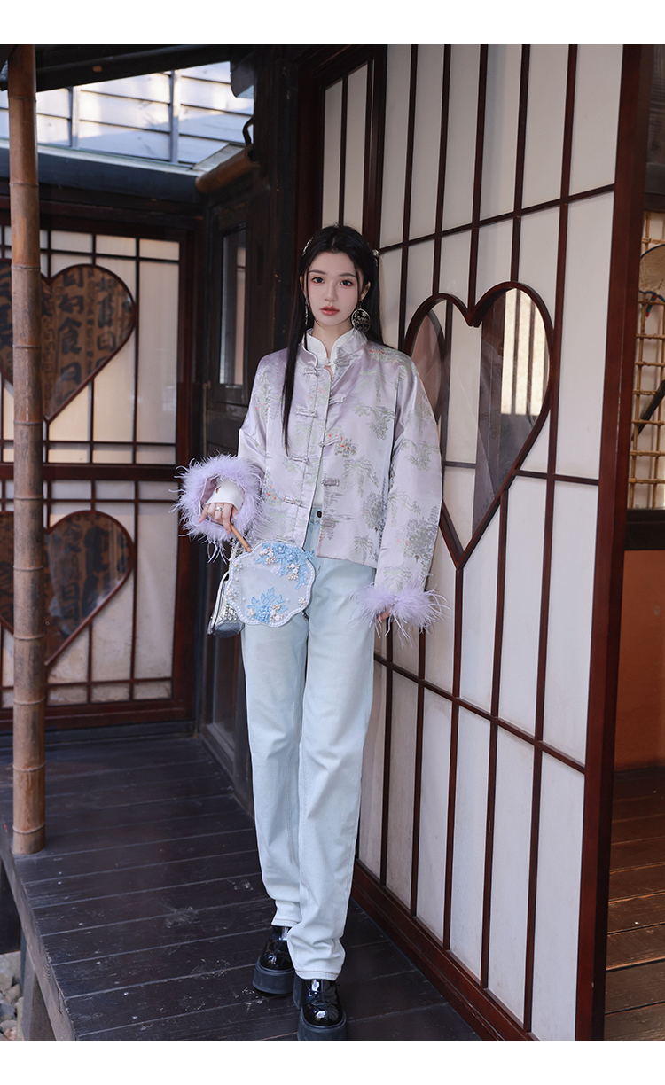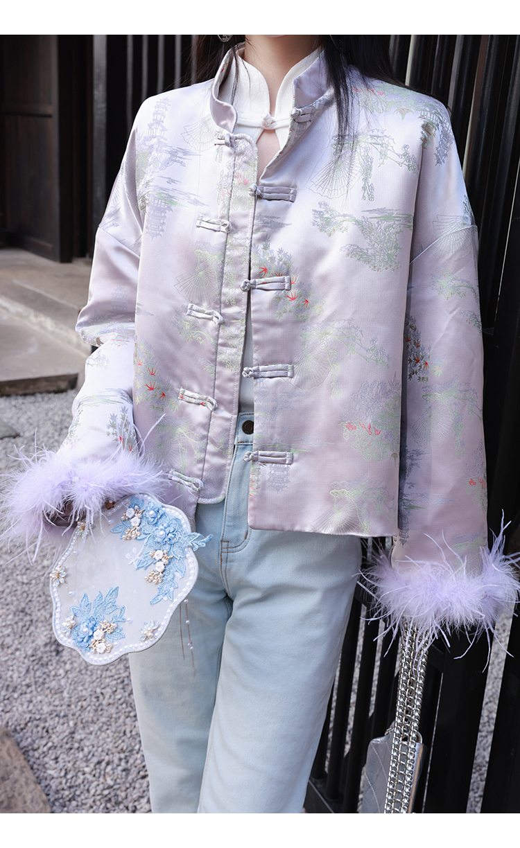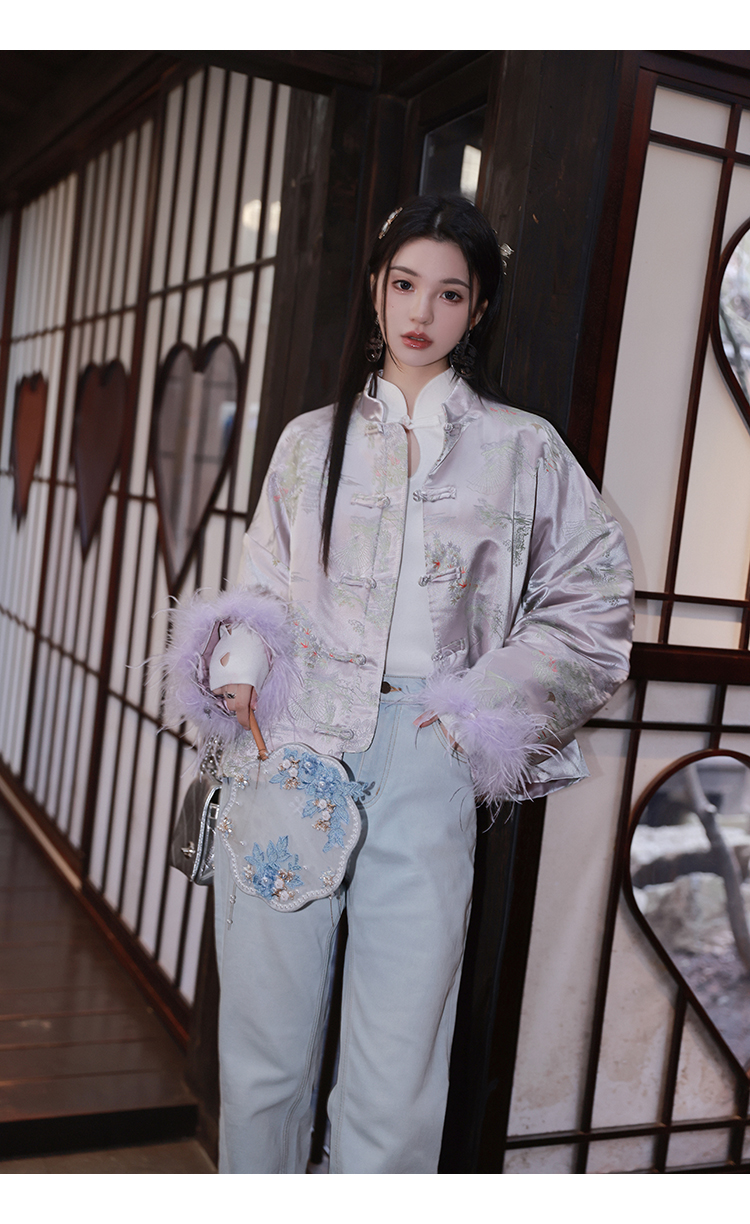 清仓捡漏【过年战袍】LIN CHAO ZHANG 【西湖十景】满版钻石缎羽绒服
