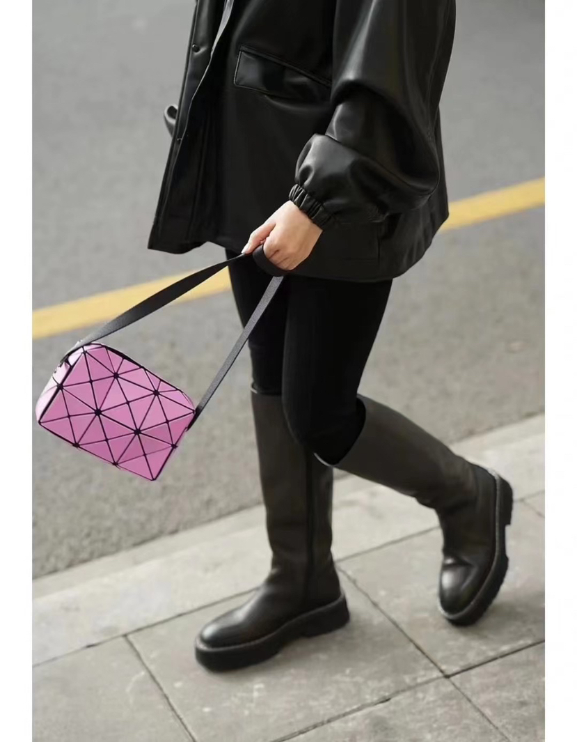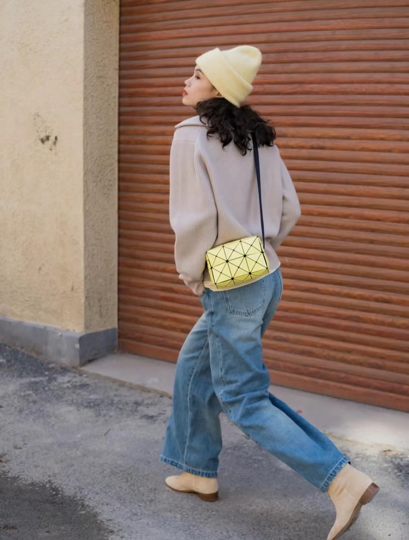 款式简洁实用轻便能装,自是不用说。今年强势用上多巴胺颜色,就是让大家看到就多巴胺上头,大家都很想要眼前一亮的艳丽颜色,来告别晦暗的去年,所以三宅的设计师很懂你。但是大面积的多巴胺颜色,很难驾驭,小方盒的尺寸,让你随便怎么穿,点睛不突兀。而且给保守人士留了经典色。