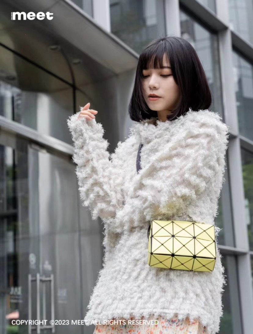作为设计强项的三宅,在23年也有不俗的表现,新款丘比特小方盒,搭配23年大热的多巴胺颜色,时髦,活力,吸睛,简洁。标志性的三角片设计成方盒的西装,在三角和方形的结构之间,又用上出挑的多巴胺颜色,小巧精致,时髦高阶,风格多变,情侣均可。