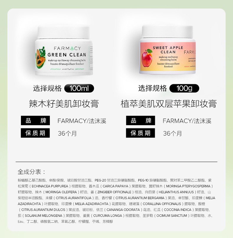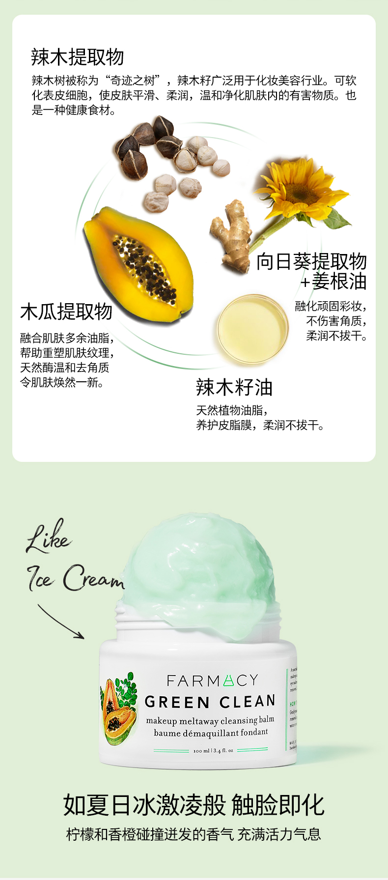 【预售 急单慎拍】farmacy卸妆膏发发溪 置若辣木籽卸妆膏 绿色 100ml
