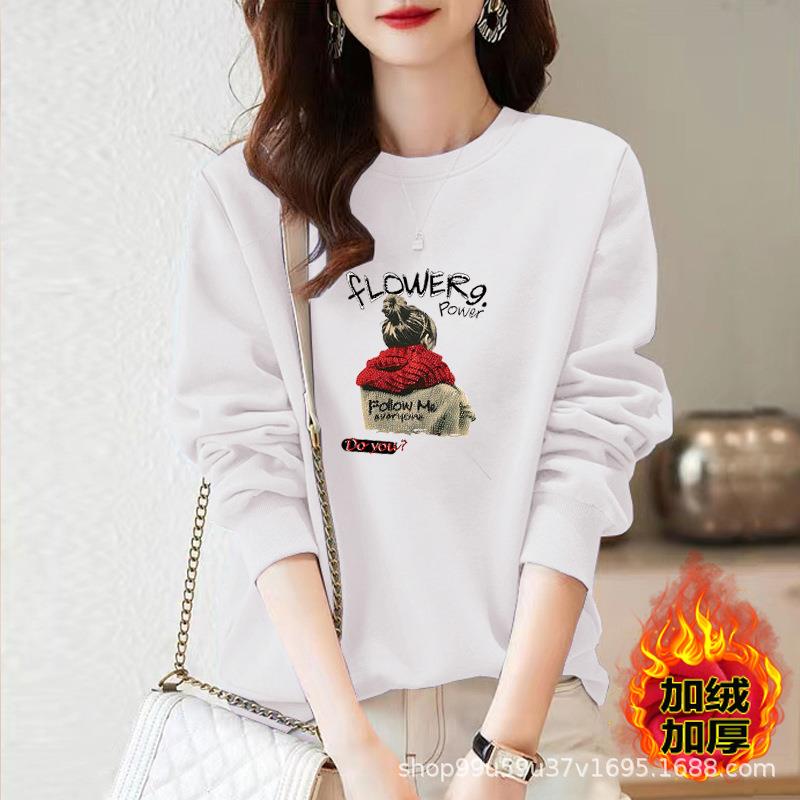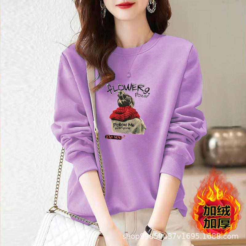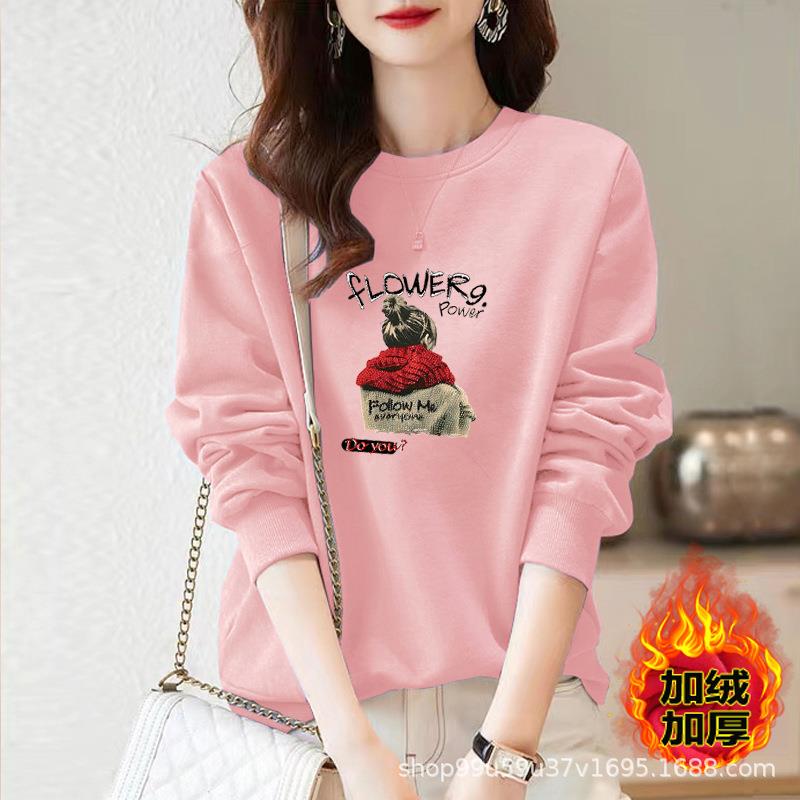棉加绒卫衣百搭圆领慵懒风时尚宽松运动女士外穿保暖套头ins