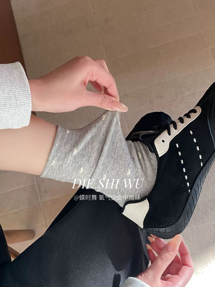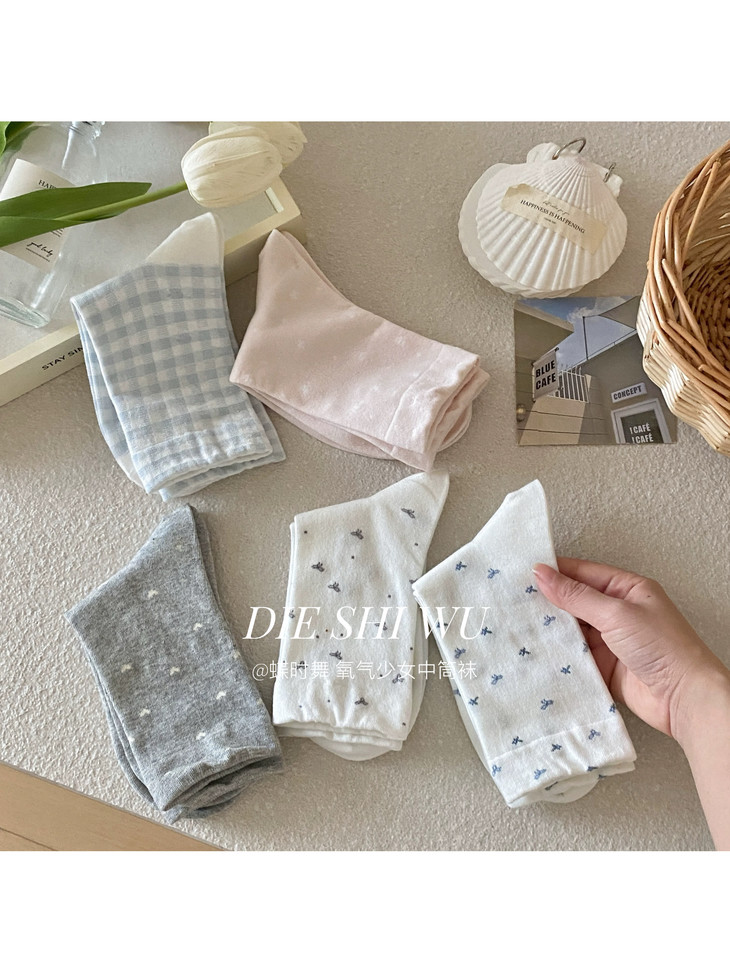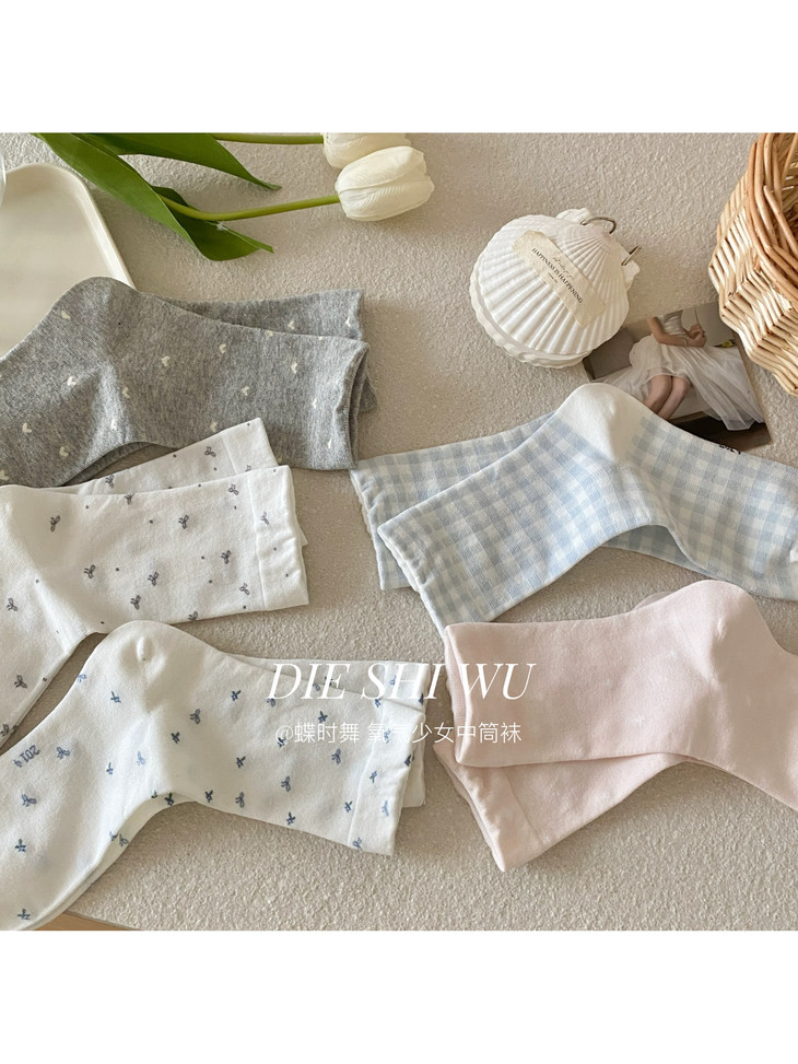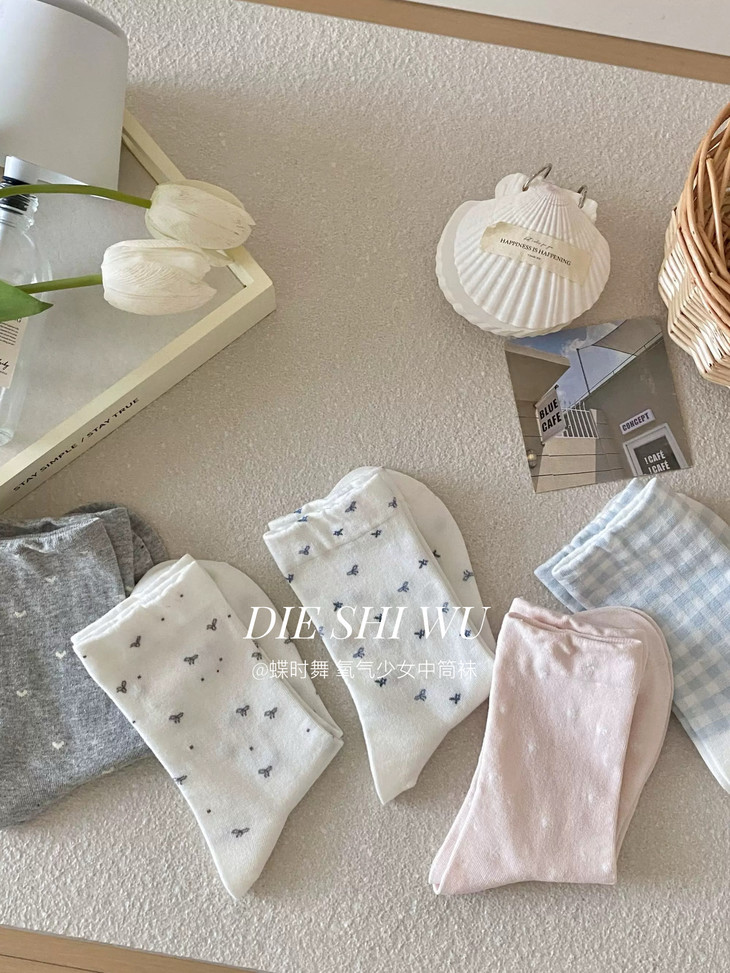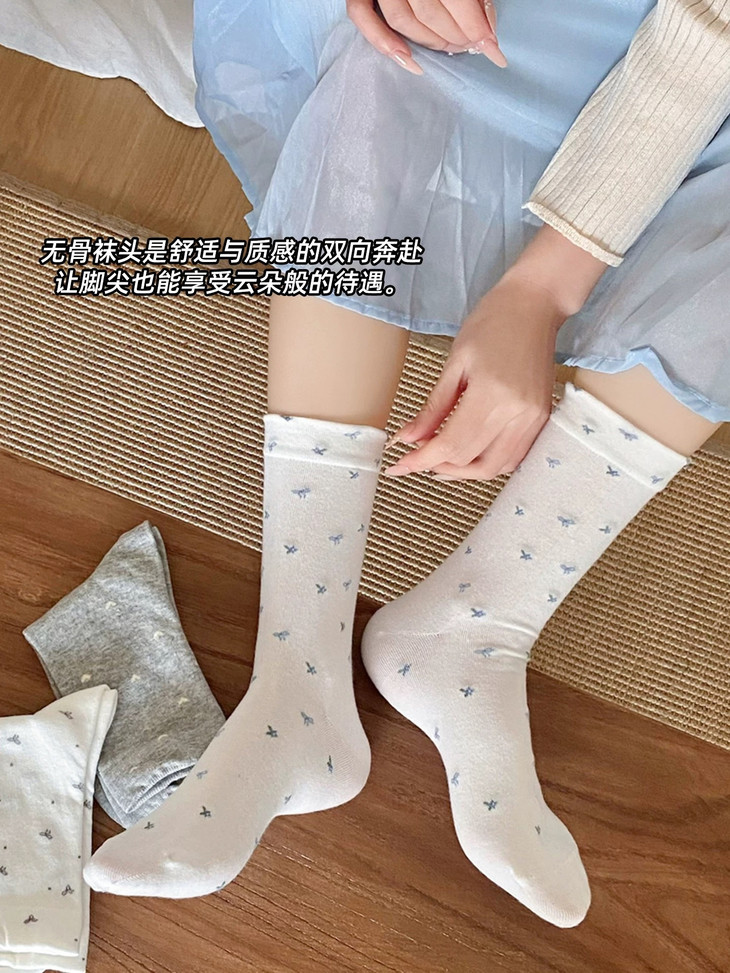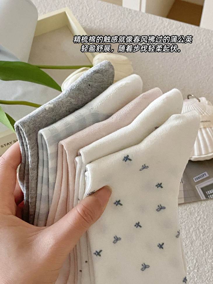 把春天穿在脚上!这组中筒袜太绝了🌿 把春天的温柔织进棉线里! 这组中筒袜每一双都像春日来信:奶白碎花像樱瓣飘落,浅灰爱心甜酷 奶粉纯色软糯,蓝白格纹像春日晴空。棉质软得像云朵,卷边设计刚好衬出脚踝纤细 搭浅蓝纱裙、白衬衫、牛仔裤都自带滤镜,把春天穿在脚上,温柔到骨子里!