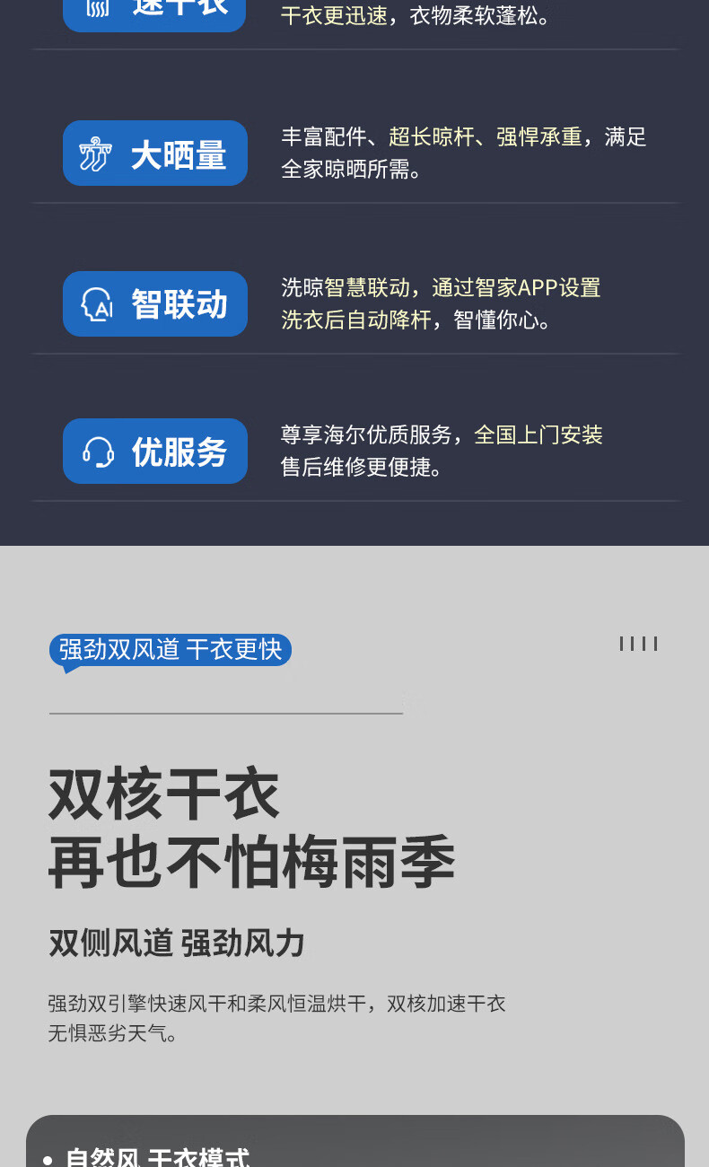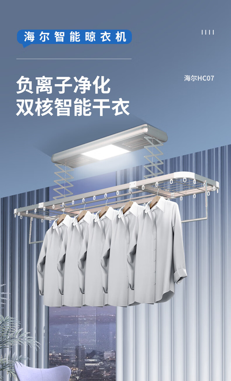 海尔电动晾衣架阳台自动升降隐藏嵌入式晾衣机 风干烘干晾衣机 HC07