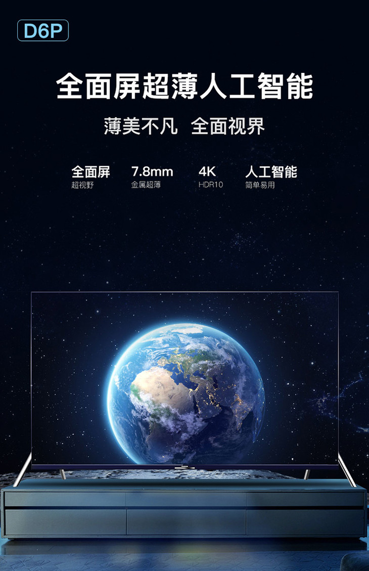 长虹 50D6P 50英寸电视 人工智能超薄版 7.8mm超薄 全面屏 4K超高清液晶智能网络平板电视(星空蓝)