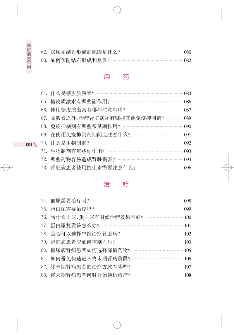 “肾脏病一体化管理科普丛书”由海军军医大学第二附属医院(上海长征医院)肾脏病内科医护人员组织编写,旨在为肾脏病患者提供相关科普知识,本书为其中一个分册。 全书通过100个精选的肾脏病关键问题,介绍了肾脏病的基础知识、检查、分类、治疗,以及肾脏病患者的营养管理、运动管理、 用药管理和生活管理。 本书叙述科学严谨,语言通俗易懂,图文并茂,趣味性和可读性强,可供肾脏病患者及其家属阅读并参考。