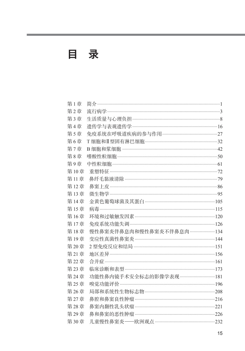 全书共54章,50余万字,近百幅精美图片。全书系统介绍了关于慢性鼻窦炎在发病机制、临床表现、诊断和治疗方面取得的新进展,包括流行病学、微生物学、免疫学和遗传学等方面的基础研究;在分类和诊断中引入了慢性鼻窦炎(CRS)的表型和内型;在医疗、内镜手术和生物治疗引入了基于循证医学和精确医学的新策略;专门讨论了过敏、哮喘、过敏性真菌性鼻窦炎和全身性疾病对鼻窦炎的作用。本书对于耳鼻喉科医生、儿科医生、全科医生、变态反应专科医生等专业人员和医学生而言都是一本经典的速查指南。