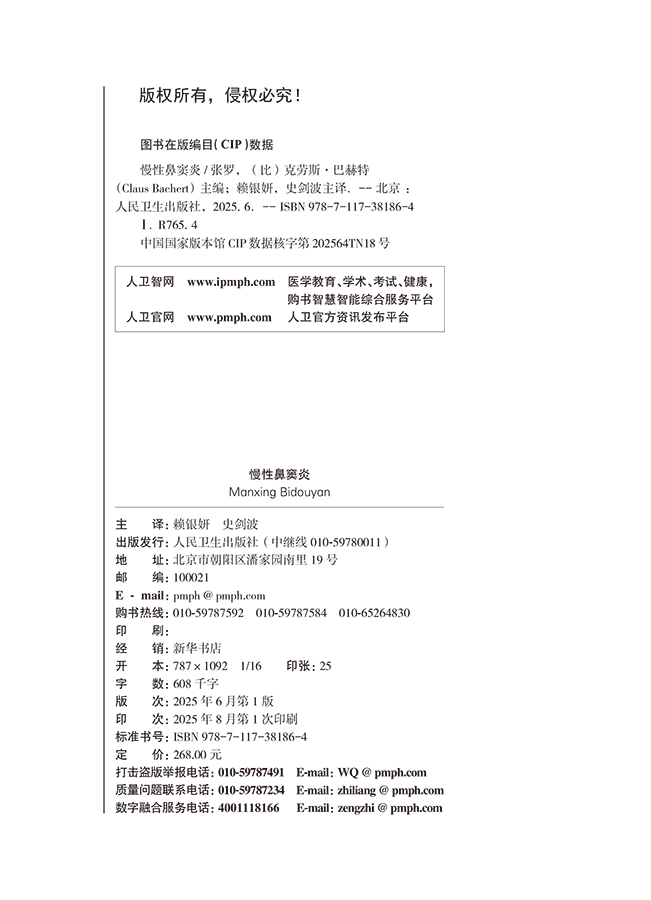 慢性鼻窦炎 赖银妍 史剑波 主译 系统介绍了关于慢性鼻窦炎在发病机制 临床表现 诊断和治疗方面取得的新进展等 人民卫生出版社