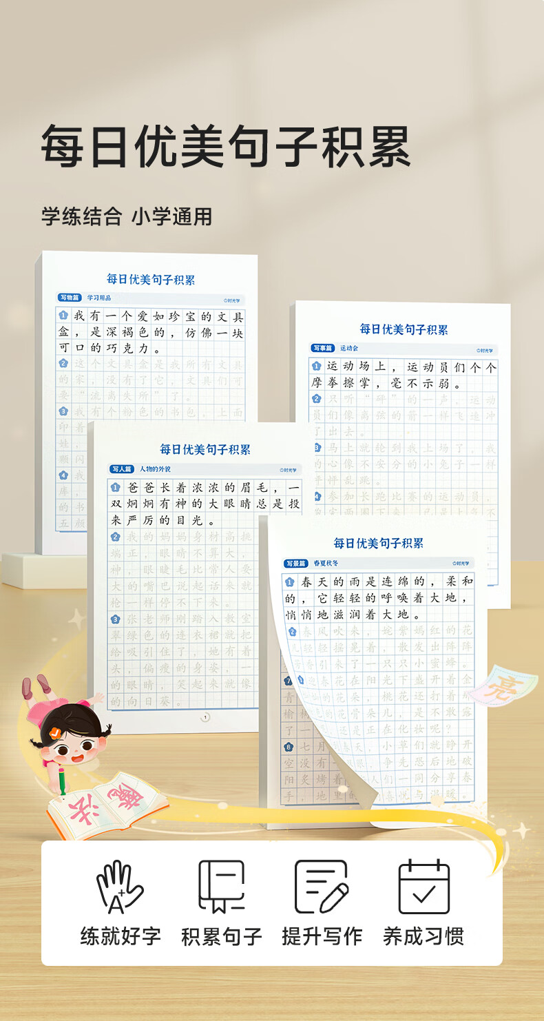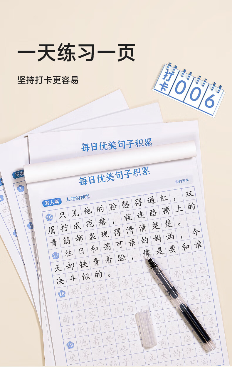 时光学每日优美句子积累大全语文小学生每日一练人教版的句式强化训练一二三四五六年级通用作文书好词好句好段