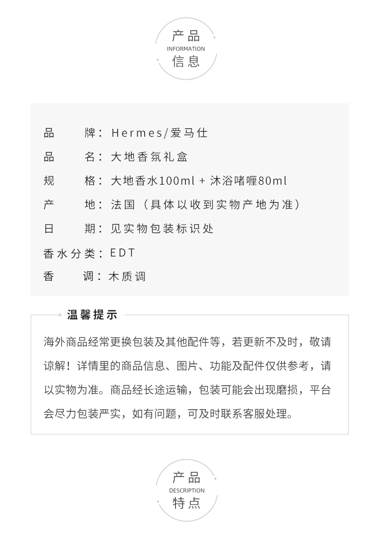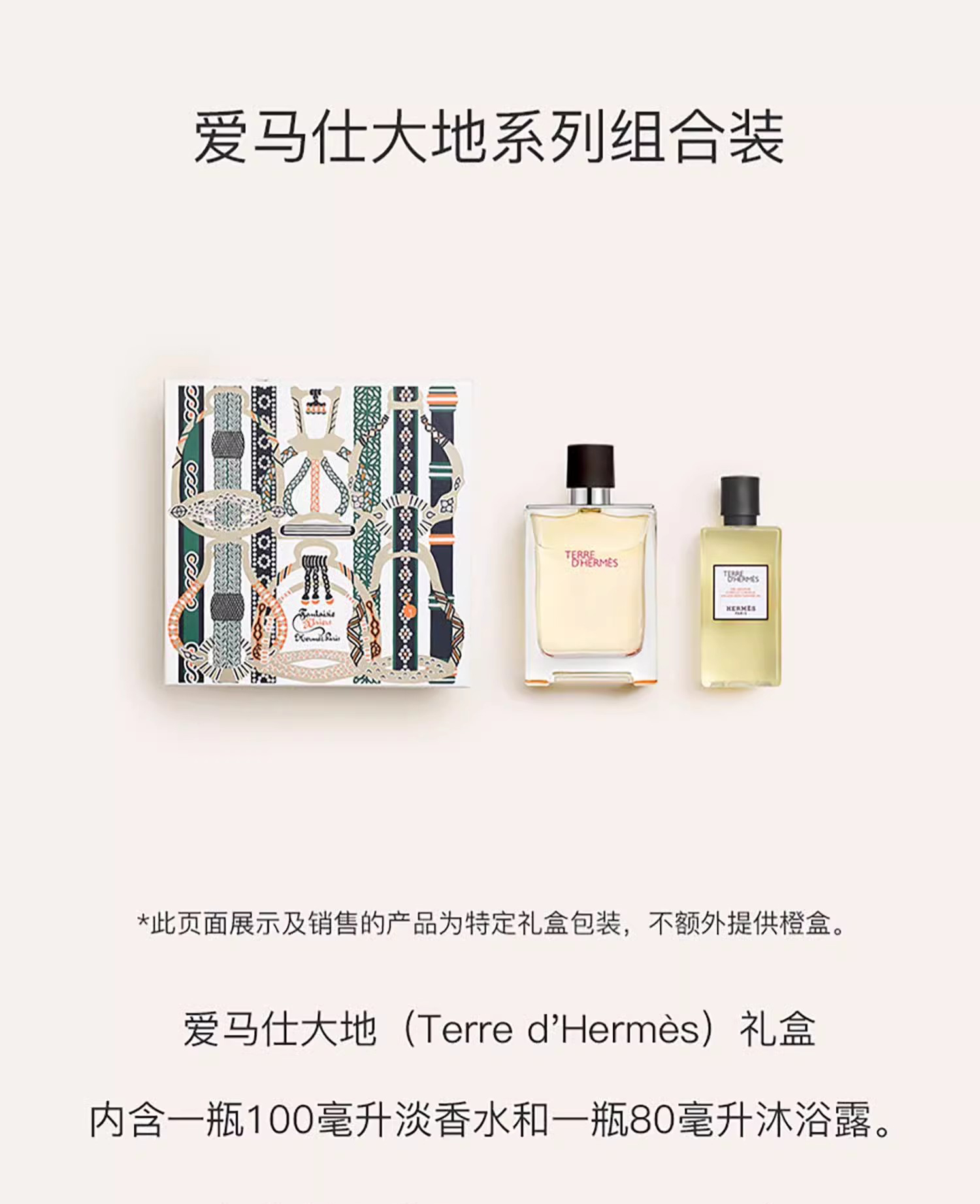 爱马仕大地香水礼盒 淡香100ml+沐浴露80ml 情人节礼物/七夕礼物/新年礼物 送香水礼品袋