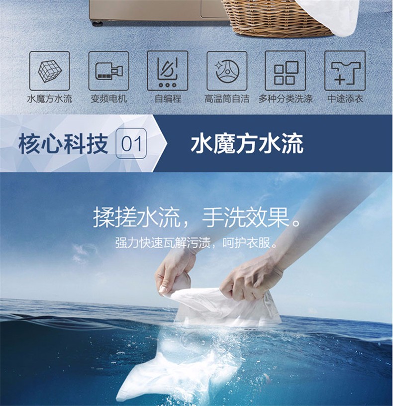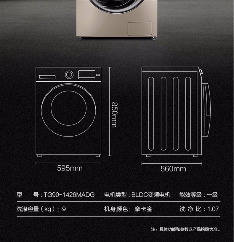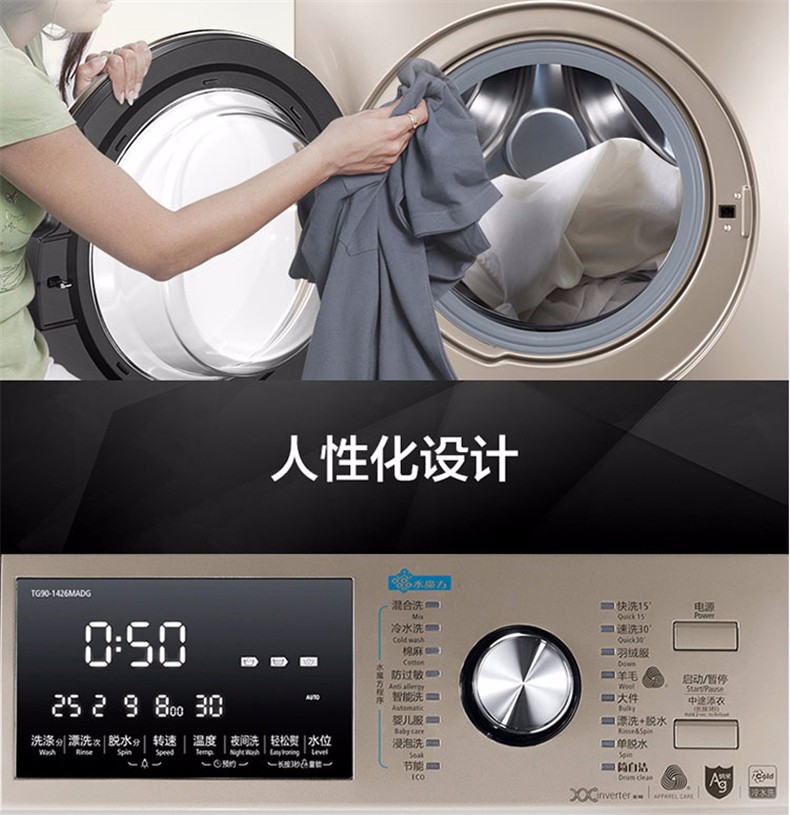 小天鹅(LittleSwan)(251619)9公斤/KG水魔方全自动变频滚筒洗衣机TG90-1426MADG