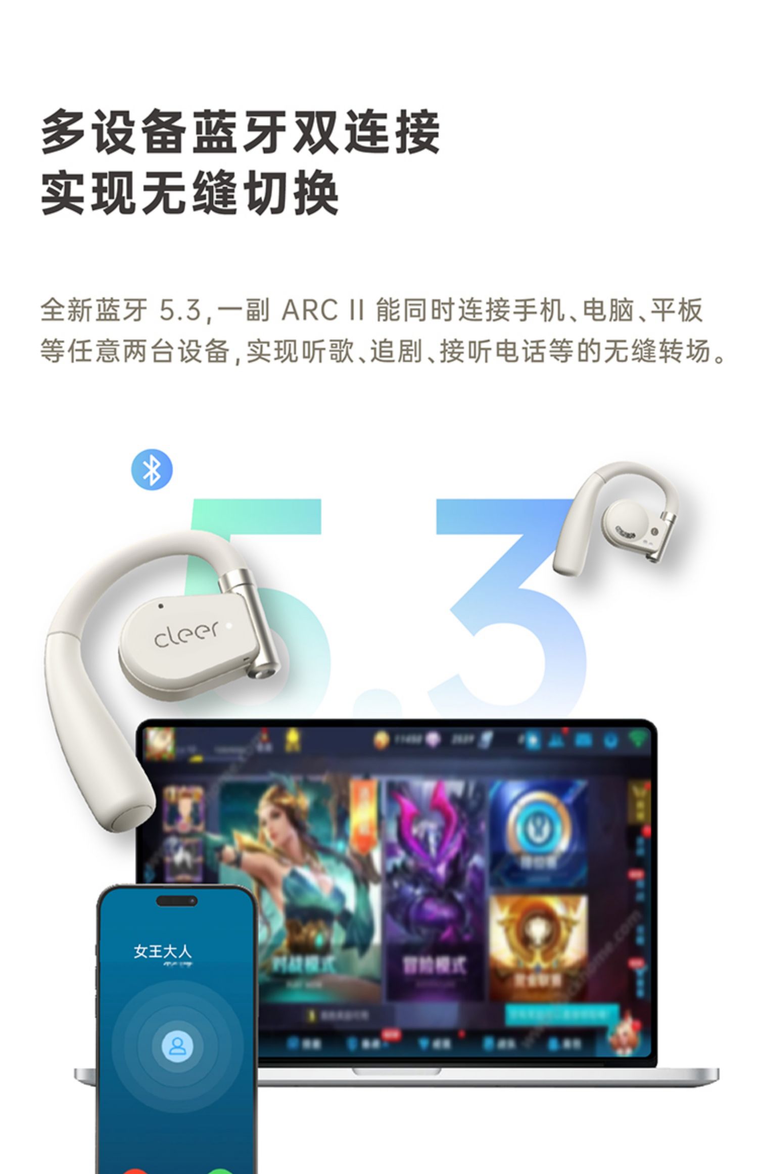 Cleer ARC II开放不入耳智能运动蓝牙耳机