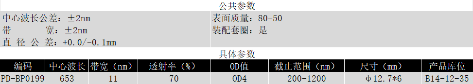 BP653/11K OD4@200-1200 T>70% Φ12.7*6 带通滤光片 (带套圈)
