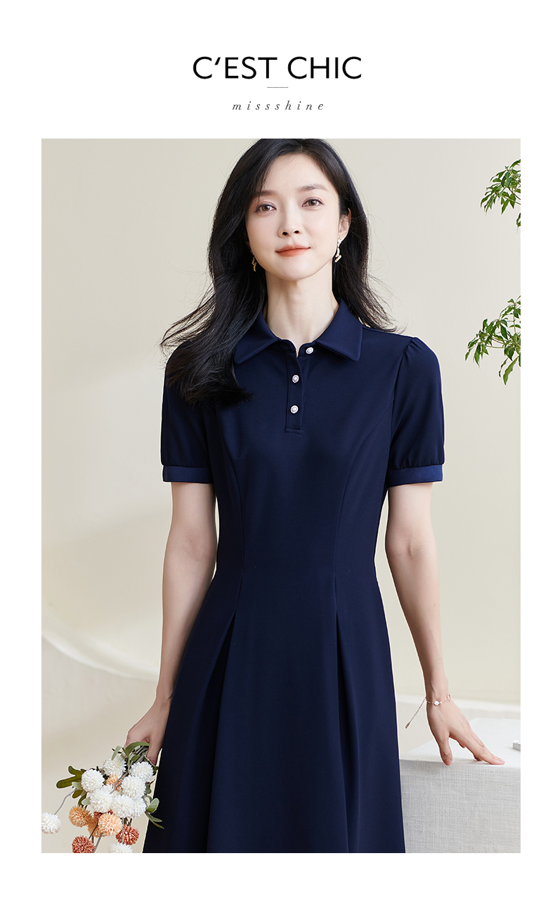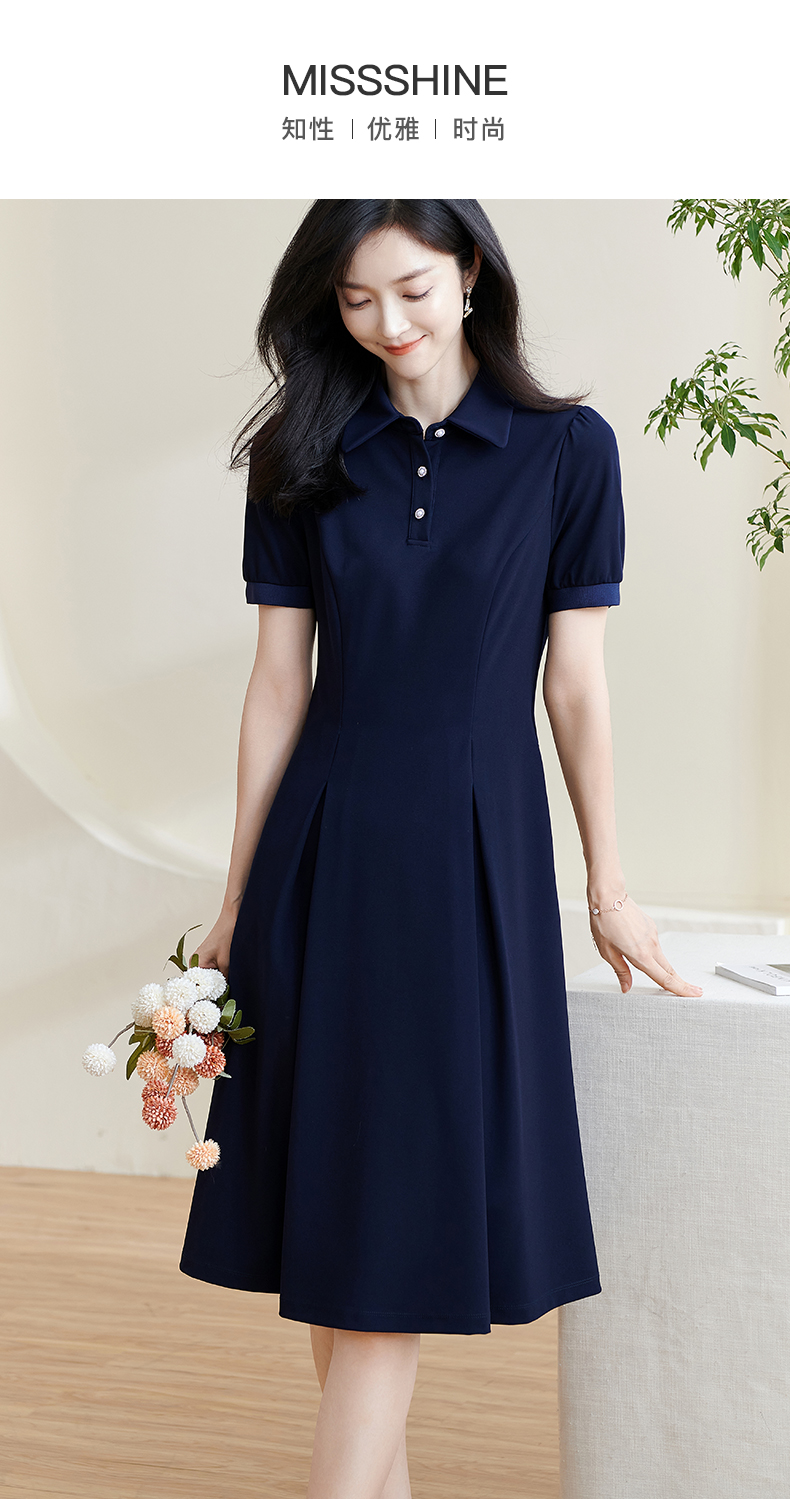 【2XL预售7天】米思阳2026夏季新款时尚通勤Polo连衣裙修身显瘦大摆中长裙子0969/1202