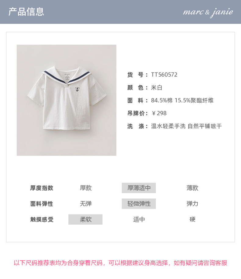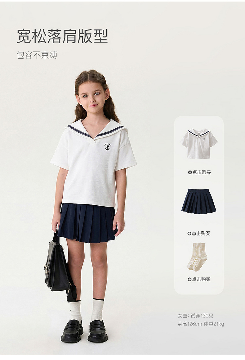 马克珍妮元气海军风女童凉感透气T2026年夏装新款560572