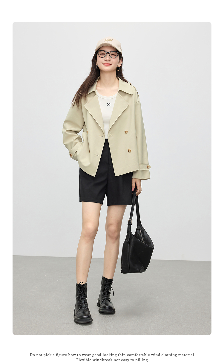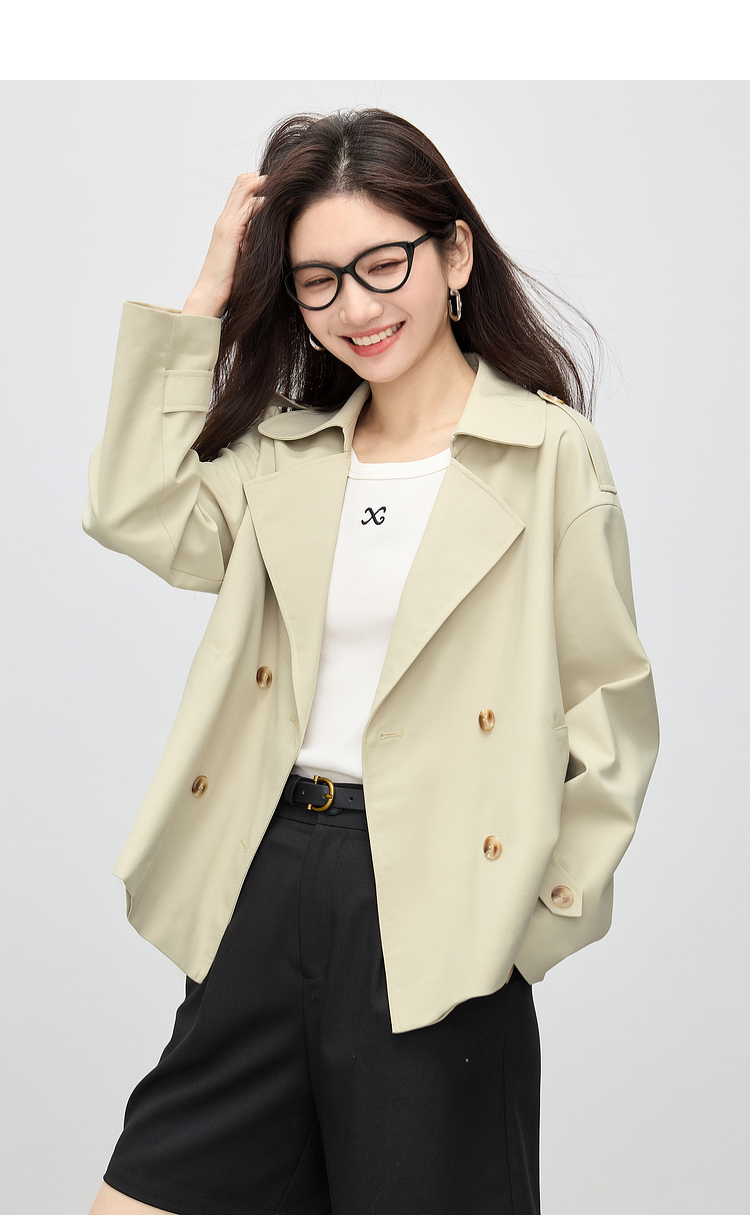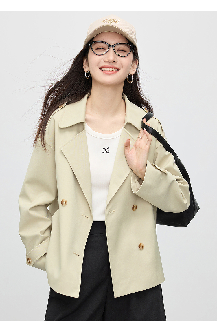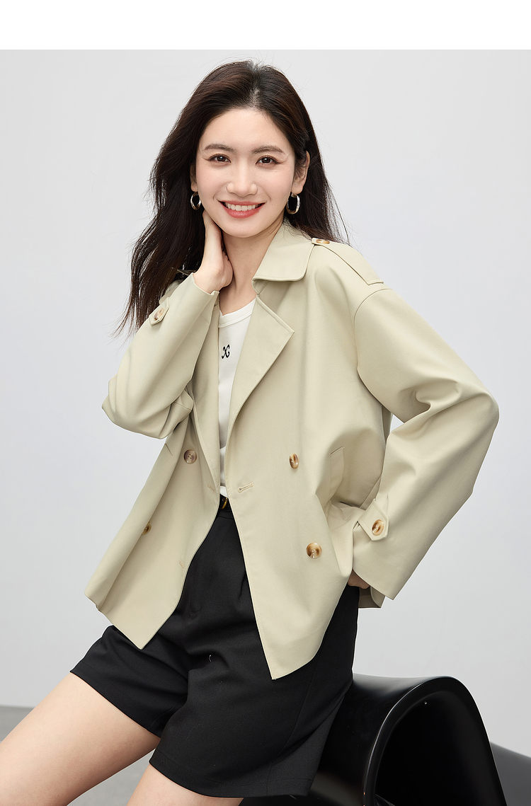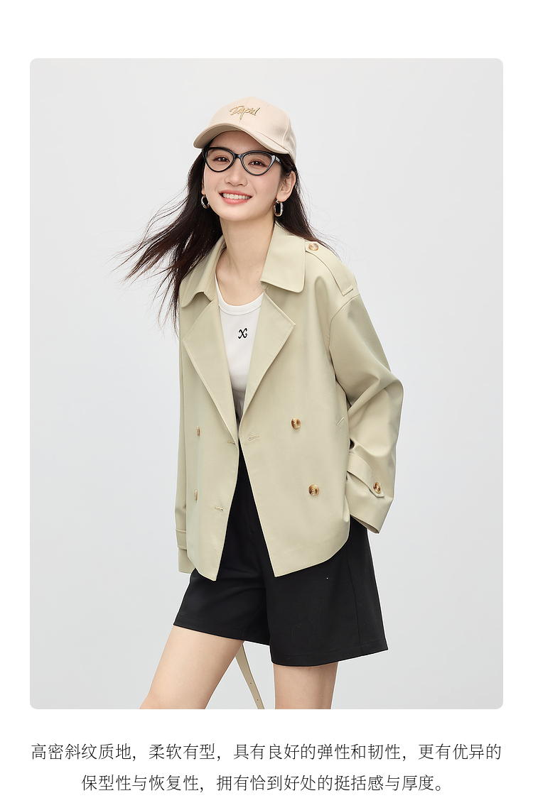 【专属特价】熙世界卡其色双排扣风衣女短款小个子2025年春秋新款超好看短外套