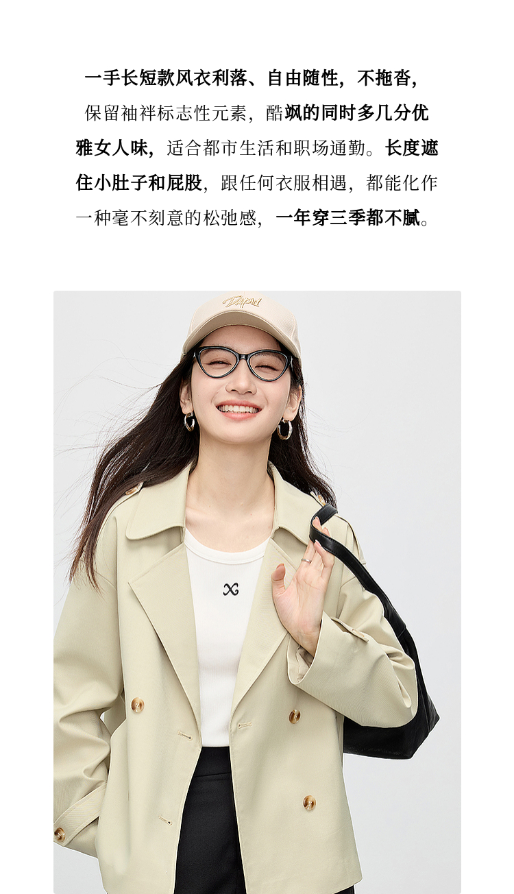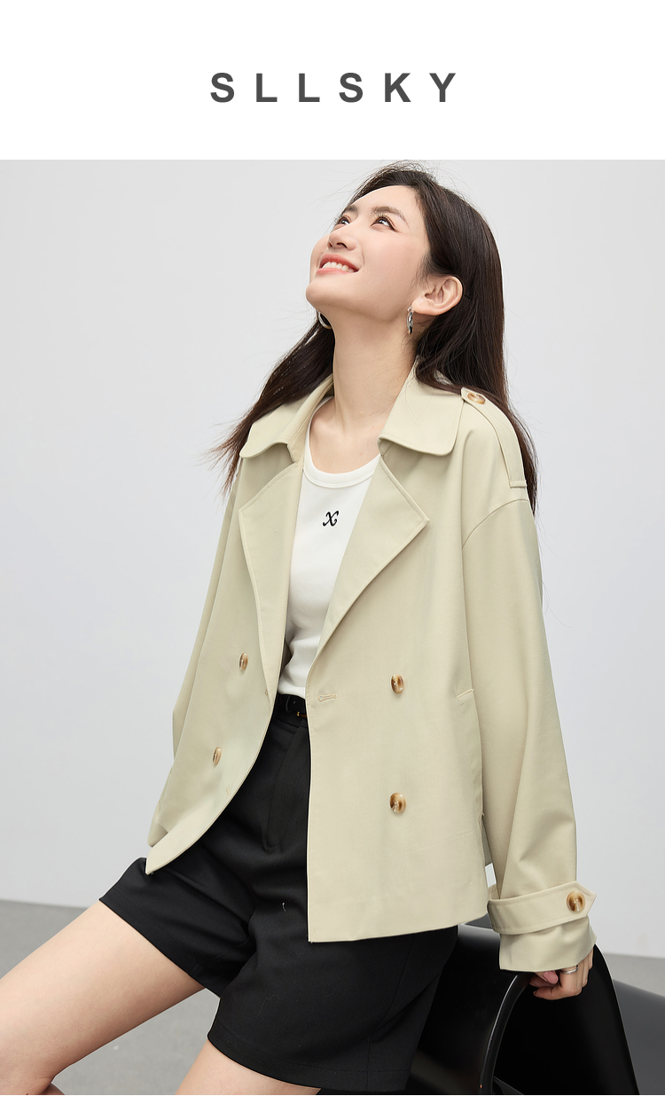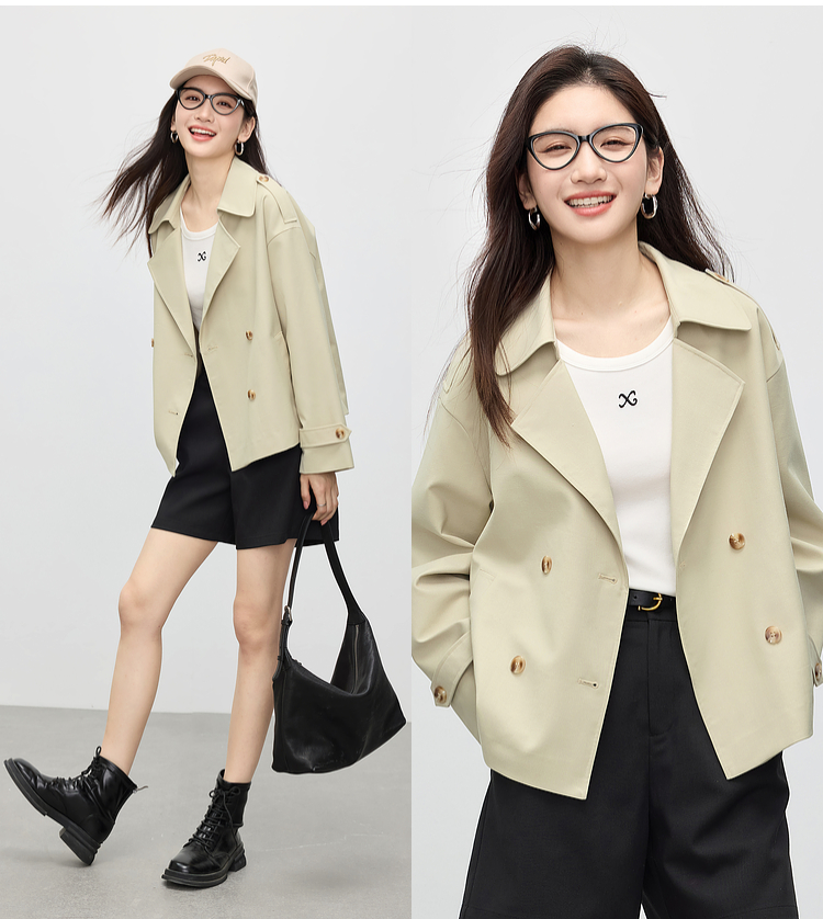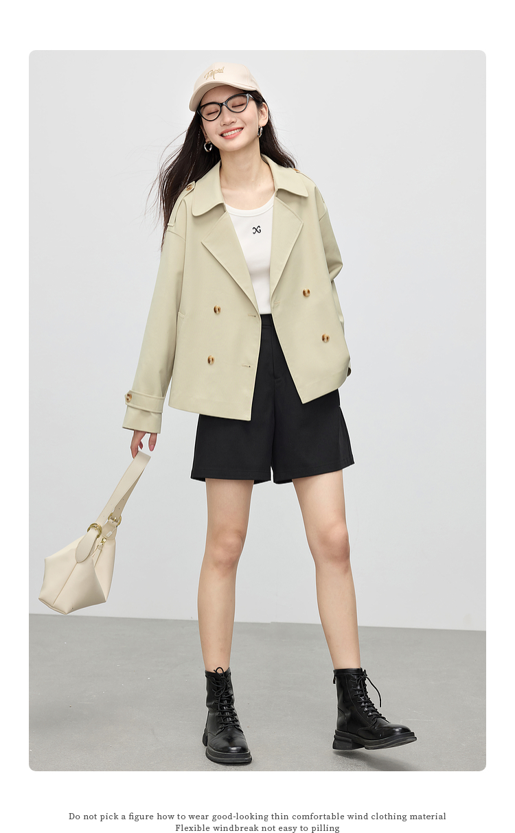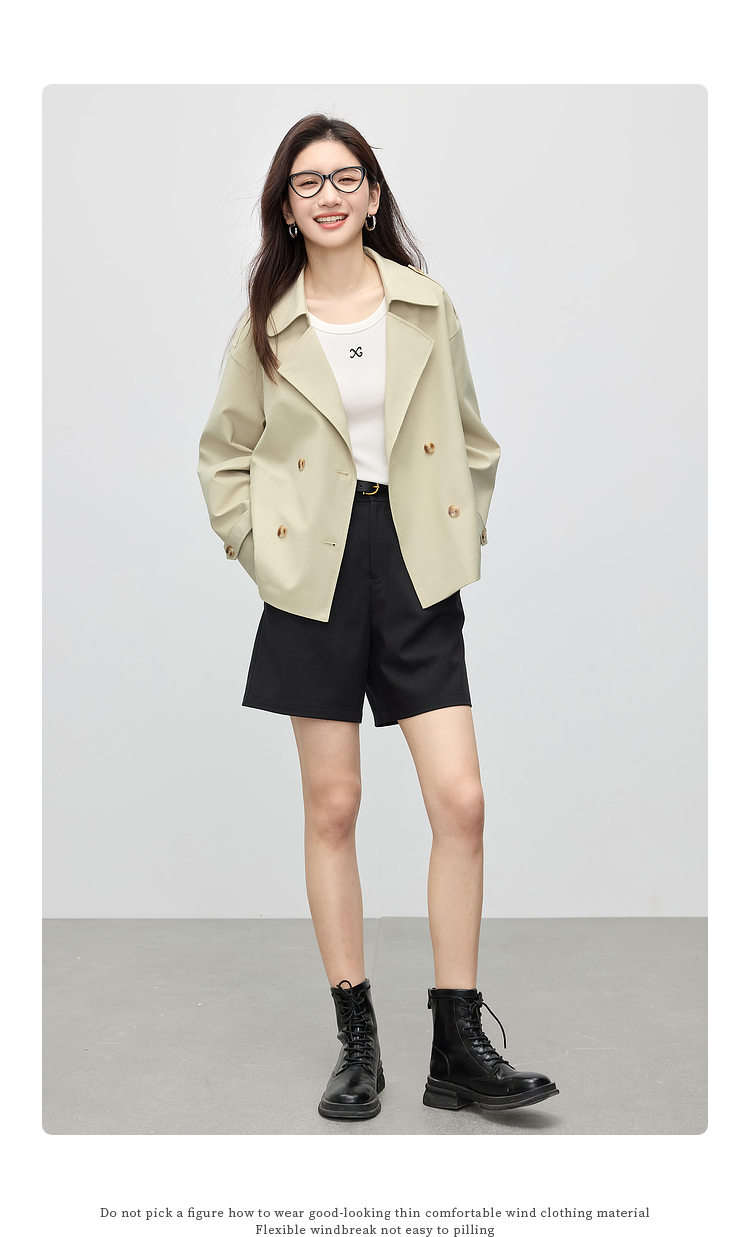 【专属特价】熙世界卡其色双排扣风衣女短款小个子2025年春秋新款超好看短外套
